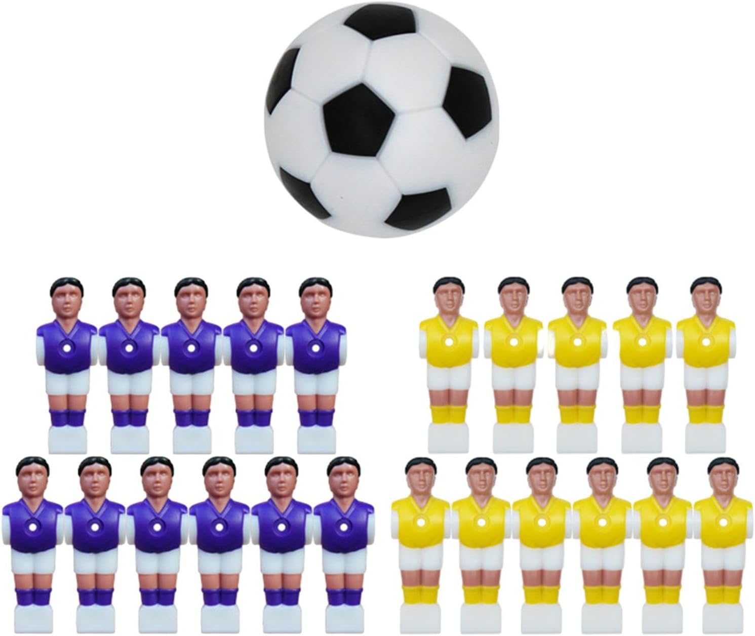 Set completo di ricambio: include 22 calciatori in resina (11 blu, 11 giallo) e 1 pallone da calcio per un gioco immediato o per esigenze di sostituzione Struttura in resina: realizzata in resina robusta che resiste a un gameplay intenso e fornisce prestazioni di lunga durata su qualsiasi tavolo da biliardino Design pronto per il torneo: presenta dettagli vividi e lavorazione precisa adatta per giochi competitivi e intrattenimento casual nella sala giochi Compatibilità standard: progettato per adattarsi a tavoli da biliardino con diametro del foro standard di 1,58 cm, garantendo una facile installazione e prestazioni affidabili Pacchetto completo: include giocatori della squadra blu e giallo più pallone da calcio in una comoda confezione pronta per l'uso immediato o la sostituzione