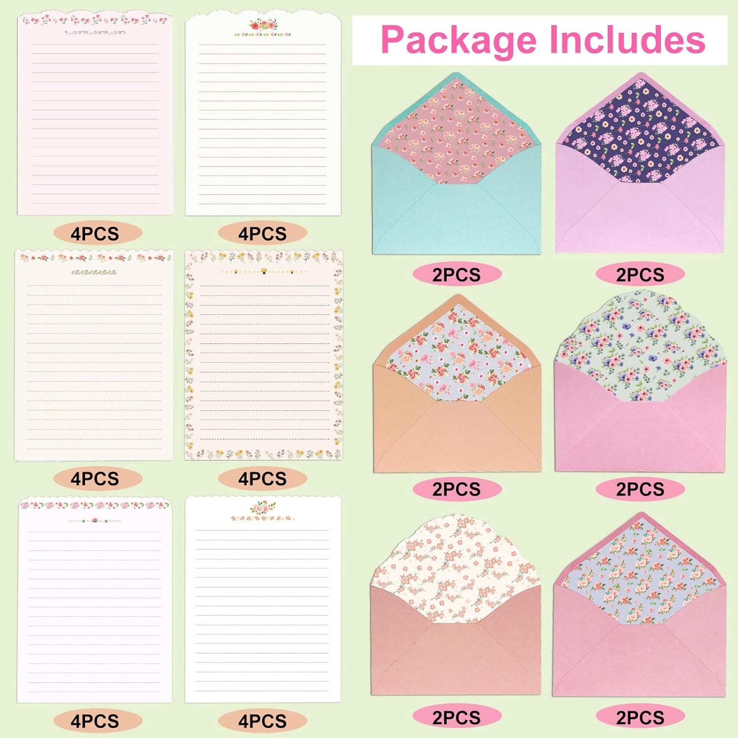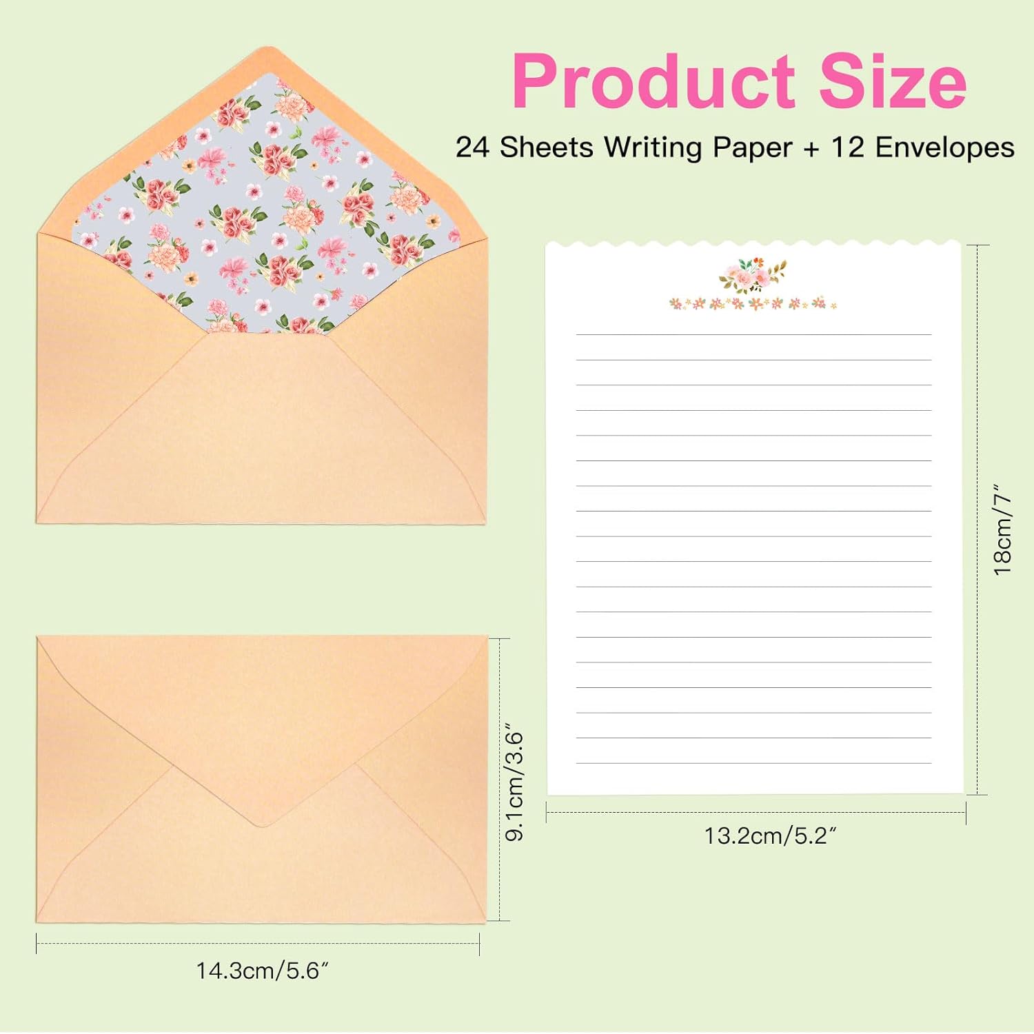 Ksiwre Set Di 24 Buste Di Carta E Buste Di Cancelleria, Con 12 Buste, Calda Busta A Tema Floreale E Design Di Cancelleria Per Inviti, Decorazioni Regalo, Forniture Per Feste Tipo Di Prodotto: Carta Da Scrittura Tipo Gl: Prodotto Per Ufficio