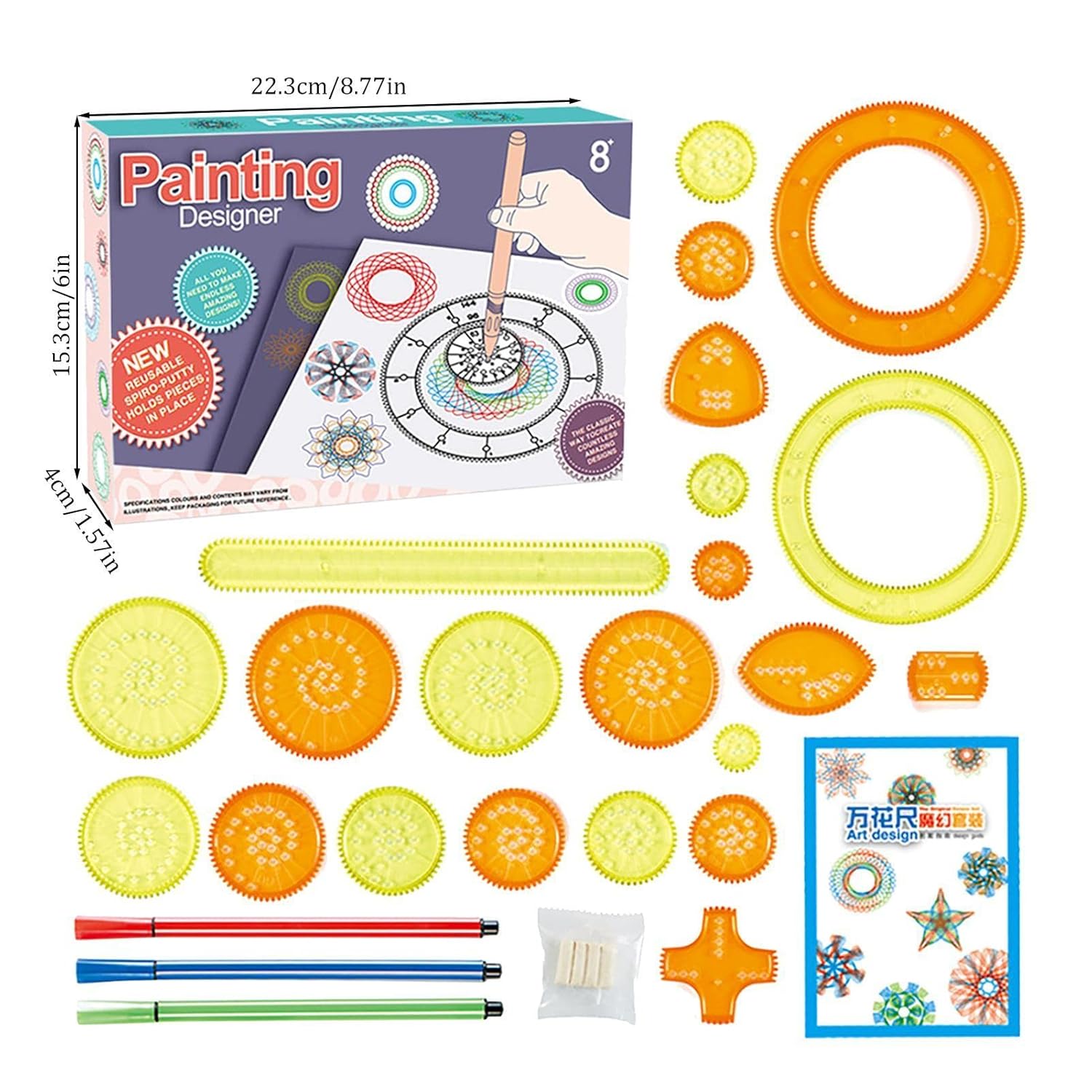 Disegna bellissimi fiori: il righello geometrico può disegnare una varietà di modelli cambiando il posizionamento e l'organizzazione della matematica in una bella arte Migliora i sensi dei bambini: il righello per disegno artistico migliora la sensazione di un utente coinvolgente e promuove la coordinazione occhio-mano Comodo per te: la nostra esca a spirale può aiutare i bambini a esplorare la loro creatività. Offre un ottimo modo per sviluppare un giovane talento. È un nemico utile per te Facile da usare: utilizza la viscosa per fissare la tua attrezzatura, fissare la tua attrezzatura e infine inserire la punta nel foro rotondo e iniziare a disegnare un motivo delicato, rendendolo facile da usare Perfetto come regalo per le vacanze: gli strumenti da disegno a spirale sono una cancelleria emozionante e divertente per lo studio, possono essere utilizzati anche come regalo per le vacanze per i bambini