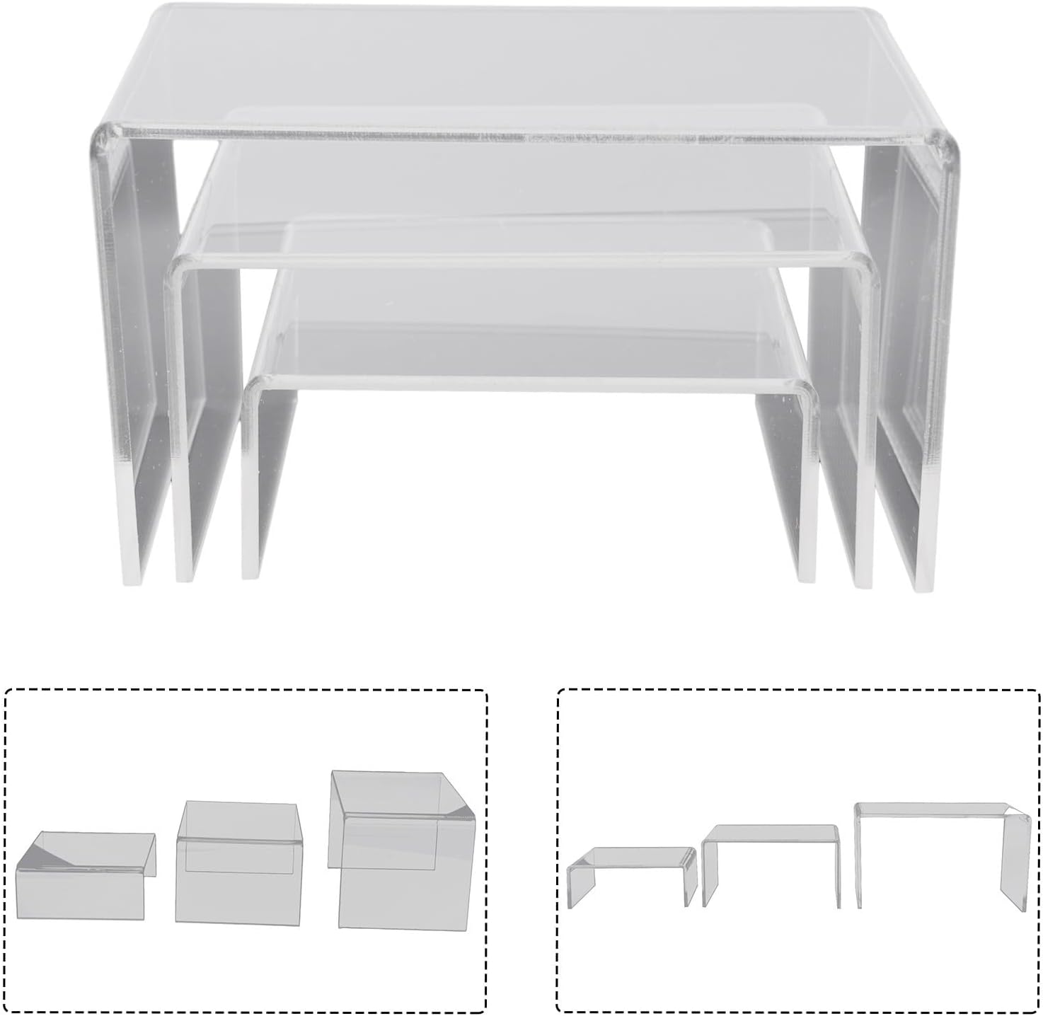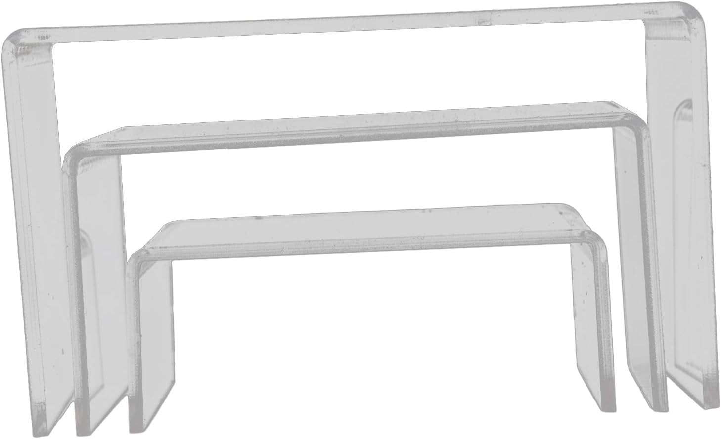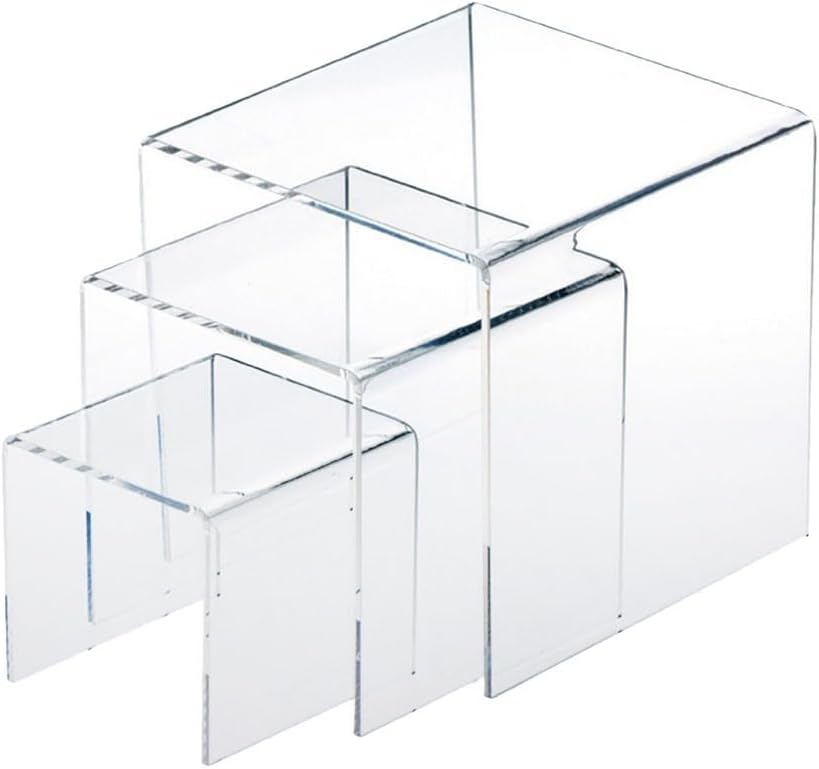 Espositori in acrilico trasparente: questo set include tre espositori realizzati in acrilico ecologico da 3 mm. Perfetto per esporre libri, gioielli, figure e prodotti per il trucco Uso versatile: non solo adatto per negozi per esporre merci, ma anche ottimo per organizzare gioielli o prodotti per il trucco. Può essere utilizzato anche per esporre oggetti da collezione, miniature, modelli, bambole, premi e trofei Integrazione senza soluzione di continuità: i rialzi trasparenti si fondono perfettamente in qualsiasi arredamento domestico o aziendale, fornendo un'area di visualizzazione pulita ed elegante Dimensioni precise: il set include tre supporti con dimensioni rispettivamente di 86,4 x 8 x 3,5 cm, 10,5 x 8 x 5,5 cm e 12,5 x 8 x 7,5 cm Contenuto della confezione: ogni confezione contiene 3 espositori