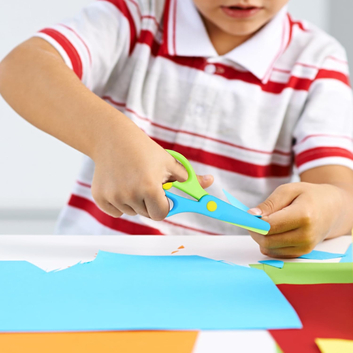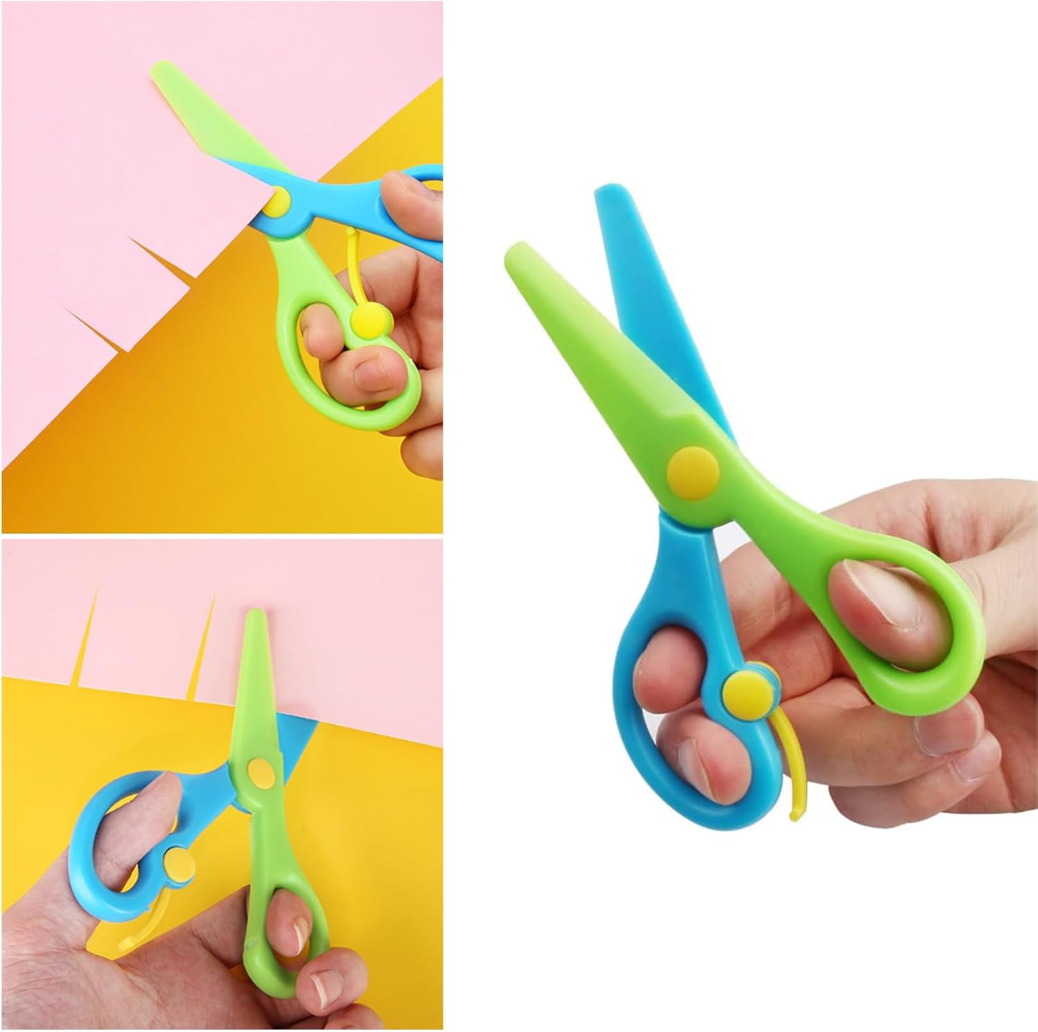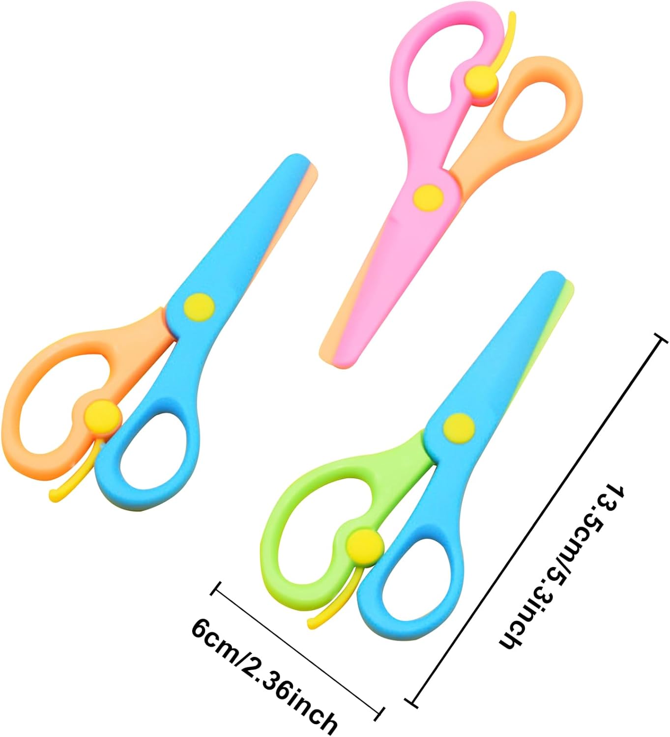 Riceverai: Riceverai 3 forbici di sicurezza per bambini che misurano ca. 13,5 x 6 cm, con 4 colori, facile da usare, piccolo, facile da trasportare e riporre. Materiale: le forbici di sicurezza per bambini sono realizzate in plastica di alta qualità, resistente all'usura, non facile da rompere e con una lunga durata. Dimensioni: ca. 13,5×6 cm; adatto a bambini in età prescolare che iniziano a usare le forbici. 【Design accurato】 La leva di addestramento delle forbici per la scuola apre le lame dopo ogni taglio per insegnare in sicurezza ai bambini in età prescolare come aprire e chiudere le forbici. Applicazione: ideale per scrapbooking, taglio della carta, biglietti di auguri e altri lavori manuali.