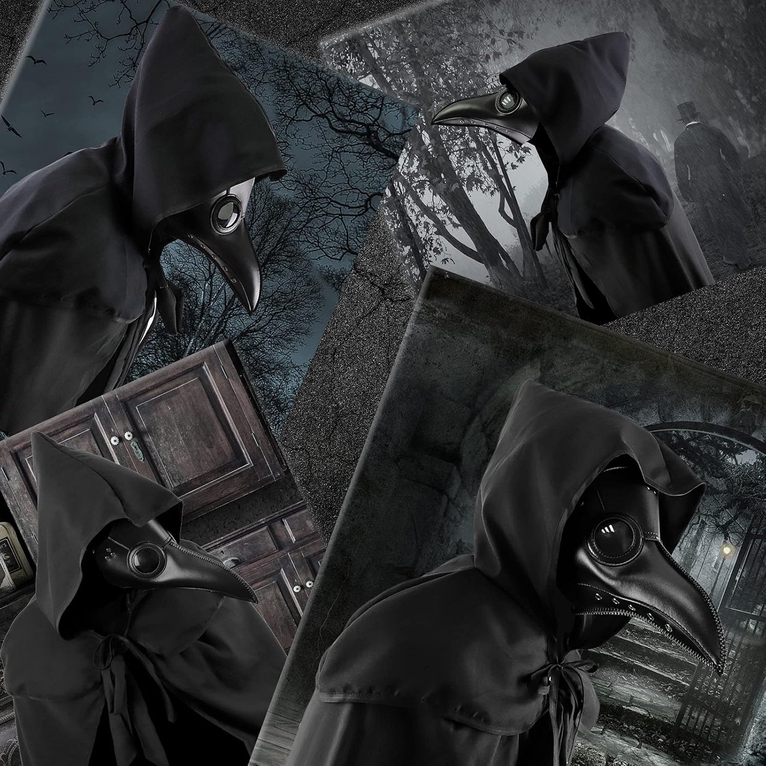 Descrizione prodotto Set di 3 costumi gotici da medico della peste, ideale per Halloween, cosplay e feste a tema Scatena un'aria di mistero e terrore con questo set di 3 pezzi costume da medico della peste. Il centrotavola è una maschera da medico della peste nera meticolosamente realizzata, realizzata con materiali di alta qualità. È dotato di un lungo becco a forma di uccello e di una maschera rotonda, simile a un vetro, ornati con borchie in metallo per un tocco in più di stile gotico. Accoppiato con la maschera è un mantello nero con cappuccio, realizzato in un tessuto leggero ma resistente. Il mantello drappeggia elegantemente sulle spalle, con una chiusura a cravatta sul davanti per una vestibilità sicura. Completa il set un passamontagna nero, che può essere indossato sotto la maschera per un maggiore calore e un look più completo. Che tu stia partecipando a una festa di Halloween, partecipando a un evento cosplay o semplicemente cercando di fare una dichiarazione a un incontro a tema, questo set è progettato per trasformarti in una figura minacciosa del passato. Avviso di sicurezza No