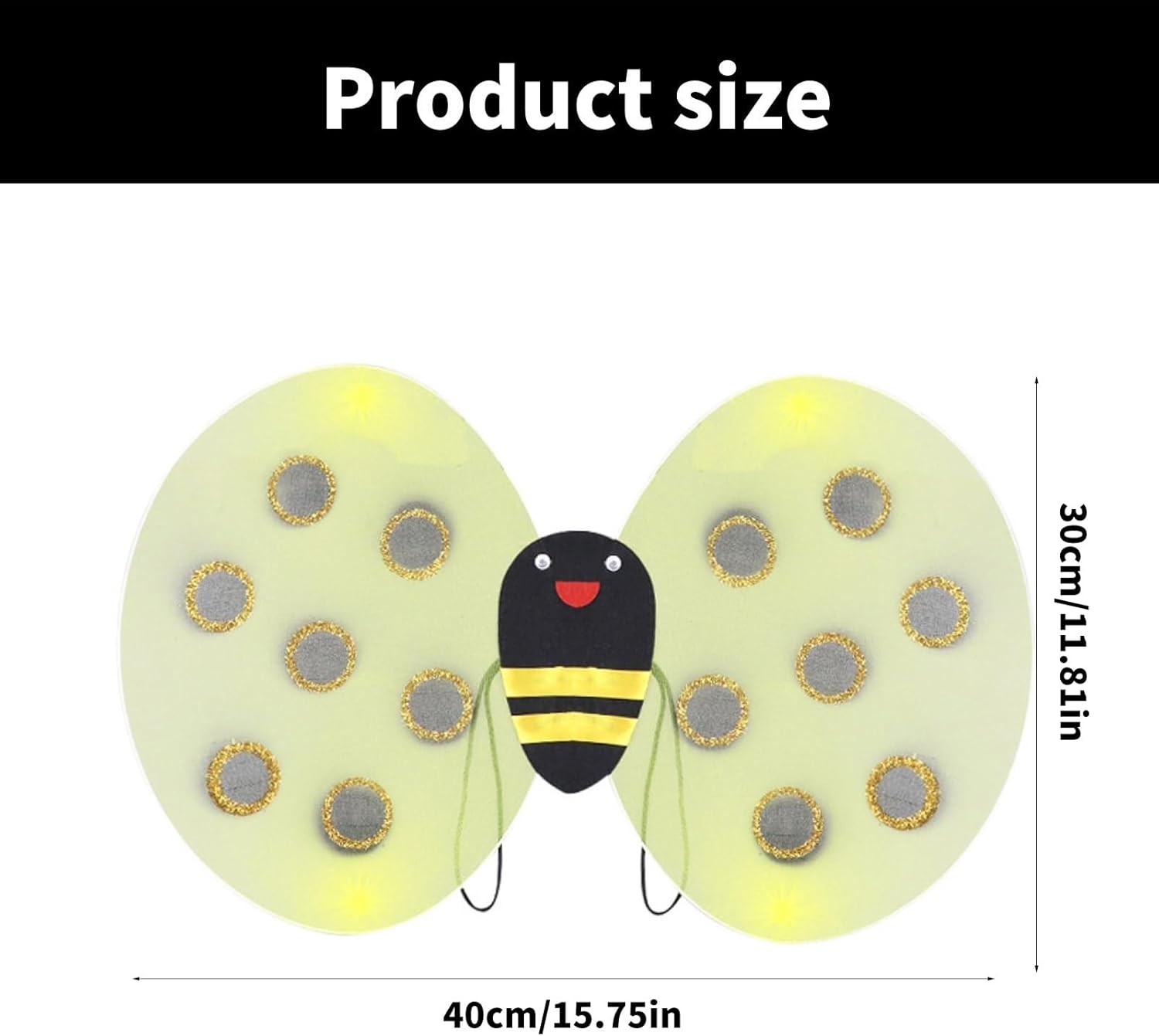 Set costume api con ala, copricapo e bacchetta è accattivante e molto popolare tra i bambini! Progettato per gli appassionati di feste, queste ali di api sono una deliziosa aggiunta a qualsiasi collezione. Ogni paio di ali è dotato di spallacci elastici, che possono essere fissati saldamente sulla schiena. Questo set permetterà al tuo bambino di allargare l'ala e attirare l'attenzione di tutti. Il pacchetto include: 3 pz/set api costume set