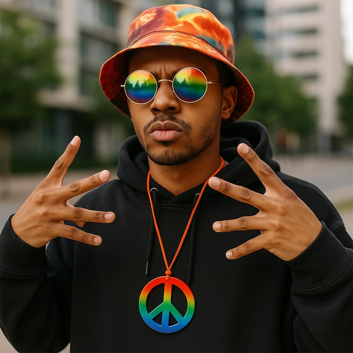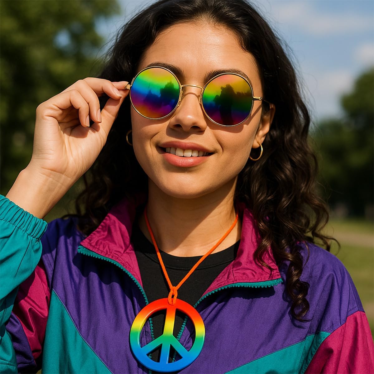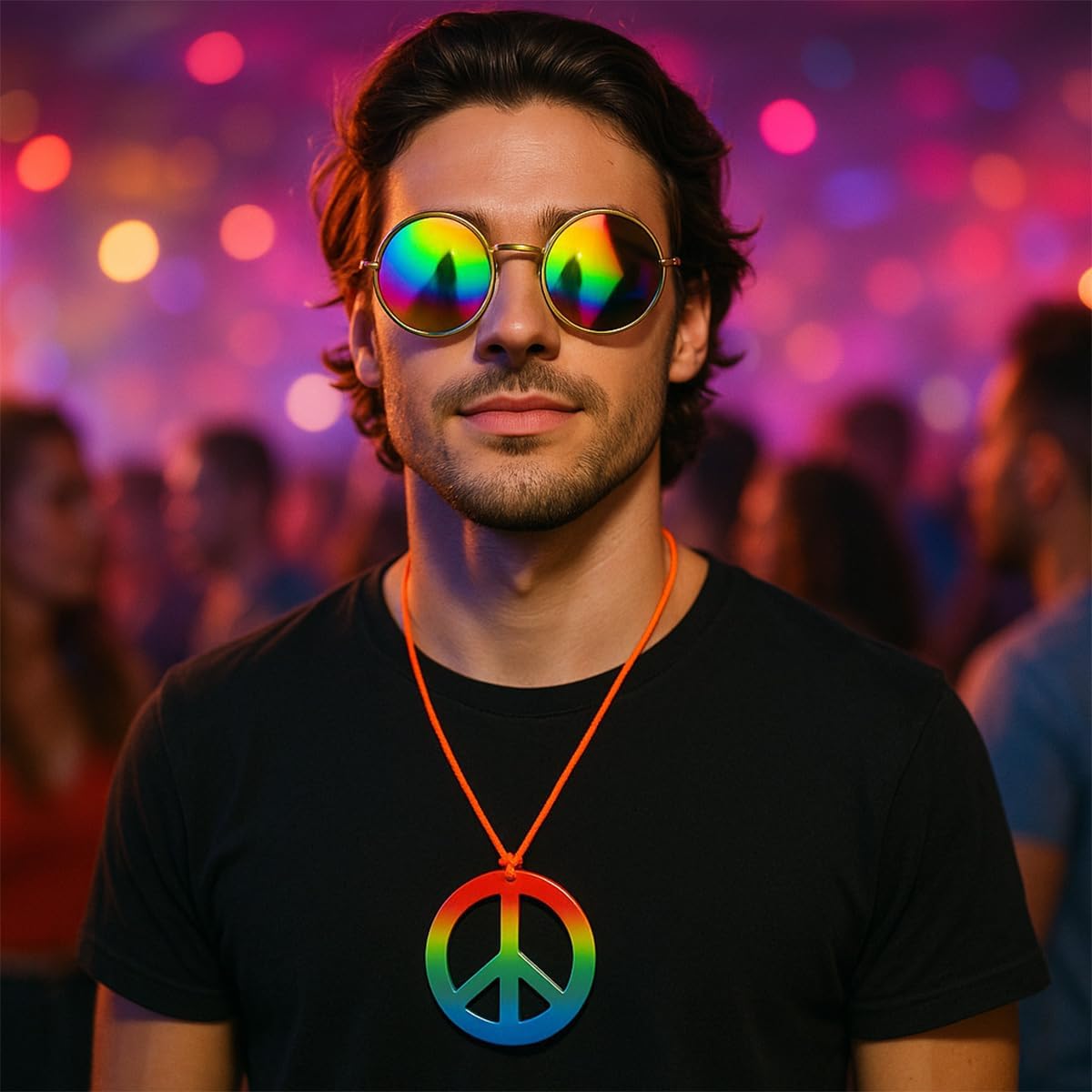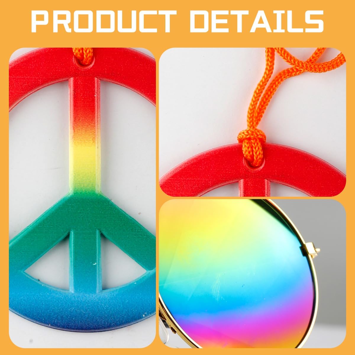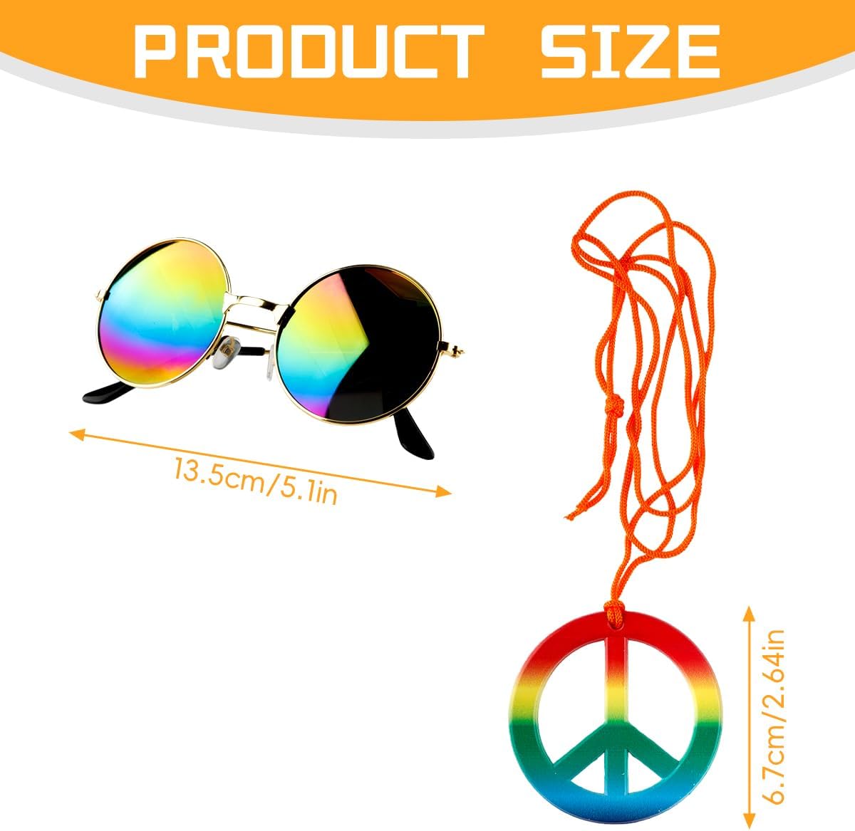 Descrizione prodotto Lotsdonxia Set di 3 pezzi per costume hippie, anni '60 e '70, accessori per feste con girasole, collana della pace, occhiali da sole rotondi per feste retrò e travestimenti Avviso di sicurezza Non