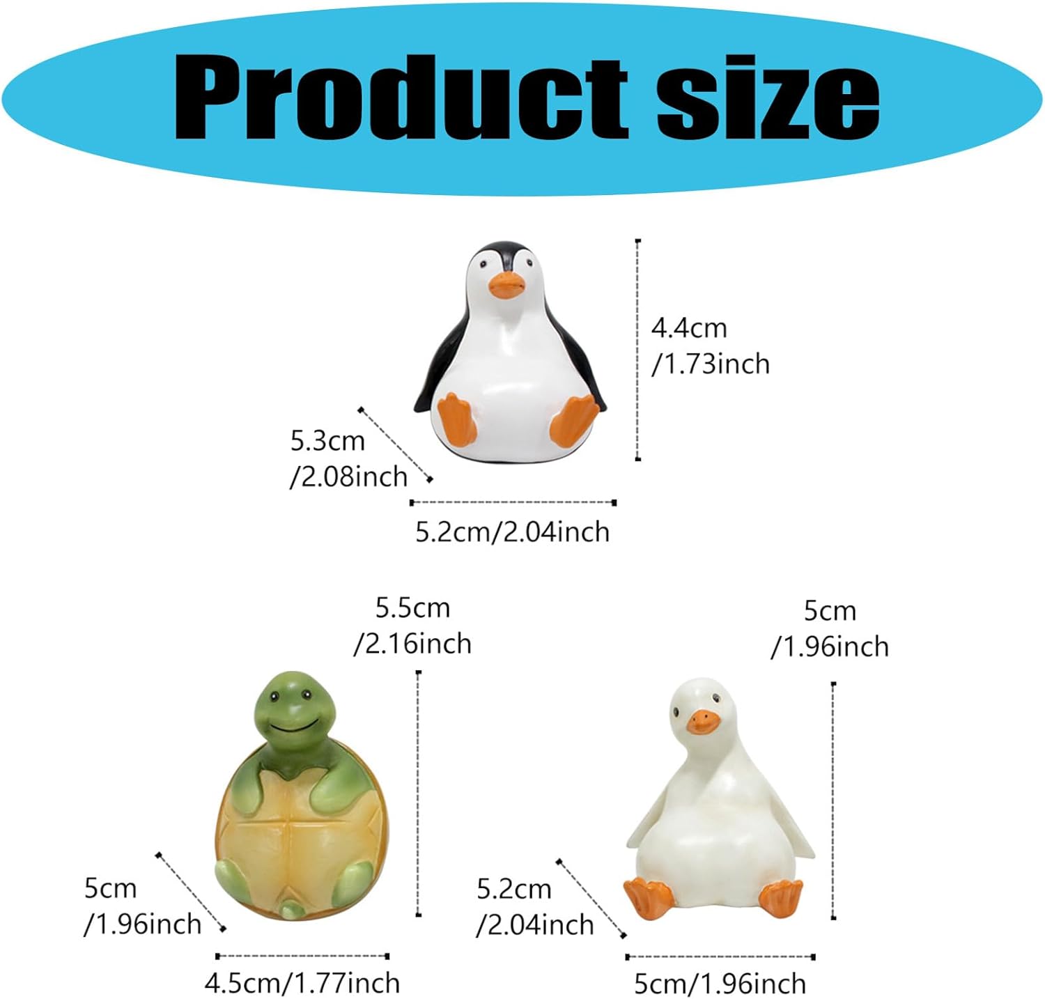 Migliora il tuo spazio abitativo con questi pinguini, anatre e statuette di tartarughe, un accattivante statuetta decorativa realizzata con resine di alta qualità, ideali sia per esterni che per interni Una grande aggiunta alla tua casa o come grande regalo per amici e familiari, queste sculture di animali saranno sicuramente tutti coloro che vedranno Queste statuette di animali sono ideali per essere posizionate in giardino, balconi o soggiorni e portano carattere in diversi ambienti Queste sculture sono ideali per appassionati di arredamento e collezionisti di gioielli d'arte unici e aggiungono un tocco di capriccio a qualsiasi collezione Queste statuette da giardino dettagliate dispongono di tre animali seduti consecutivi e offrono una resistenza alle intemperie