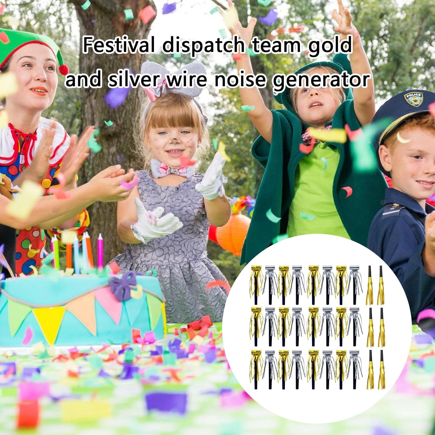 Con design facili da usare e materiali facili da usare, questi produttori di rumore non sono solo divertenti ma anche rispettosi dell'ambiente, rendendo un accessorio indispensabile per le feste. per la celebrazione di Capodanno, feste di compleanno, matrimoni ed eventi scolastici, questi rumorosi portano eccitazione e piacere in ogni occasione. Questi squawker per feste e corna da soffiaggio sono realizzati con frange robuste e dotate di frange, garantendo un uso stabile e un effetto sonoro forte. Ideale per organizzatori di feste, appassionati di riunioni a casa e aziende di pianificazione di eventi che desiderano aggiungere un tocco creativo al loro evento. Migliora la tua celebrazione con il nostro set da 30 pezzi di produttori di rumore in oro e argento, per creare un'atmosfera dal vivo e da festival in qualsiasi evento.