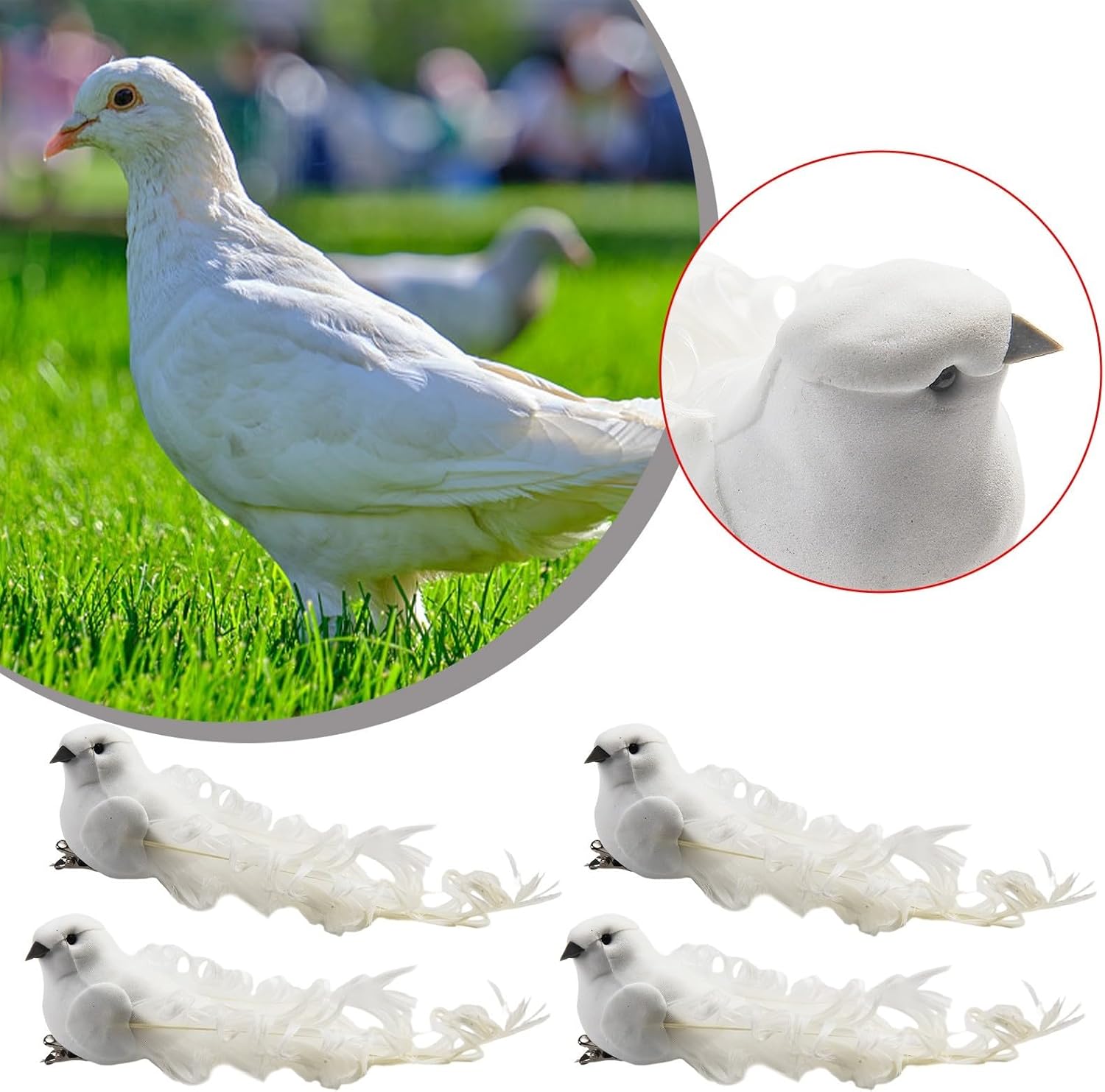 Confezione generosa: ogni confezione contiene 4 colombe artificiali, che offrono ampie opzioni per la decorazione. Dimensioni compatte: misurano 15 x 5 x 4,5 cm, questi piccoli e carini uccelli sono altamente portatili. Facili da usare: progettate con clip sui piedi, queste colombe possono essere facilmente fissate su rami o altri oggetti per una maggiore bellezza. Uso: perfetto per matrimoni, battesimi, fotografie o decorazioni per interni ed esterni. Ottimo anche per gli amanti degli uccelli tra familiari e amici.