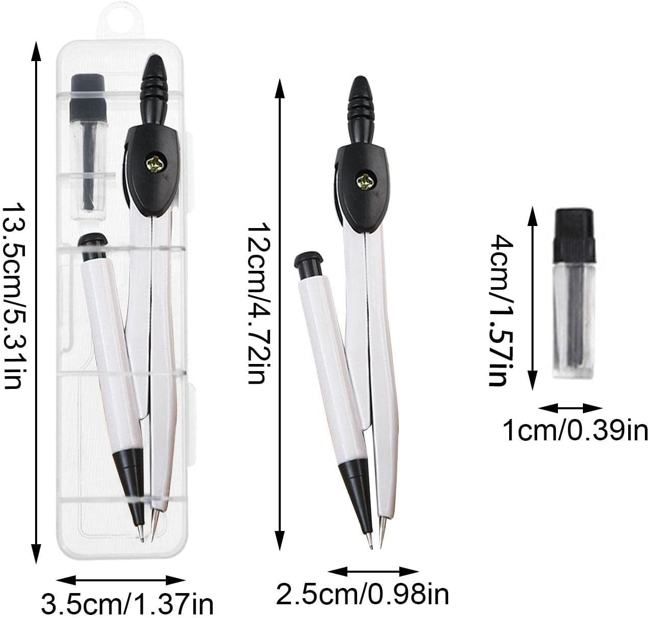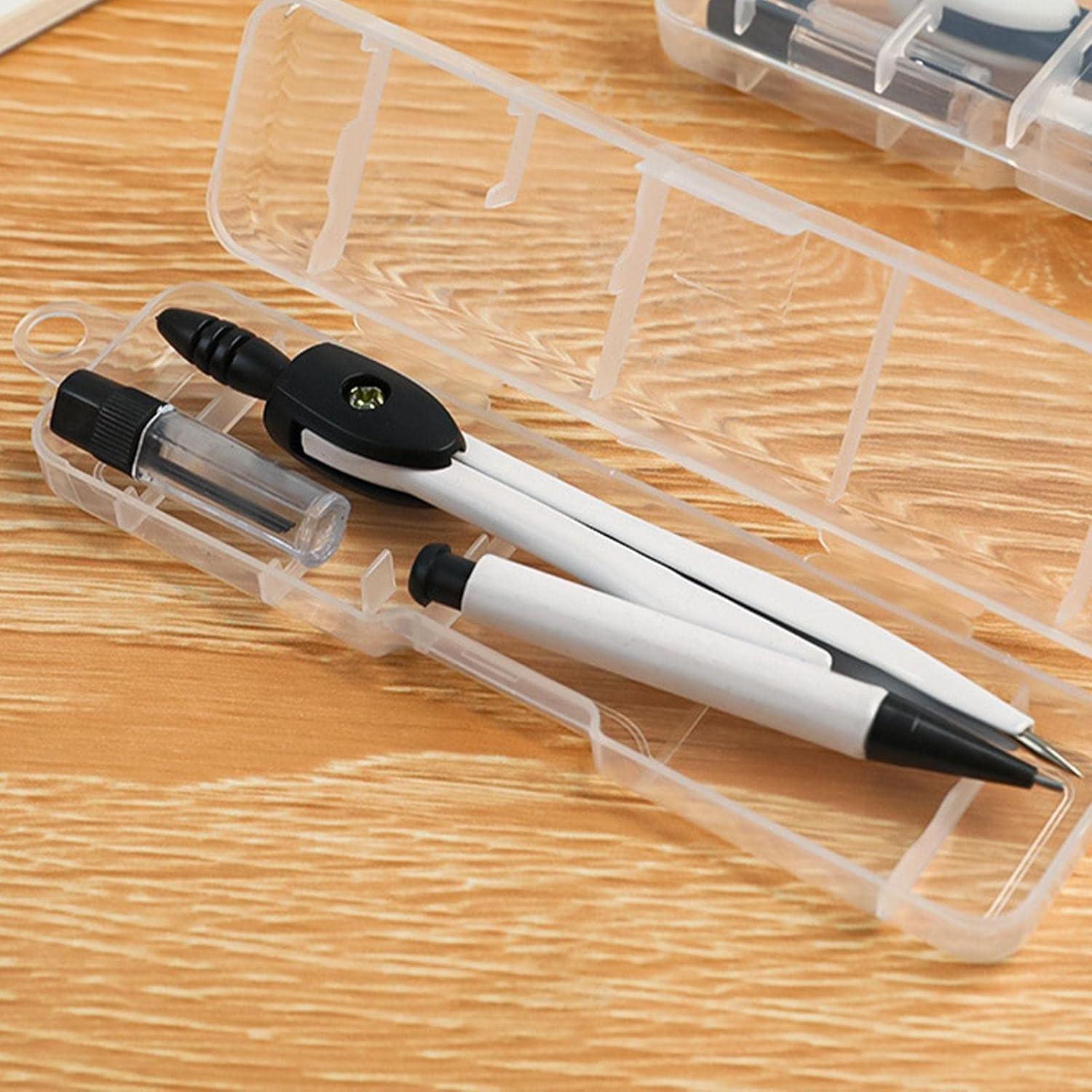 Previene lo scivolamento: con un design con manico antiscivolo, questo set di bussole da disegno è facile da usare e più conveniente. Garantisce precisione e impedisce lo scivolamento. Multiuso: migliora la tua esperienza creativa con questo set di compassi da disegno, dotato di molteplici funzioni per lezioni di geometria, disegno, progettazione architettonica, costruzione e altro ancora. Perfetto per tutti i livelli, dai principianti ai professionisti. Ben fatto: realizzato in polipropilene resistente, il nostro set da disegno offre una precisione robusta, garantendo valore e precisione durature. Impermeabili e riutilizzabili, questi strumenti non arrugginiscono o si consumano nel tempo. Facile da trasportare: organizza e trasporta i tuoi strumenti da disegno con facilità utilizzando la custodia rigida trasparente fornita con questo set. Leggera e facile da trasportare, la custodia assicura che il set rimanga protetto e visibile in ogni momento. Semplice da usare: migliora la tua esperienza di disegno con facilità utilizzando questo set di compasso. Con la sua funzione semplice da usare, sostituisci la penna come preferisci con un nucleo di piombo da 0,7 mm e un nucleo di ricambio incluso nella confezione.
