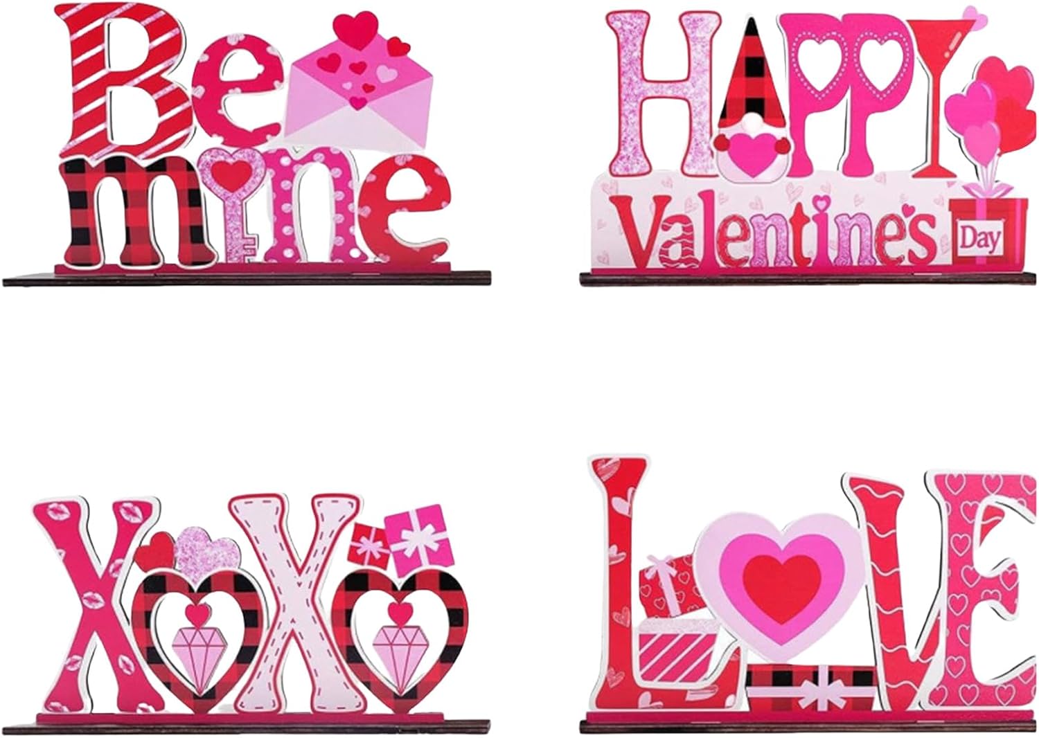 Trasforma qualsiasi spazio in una stanza piena di amore con queste eleganti decorazioni di San Valentino, per aggiungere un tocco di romanticismo alla tua collezione di forniture per feste Adatto per casa, ristoranti, caffè o vetrine durante San Valentino o qualsiasi evento a tema romantico Realizzate in legno, queste decorazioni vantano colori vivaci e sono robuste, facili da pulire e semplici da esporre per coppie, famiglie, proprietari di negozi o chiunque cerchi di creare un ambiente romantico Migliora le decorazioni di San Valentino con questo set di 4 ornamenti a forma di cuore, progettati per creare un'atmosfera per ogni occasione