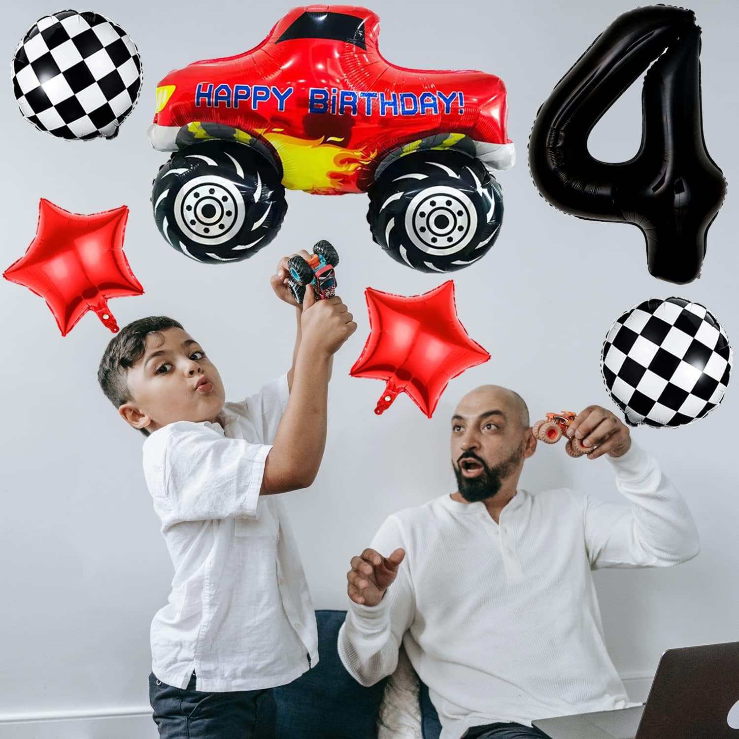 ❤Materiale: realizzato con palloncini in alluminio di alta qualità, sicuri, durevoli, belli e trasportano elio o aria. Il kit di decorazioni crea uno sfondo a tema monster truck per la tua festa, tutti i presenti alla festa rimarranno colpiti dalle decorazioni e avranno ricordi indimenticabili della festa. Il kit di decorazioni è rosso e nero, è la decorazione perfetta per feste a tema Monster Truck, feste di compleanno con auto per bambini, baby shower, feste a tema auto da corsa, adolescenti o altri eventi di festival. ❤Nota: i palloncini in alluminio non galleggiano quando si gonfiano i palloncini solo con aria. Galleggiano semplicemente nell'aria in puro elio. ❤Contenuto della confezione: 1 palloncino in foil digitale nero da 81 cm, 1 palloncino in foil gigante per monster truck, 2 palloncini in foil a stella rossa da 45 cm, 2 palloncini in foil a griglia bianca e nera rotondi da 45 cm, 1 nastro per palloncini nero, 1 tubo di soffio.
