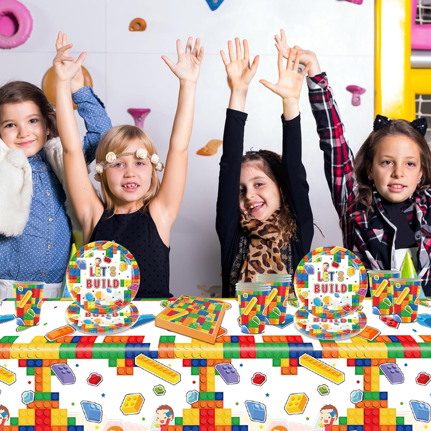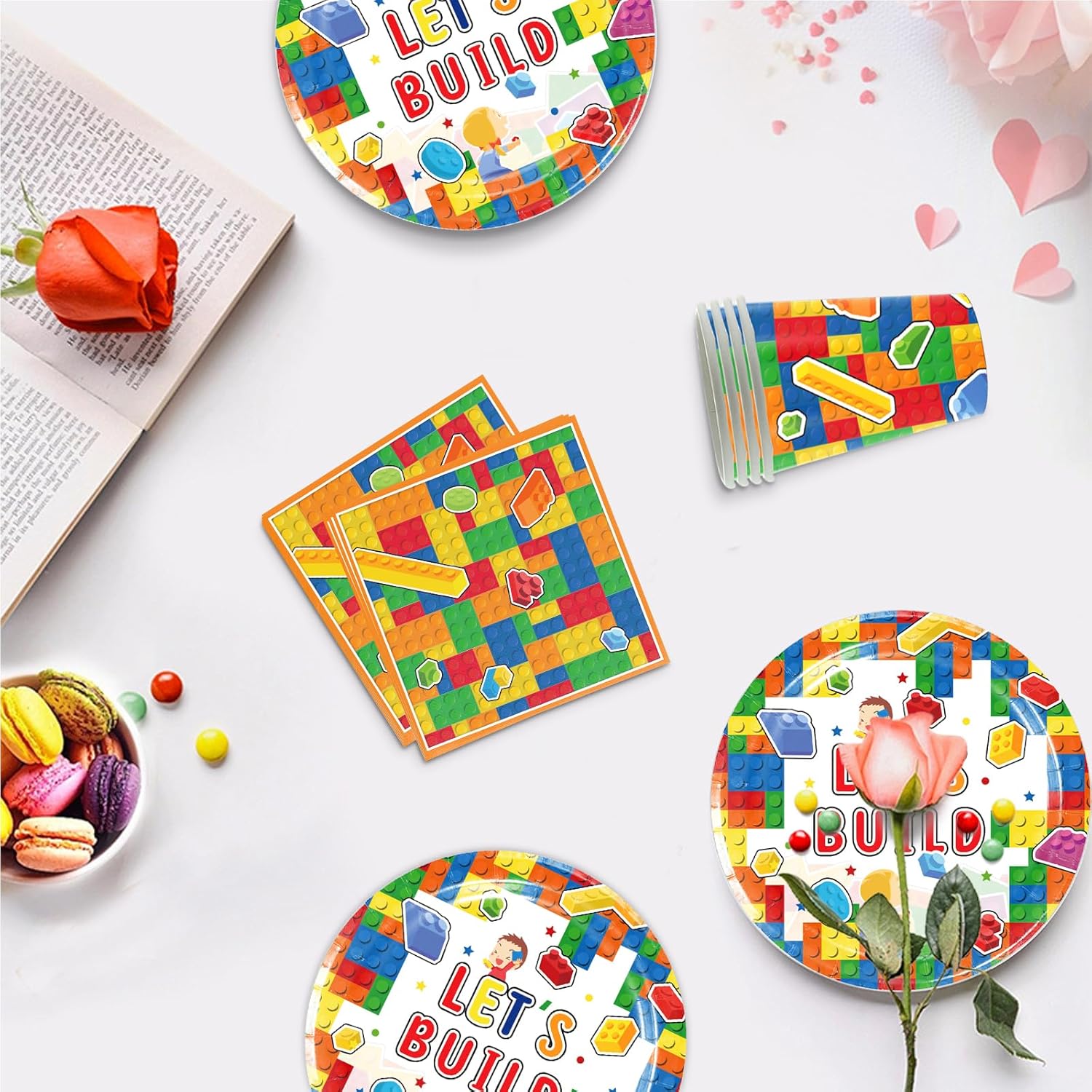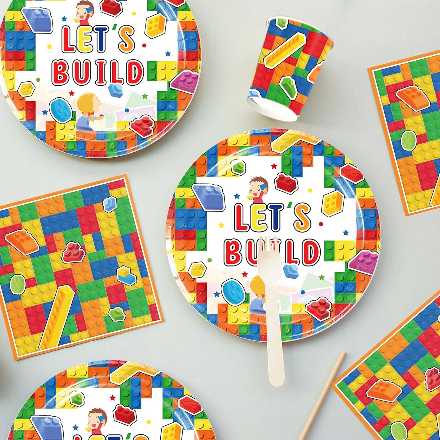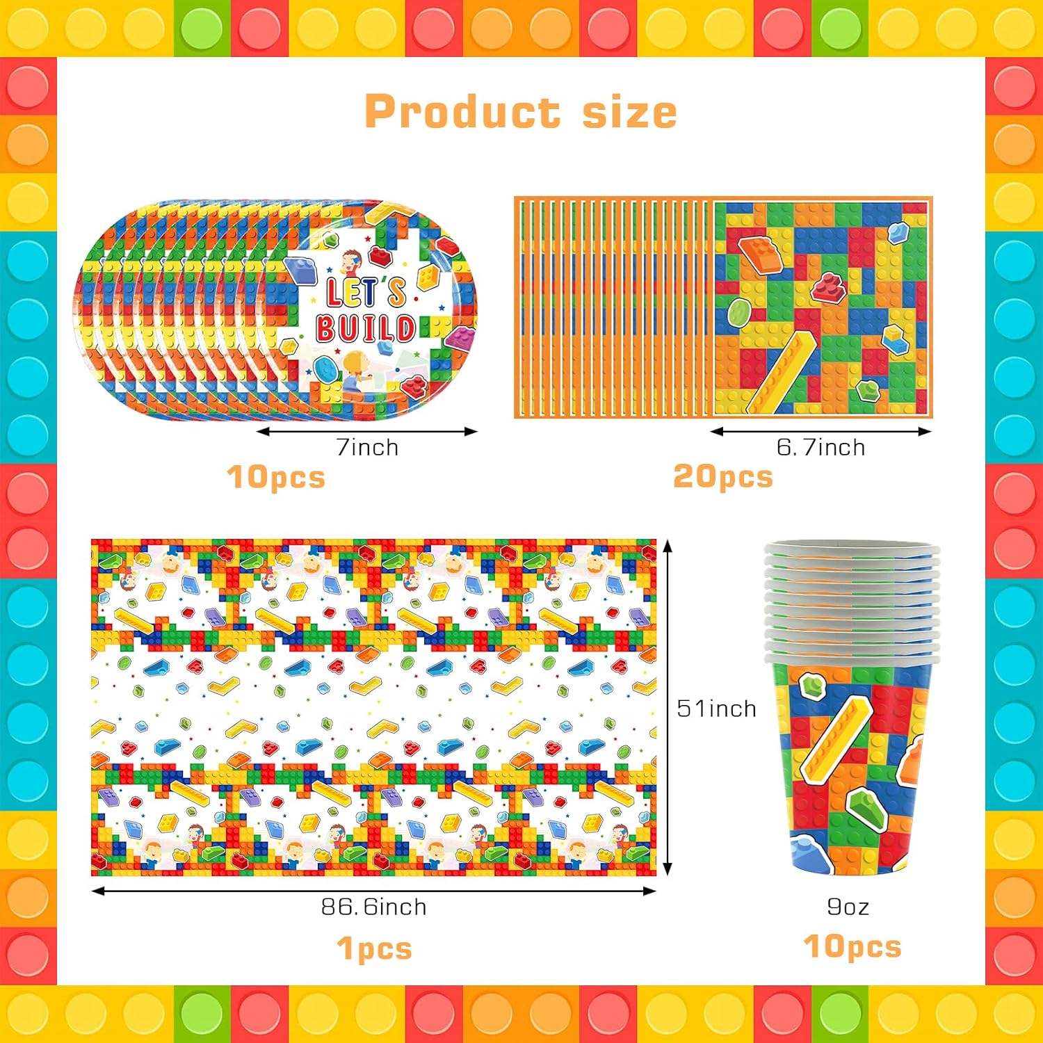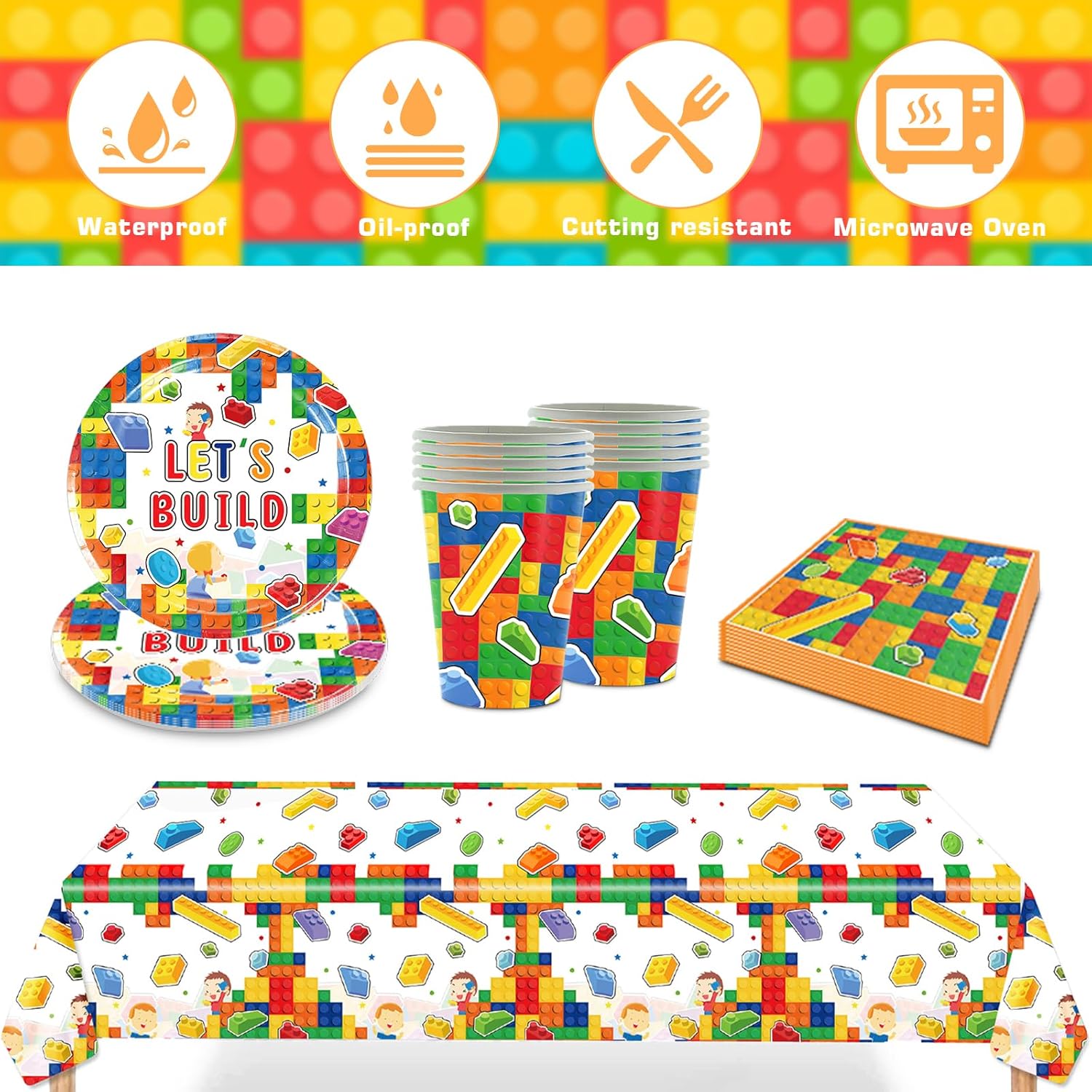 Set di accessori per feste a tema: questo set per feste contiene tutto il necessario per la festa. Il set di stoviglie per feste include 10 piatti (7 pollici), 10 bicchieri di carta, 1 tovaglia, 20 asciugamani di carta, adatti per una piccola festa di 10 persone. Materiali di alta qualità: la decorazione per feste per bambini è realizzata in carta di alta qualità e viene utilizzata per il contatto con gli alimenti. Questi piatti e tazze possono contenere cibi caldi, torte e altri cibi o bevande. È sicuro al 100% e non tossico per bambini e adulti. Design creativo: il kit di decorazioni per feste utilizza mattoncini come tema per risvegliare l'interesse dei bambini e creare un'atmosfera allegra di festa. È una scelta ideale per dessert, pasti per feste e bevande. Facile da pulire: piatti per feste di compleanno, leggeri e facili da trasportare, anche se all'aria aperta, possono essere facilmente decorati e possono essere puliti rapidamente dopo che la festa è finita. Risparmia tempo ed energia e trascorri più tempo con la famiglia o gli amici! Set di stoviglie per feste di compleanno per bambini: questo set di mattoncini da costruzione è il complemento perfetto per la decorazione della festa per tutte le occasioni in interni ed esterni. Perfetto per feste di compleanno per ragazze, anniversari, matrimoni, feste di fidanzamento, barbecue e picnic.