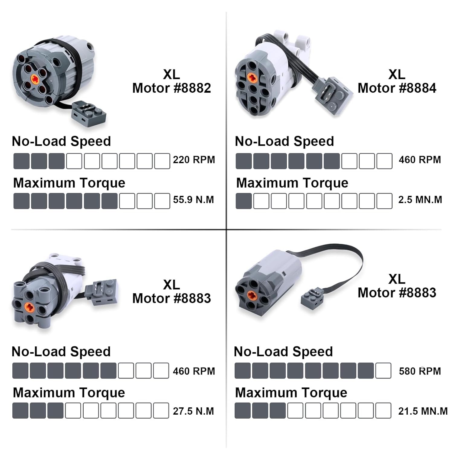 【Set completo da 45 pezzi per Power Functions】Questo set completo contiene: M-Motor 8883, L-Motor 88003, XL Motor 8882, motore ferroviario 88002, servomotore 88004, vano batteria AA 8881, scomparto batteria AAA 88000, modulo luce 8870, prolunga 8886, controllo. Interruttore 8869 Ricevitore IR 8884, telecomando IR 8879 e un pacchetto completo di accessori, ideale per l'uso immediato. Massima versatilità per progetti tecnici: il mini set motore non importa se veicolo RC, gru, montagne russe, escavatori, jeep o braccio robotico: questo set è perfetto per creare, ampliare o riparare le vostre costruzioni tecniche. Compatibile con EV3 Mindstorms e altre serie di tecniche popolari. Lavorazione di alta qualità e controllo preciso: il set motore è realizzato in plastica ABS resistente e resistente. Con il telecomando e il ricevitore IR in dotazione è possibile controllare la velocità e la direzione con precisione, per il massimo divertimento e un controllo preciso. Ampia compatibilità e facile integrazione: il set di motori compatibile con la maggior parte delle marche di mattoncini come per Technic. Tutti i componenti sono facili da montare, smontare e combinabili in modo flessibile con i modelli esistenti, ideali per aggiornare i tuoi kit esistenti. Molteplici funzioni del motore per una creatività senza limiti: il motore che si tratti di alta velocità, forte coppia o controllo sensibile, il nostro set di motori offre la soluzione giusta per ogni scenario tecnico. Perfetto per principianti e professionisti che vogliono portare i loro modelli al livello successivo.