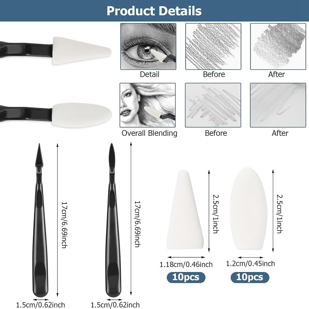 Durevole e affidabile: i nostri ceppi e tortilon ibridi sono realizzati con alta precisione con carta ferroviaria e di alta qualità per garantirne la durata. I nostri ceppi sono durevoli, non si rompono e non facilmente, puoi concentrarti tua arte distrazioni. Contenuto della confezione: La confezione include 48 pezzi misti di dimensioni 5, 6, 7 e 8, 1 pezzo di disegno nelle dimensioni 1, 2, 3, 4 e 2 gnocchi da disegno nelle dimensioni 1, 2, 3 e 4, 2 pezzi per ogni dimensione, 1 strumento di estensione matita, 2 tamponi di carta vetrata, 2 gomme per impastare, 1 schizzo. spugna per sfregamento, 2 raschietti per schizzi, 20 testine di ricambio in spugna (10 ovali e 10 punte) e 1 borsa in feltro. Spugna da attrito per schizzi: usa la nostra spugna per attrito per schizzi per creare texture realistiche e mozzafiato nei tuoi dipinti. Questa morbida spugna in schiuma è per creare effetti atmosferici come nuvole o , e puoi facilmente applicare o rimuovere grafite o per dare la consistenza e la profondità necessarie alla tua opera d'arte. Profondità e dimensione sono fondamentali: che tu un principiante o un artista esperto, un set affidabile di ceppi e gnocchi misti è fondamentale per migliorare la tua opera d'arte. L'uso regolare e preciso di questi strumenti consente di ottenere profondità insuperabile, dimensione e realismo nel vostro dipinto, rendendolo un must nella cassetta degli attrezzi di ogni artista. Potenzia la tua performance artistica: dai un'occhiata alla tua opera d'arte con i nostri strumenti ibridi di alta qualità. Con la spugna per schizzi e i cancelletti/tortilon, puoi creare trame affascinanti, mescolare i colori problemi e aggiungere una profondità incredibile ai tuoi dipinti. In questo modo sono un accessorio indispensabile per ogni artista che vuole esaltare la propria espressione artistica.