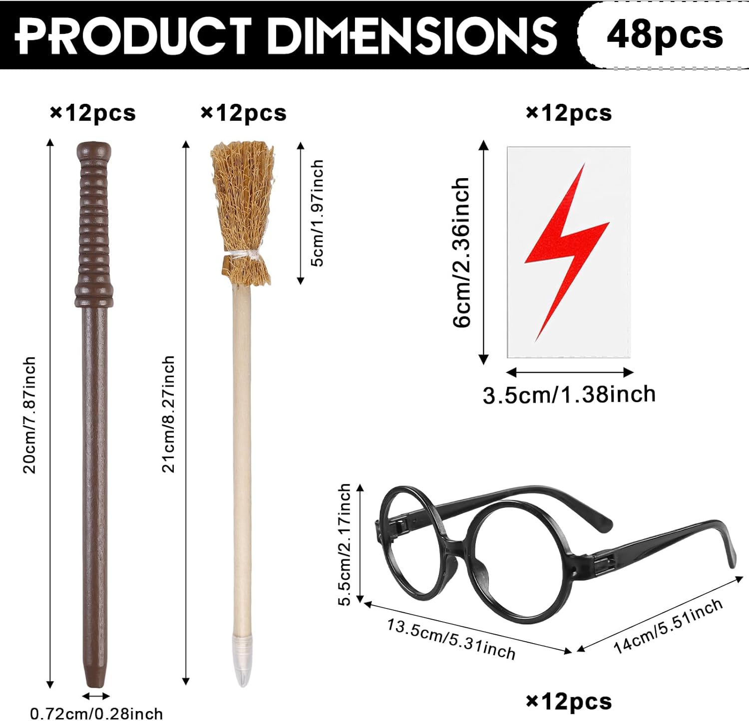 Set versatile: questo set di matite con bacchetta magica e scopa da strega contiene 12 bacchette, 12 scope da strega, 12 occhiali e 12 tatuaggi: un perfetto set di accessori per feste per occasioni magiche. Design magico: ogni pezzo nella bacchetta magica set di matite è ispirato al set di accessori per feste magica e garantisce l'autentica atmosfera magica ad ogni evento. Perfetto per le feste: il set di matite con bacchetta magica e scopa da strega è ideale come set di accessori per feste per compleanni, Halloween, premi scolastici o lezioni di bricolage. Sicuro e adatto ai bambini: il set di matite con bacchetta magica è realizzato in legno, tatuaggi delicati sulla pelle e occhiali infrangibili, un set di accessori per feste per bambini sicuro per maghi. Divertimento garantito: i tatuaggi nella bacchetta magica e le matite con scopa da strega sono facili da applicare, le scope da strega nella bacchetta magica stimolano il gioco di ruolo.