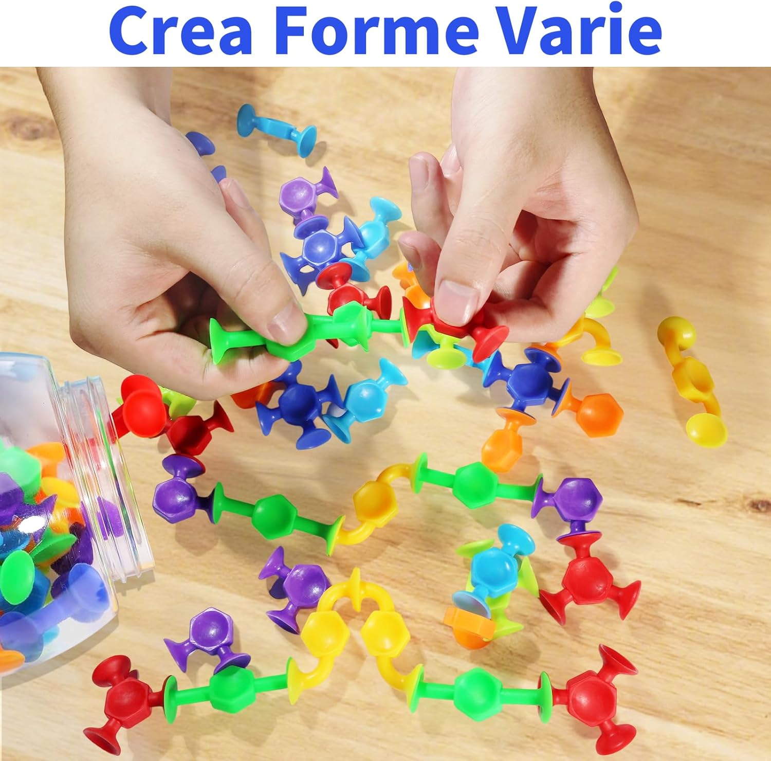 🔄【Set Costruttivo Multifunzione per Creatività e Motricità】Questo a ventosa per bambini include 48 pezzi in 6 colori (rosso, blu, giallo, verde, rosa, viola) e 7 forme, ideale per costruire torri, animali o creazioni fantastiche su superfici lisce (finestre, piastrelle, tavoli). Sviluppa il pensiero spaziale e la motricità fine attraverso l'incollaggio e il distacco delle ventose. ampia capacità come Giocattoli per bambini dai 3 anni in su per l'apprendimento autonomo. Parole chiave: con ventosa, a ventosa per bambini. 🎨【 per Esperienze di Apprendimento Variegate】I colori vivaci e le forme diverse (cerchi, stelle, cuori, ecc.) offrono una visiva e tattile – particolarmente preziosa come Giocattoli sensoriali per bambini con o per bambini con particolari esigenze sensoriali. Attaccare e staccare le ventose allena il controllo della pressione e la coordinazione occhio-mano. Parole chiave: Giocattoli sensoriali, giochi silicone bambini. 💦【Ideale per Ambienti Acquatici e Asciutti】Realizzato in plastica senza BPA per un uso sicuro come giocattoli da bagnetto per bambini – si attacca anche a piastrelle bagnate o vasche da bagno. Il compatto uovo di sauro (13,7×11,3×11,1 cm) funge da contenitore di stoccaggio impermeabile. Adatto anche per superfici asciutte come lavagne o finestre dell'auto. Parole chiave: giocattoli da bagnetto per bambini, giochi bagno silicone, da bagno per bambini. 🚗【Intrattenimento da Viaggio ampia capacità per Spostamenti】Leggero (200 g) e compatto – questo Giocattoli per il viaggio entra in ogni zaino. Tiene occupati i bambini in auto dai 3 anni durante lunghi viaggi o in aereo grazie al silenzioso. Le ventose possono essere applicate e rimosse ripetutamente dalle superfici senza lasciare residui. Parole chiave: Giocattoli per il viaggio, Essenziali da viaggio per bambini, giochi da ristorante bambini 3 anni. 🧩【Strumento Didattico con Approccio 】 concetti matematici precoci (conteggio, ordinamento per colori/forme) e risoluzione creativa dei problemi – allineato ai principi per bambini dai 4 anni in su. I pezzi sono facili da pulire (lavabili in lavastoviglie) e promuovono il concentrato, da soli o in gruppo. Include una guida didattica con 5 suggerimenti per attività. Parole chiave: Giocattoli per bambini dai 3 anni in su, giocattoli con tubo a ventosa puzzle.