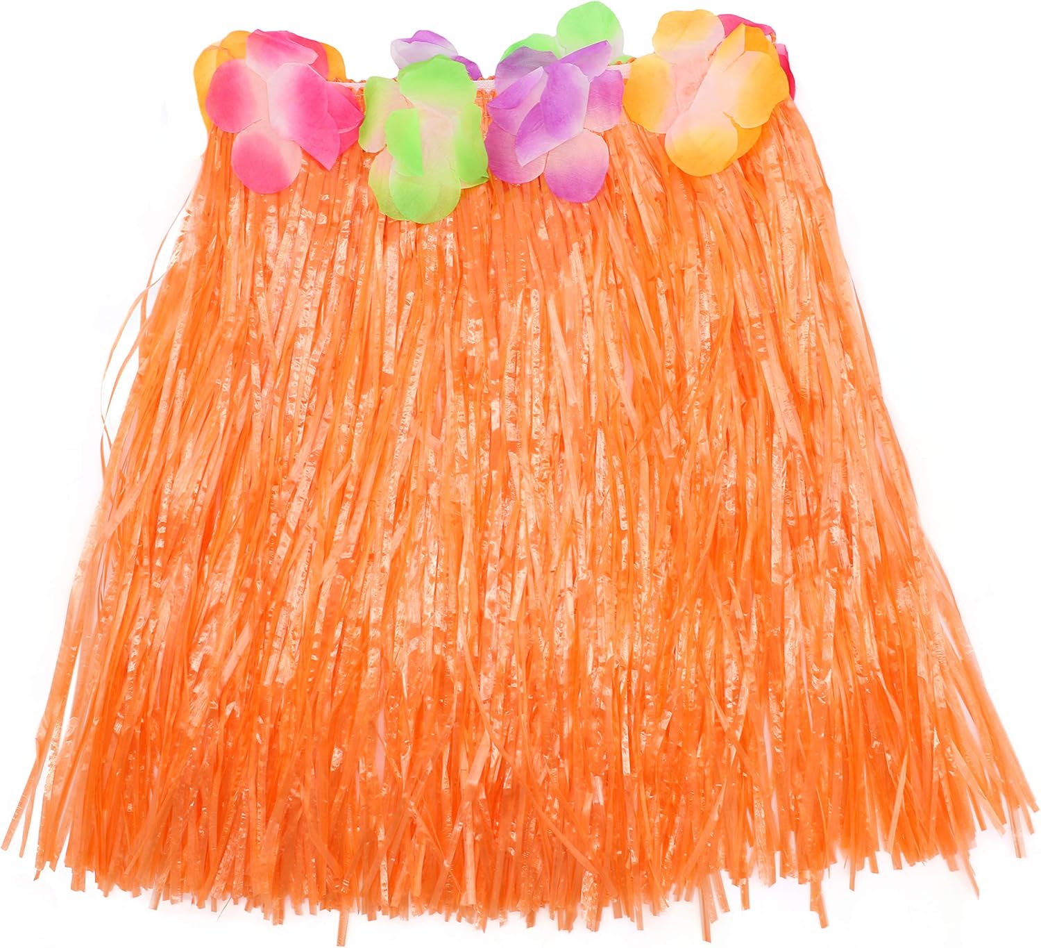 Costume da hawaiano da donna Include: 1 gonna hawaiana arancione con fascia in vita con fiore multicolore, fascia per la testa con clip rosa, collana hawaiana multicolore lei Guida alle taglie: lunghezza gonna – lunghezza: 40 cm, vita: 66 – 91,4 cm, lunghezza 56 cm, taglia unica Perfetto per i marchi dell'orgoglio estivo o per eventi tematici in spiaggia hawaiana ILOVEFANCYDRESS