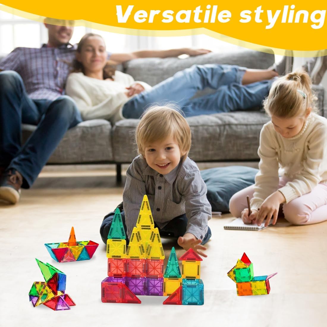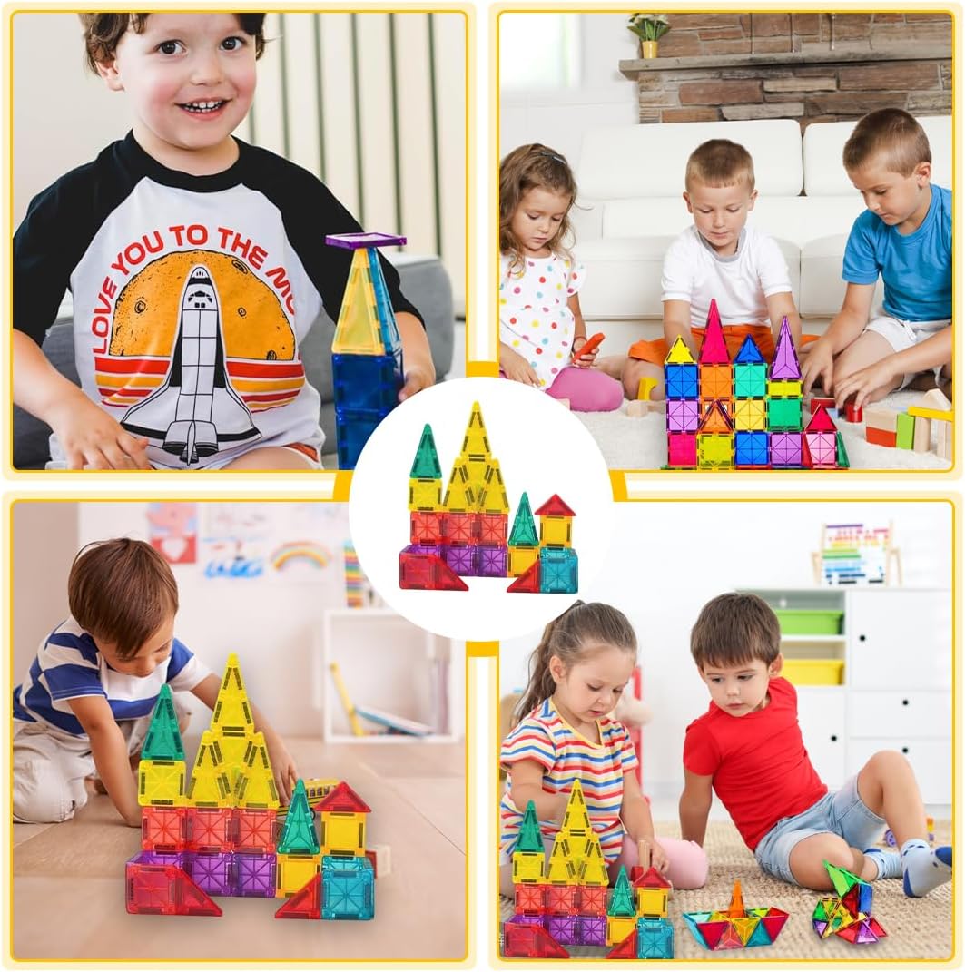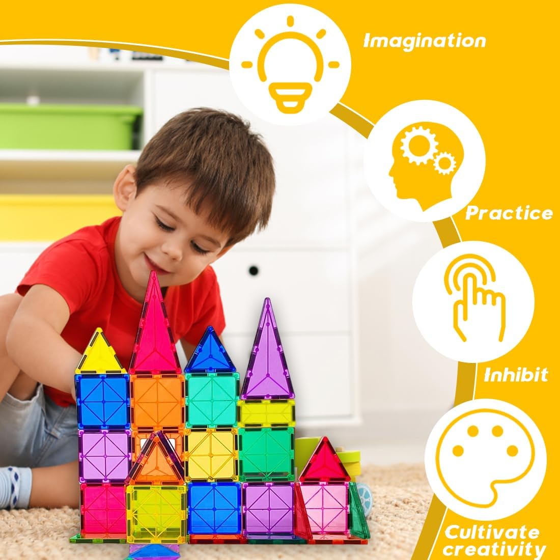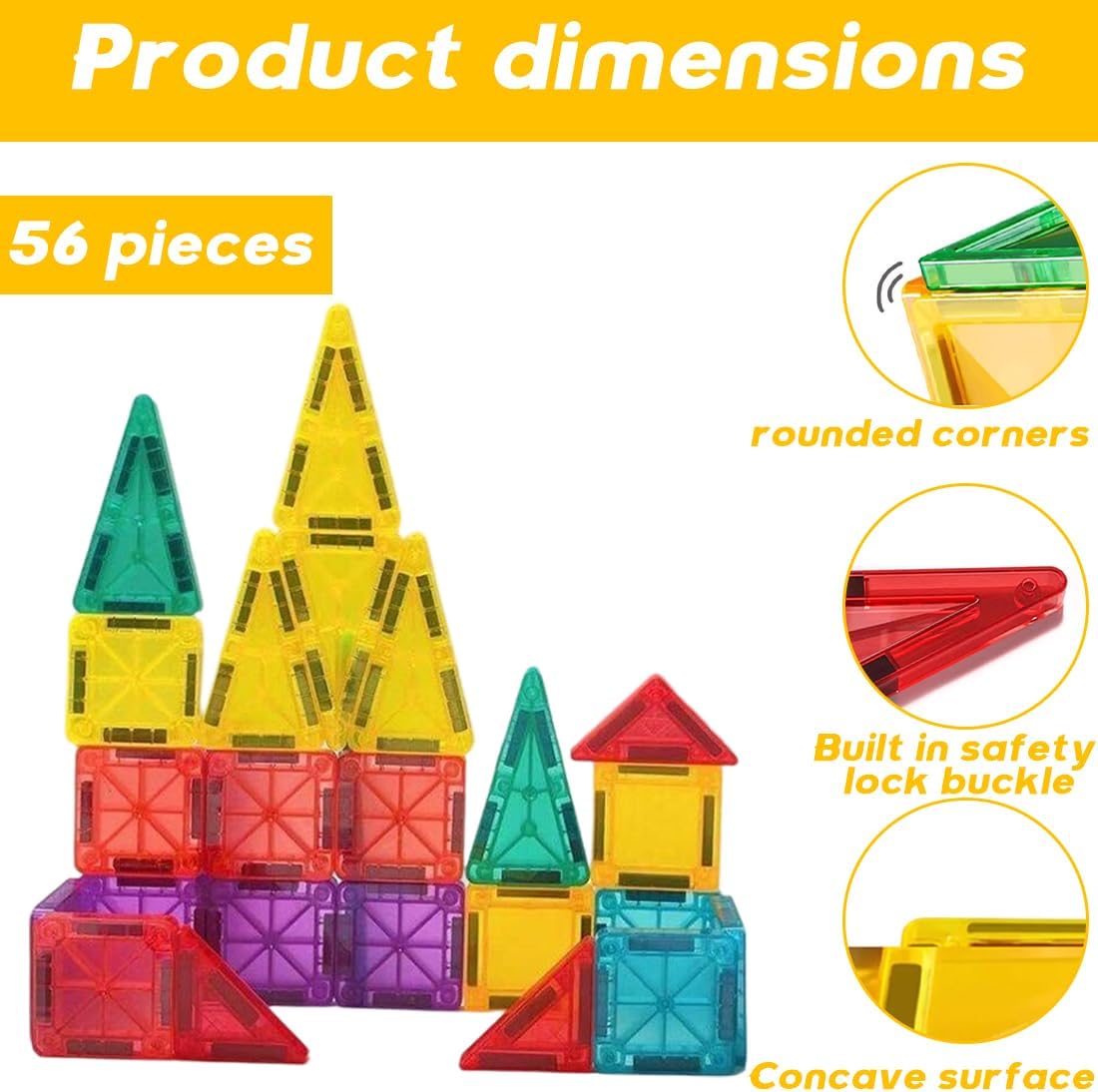 Giocattoli magnetici da viaggio: il compagno di viaggio perfetto, con 56 tessere magnetiche colorate che possono essere utilizzate per costruire lucchetti e animali in auto, aerei o ristoranti. La custodia in metallo funge sia da base di costruzione che da spazio di archiviazione, trasformando il tempo di attesa in un gioco creativo e didattico. Design lampeggiante a misura di bambino: i blocchi magnetici colorati triangolari/quadrati incoraggiano il riconoscimento dei colori e l'immaginazione 3D. Crea strutture di animali/castelli o i tuoi disegni, migliorando le capacità motorie fini e il pensiero creativo. Divertimento in viaggio organizzato: ultracompatto (si adatta facilmente a uno zaino/borsa) e leggero ma stabile grazie ai potenti magneti, è perfetto come giocattolo da viaggio senza l'ingombro di piccole parti. Gioco didattico portatile: in hotel o a casa della nonna, costruisci, smonta e riprogetta senza stare davanti allo schermo. Promuove il pensiero spaziale e la comprensione strutturale durante i viaggi in famiglia. Sicurezza e durata garantite: realizzato in plastica ABS sicura con bordi arrotondati, testato per bambini di età superiore ai 3 anni. Potenti magneti impediscono il collasso durante la costruzione. Una resistente custodia in metallo protegge la lavagna magnetica durante il trasporto: il regalo perfetto per Natale o per un compleanno.