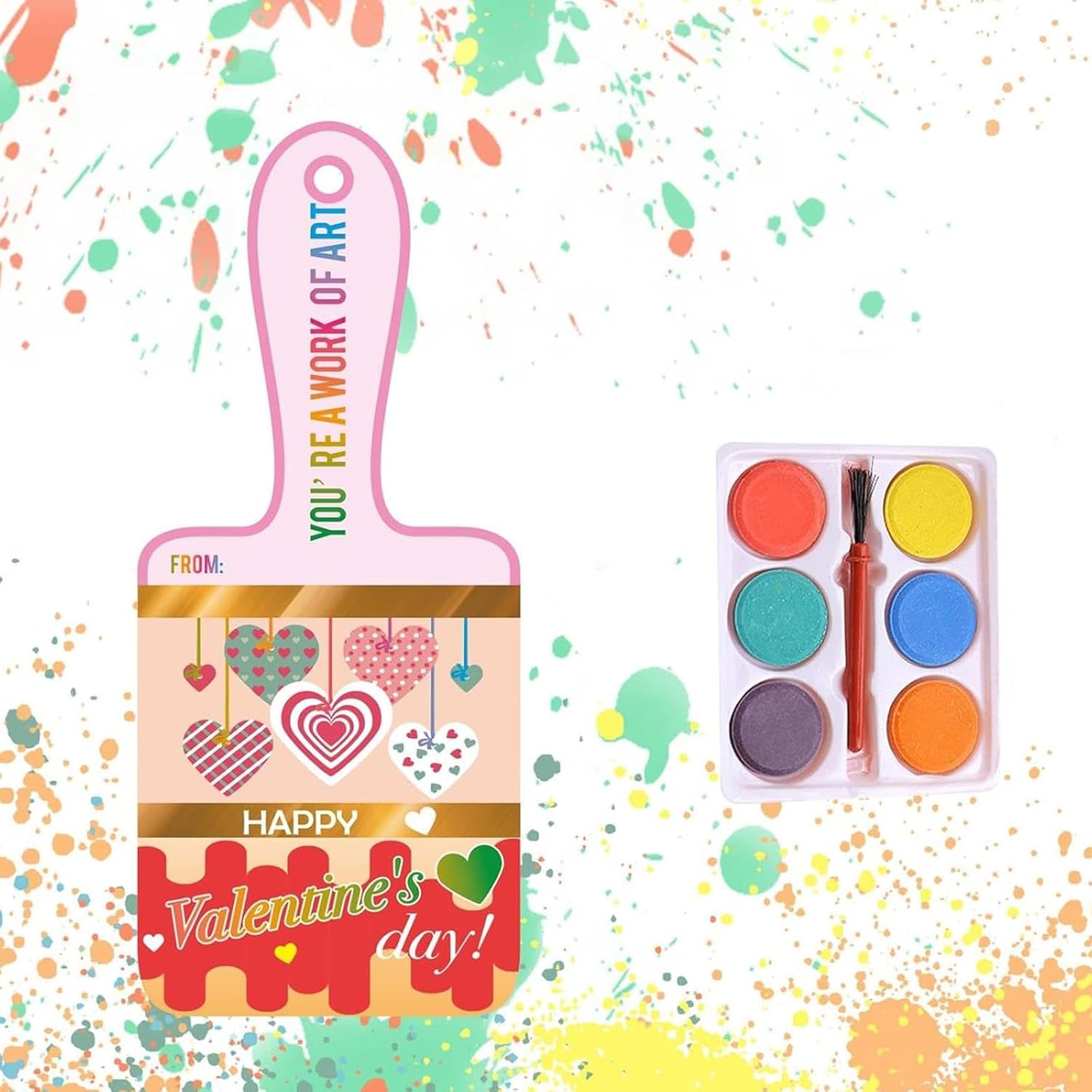 Scopri il mondo dell'arte con il nostro set di pittura ad acquerello a tema San Valentino, con 6 colori lavabili ad acquerello, ideali per scatenare la creatività durante la celebrazione di San Valentino Ampiamente usata per scambi di classe, progetti artistici scolastici o feste a tema San Valentino, questa pittura ad acquerello fornisce un'espressione divertente e artistica in vari ambienti Molto adatto per studenti, bambini, appassionati d'arte e professionisti, questo set di acquerelli si rivolge a chiunque ami la pittura ad acquerello Ogni set include 6 colori ad acquerello, pennello, biglietto di San Valentino, che consente di condividere la tua creazione artistica con gli amici in modo unico Questa pittura ad acquerello è realizzata con pigmenti, lavabile, sicura per i bambini, facile da miscelare e buona durata
