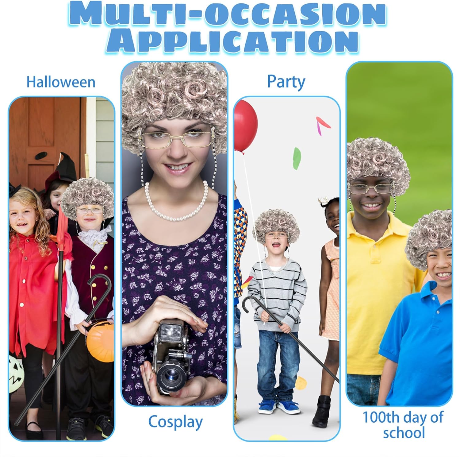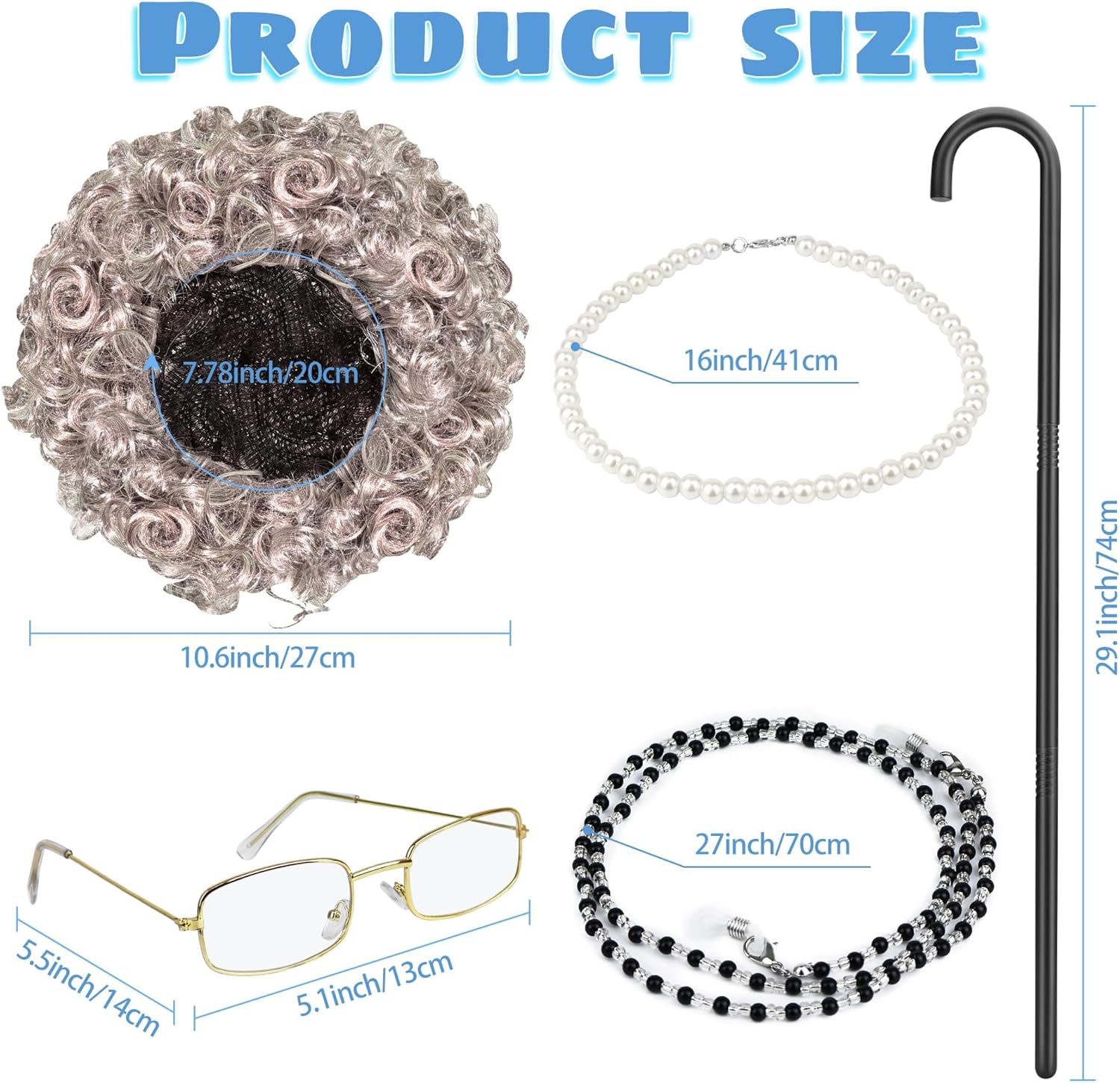 Facile da trasportare: i nostri set di parrucche da donna sono semplici nel design, facili da trasportare, e i bambini possono scegliere di abbinare la parrucca della nonna per i bambini da soli, che non solo sono favorevoli al miglioramento della fiducia e dell'indipendenza dei bambini, ma anche per la coltivazione del senso unico della bellezza dei bambini. Effetto indossabile: poiché ogni persona ha una diversa forma del viso e una circonferenza della testa, l'effetto di indossare le parrucche da donna per costume da donna varia anche da persona a persona, con l'elegante e bella collana di perle, può aumentare il vostro effetto invecchiamento, mostrare le vostre caratteristiche personali esclusive in helloween. Materiale di alta qualità: le nostre parrucche da donna per costume da donna sono realizzate in materiale di alta qualità per garantire morbidezza e comfort, non facile da danneggiare e sbiadire, durevole. La cuffia elastica per parrucca del costume da bambina garantisce una vestibilità salda in modo da non doversi preoccupare che la vecchia donna scivoli via. Gli occhiali per la nonna sono costituiti da una montatura quadrata in metallo con una catena per occhiali antiscivolo che impedisce efficacemente che gli occhiali vengano persi o danneggiati. Utilizzo versatile: il nostro costume da nonna per bambini è adatto per diverse occasioni, come travestimenti, feste in costume, giochi di ruolo, giochi di teatro per bambini, giochi di sport scolastici, feste di Halloween, feste di Natale ed eventi a tema. Inoltre, la parrucca della nonna può essere utilizzata come regalo unico per la famiglia, gli amici o i bambini per mostrare il loro stile in diverse feste. Old Lady Costume Set – La parrucca per bambini comprende 6 pezzi, 1 parrucca vecchia donna, 1 paio di occhiali da nonna, 1 bastone, 1 catena per occhiali, 1 collana di perle, 1 cuffia per parrucca. Se si indossa il costume vecchia signora ragazza su hellowear, è possibile modificare immediatamente il vostro aspetto e il comportamento.