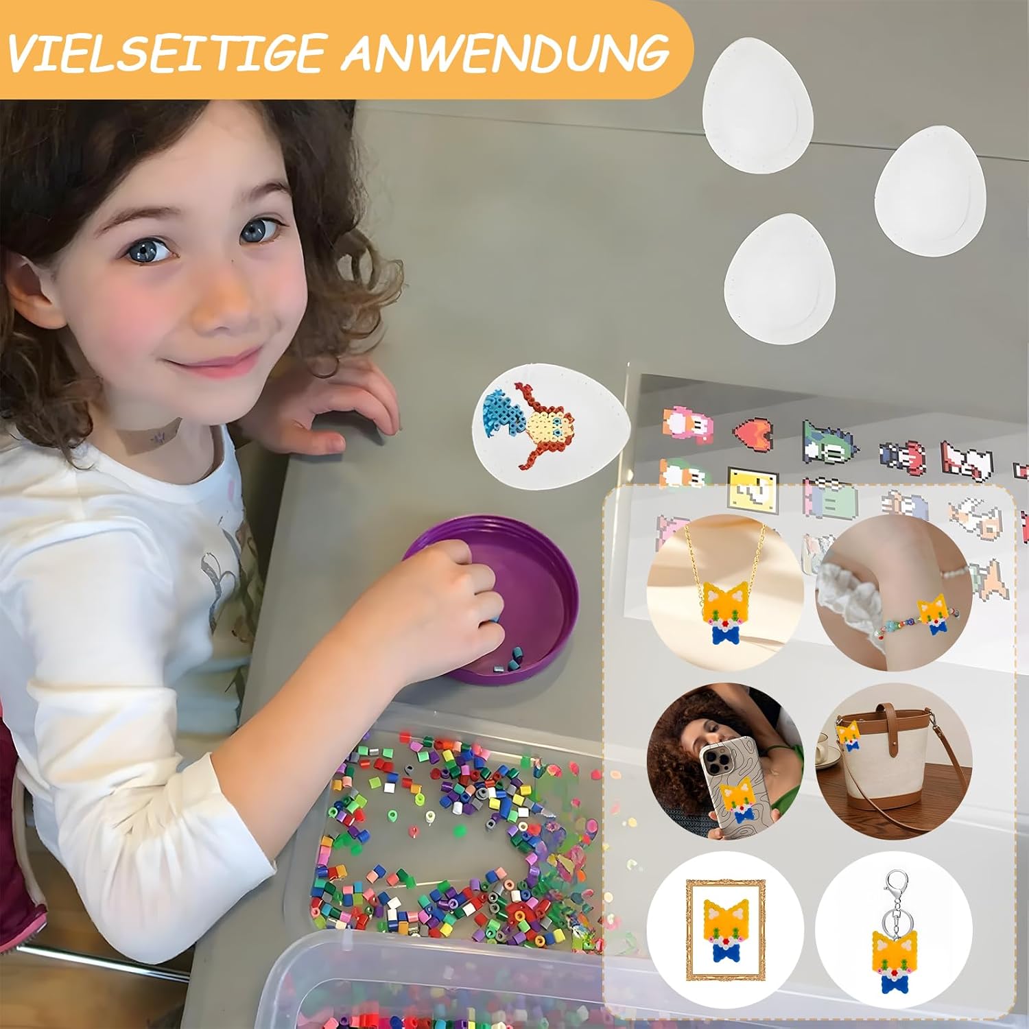 Materiale di alta qualità: le nostre perline da stirare sono realizzate con materiali di alta qualità, che non solo sono lisci al tatto, ma sono anche resistenti alle temperature e mantengono la loro forma anche durante la stiratura ad alte temperature, in modo da poter essere tranquilli durante il processo creativo. Sia gli adulti che i bambini possono trovare divertimento in questa piastra di perline da stirare. Aspetto a forma di uova: queste perline da stirare con modelli sono ispirate alle uova e sono progettate con una forma di aspetto unica. Questo design non solo rende i modelli di perline più belli, le perle da stirare con l'esclusivo effetto uova saranno il punto forte del vostro lavoro fai da te e rendono il vostro lavoro più attraente. Stimola la creatività: il nostro set di perline non è solo un giocattolo divertente, ma anche uno strumento educativo che può promuovere la creatività dei bambini. Il colore e la forma delle perline da stirare possono scegliere liberamente secondo le proprie preferenze e idee, quindi unire e combinare su piastre di perline da stirare. Riutilizzabile: i nostri modelli di perline da stirare sono riutilizzabili. Dopo ogni utilizzo è sufficiente un semplice lavaggio e le perline in plastica ritornano al suo stato originale. Inoltre, le nostre perline da stirare sono durevoli e non si danneggiano facilmente anche in caso di uso prolungato. Adatto per tutte le età: le nostre perline da stirare sono adatte per persone di tutte le età, sia adulti che bambini possono trovare il proprio divertimento creativo. Che si tratti di un incontro di famiglia, di un incontro con gli amici o di un'attività all'aperto, è possibile ottenere il piatto di perline da stirare in qualsiasi momento e ovunque e creare qualcosa.