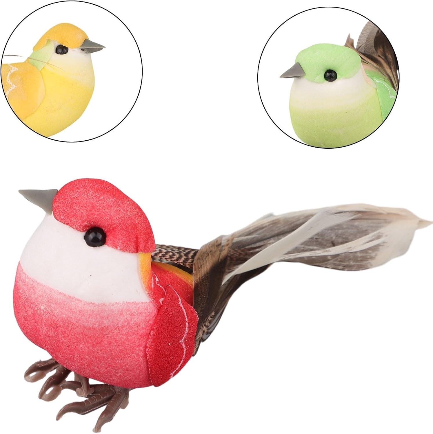 Design realistico: i mini ornamenti artificiali a forma di uccellino sono progettati per essere altamente realistici, rendendoli perfetti per collezionare e decorare. Questi ornamenti per uccelli possono essere utilizzati come compleanni o Natale per bambini o familiari, aggiungendo un tocco di bellezza naturale a qualsiasi spazio. Varietà di colori: il set include 6 uccelli artificiali in diversi colori, consentendo opzioni versatili e decorative. Materiale: realizzati in schiuma e piume finte, questi ornamenti sono leggeri ma robusti, per un uso duraturo. Dimensioni perfette: con una dimensione di circa 10 cm, questi ornamenti per uccelli sono compatti e possono adattarsi a varie impostazioni senza problemi.