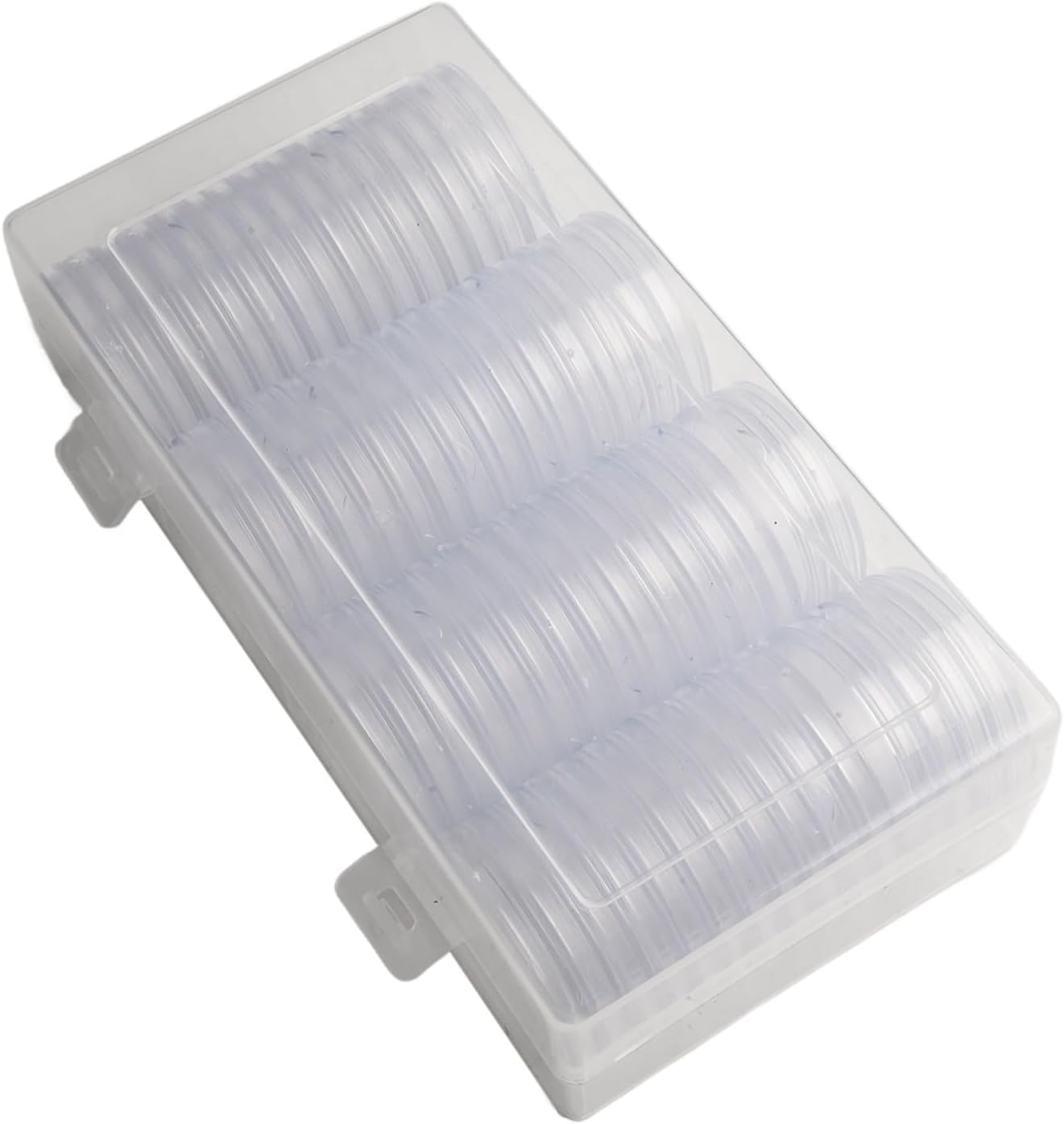 Materiale plastico ispessito: le nostre capsule sono realizzate in plastica ispessita, fornendo eccellenti proprietà di resistenza alla polvere e all'ossidazione. Adatto per monete di diametro: questi supporti sono progettati per contenere monete con un diametro non superiore a 41 mm, il che li rende perfetti per monete e argento. Design altamente trasparente e aderente: le capsule sono altamente trasparenti e si adattano saldamente, protezione sicura per collezioni preziose. 60 capsule con scatola organizer: questo set include 60 capsule insieme a una comoda scatola organizer. È una scelta per cerimonie, affari, mostre o come Natale per collezionisti.