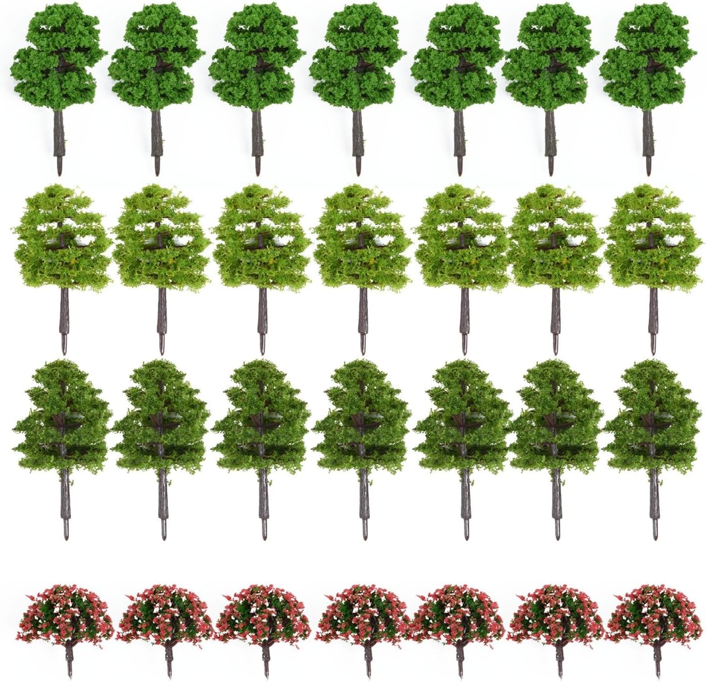 Migliora il paesaggio del tuo modello: aggiungi un tocco di verde al tuo modellino di treno o parco giardino con questa confezione di 70 alberi modellini. Include 20 alberi verdi, 20 alberi verde chiaro, 20 alberi verde scuro e 10 alberi di fiori di pesco. Varietà di scale: questi alberi modello sono disponibili in diverse scale, tra cui 1/75, 1/100, 1/200, 1/300 e 1/ogni scala viene fornita con 2 alberi che vanno da 3 cm a 8 cm di altezza, consentendo un paesaggio realistico e diversificato. Materiale di alta qualità: realizzati in plastica, questi alberi modello sono costruiti per durare. Sono progettati per resistere a varie condizioni atmosferiche e mantenere i loro colori vivaci, bellezza duratura per il tuo layout o giardino. Facile da usare: basta posizionare questi alberi modello nella posizione desiderata e guardare mentre trasformano istantaneamente l'aspetto del tuo layout. Con i loro dettagli realistici e l'aspetto realistico, aggiungeranno profondità e realismo a qualsiasi scena. Applicazione versatile: sia che tu stia creando un layout di modellino di treno, diorama, progetto architettonico o giardino in miniatura, questi alberi modello sono perfetti per aggiungere un tocco realistico. Sono adatti per HO, Z e scale, fornendo versatilità per diversi progetti.
