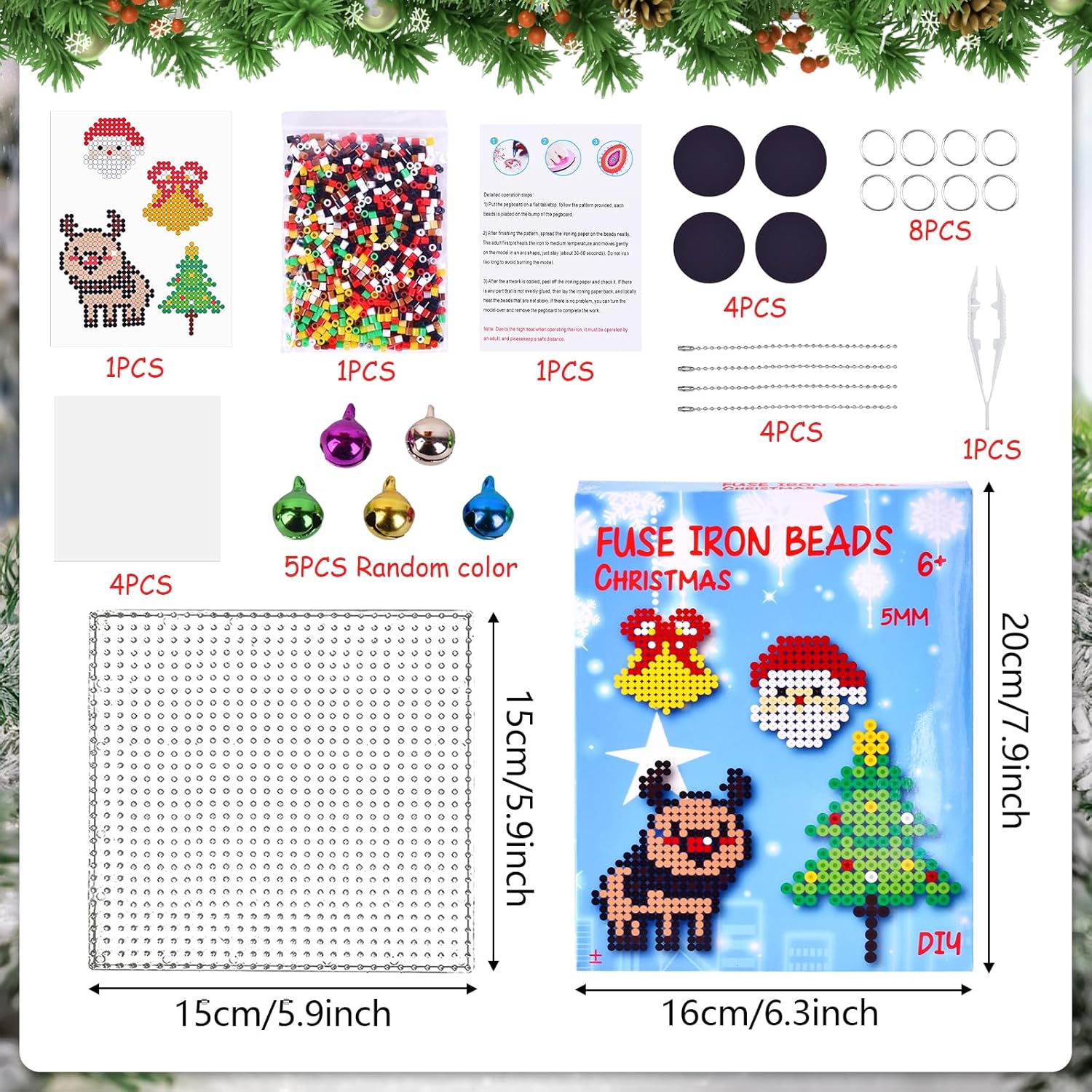 Set di perline da stirare per Natale: il set per bricolage contiene 700 perline da 5 mm, con scatola di imballaggio, istruzioni (lingua italiana non garantita), carta campione colore, grandi lastre di perline da stirare, clip, 4 carta da stirare, 5 campanelle, 4 catene, 4 magneti per frigorifero, 8 anelli di metallo, per un totale di 30 accessori Materiale di alta qualità: i modelli natalizi di perline da stirare sono realizzati in materiale PE, che non si rompe facilmente e presenta colori vivaci e durevoli. Il prodotto finito ha una buona elasticità dopo la giunzione e la stiratura e non si danneggia facilmente Giocattoli educativi: organizzando, stirando e fissando le perline da stirare, puoi allenare le tue abilità pratiche, il riconoscimento dei colori, la creatività e migliorare la tua concentrazione sul divertimento del cucito Facile da usare: siamo dotati di istruzioni. Disporre le perline da stirare in base alla carta colorata su un modello grande, coprire con carta da stiro e riscaldare con un ferro da stiro per dare forma alle perline. Anche i principianti possono farcela senza problemi Regalo di Natale: squisita confezione in cartone colorato, forme classiche come albero di Natale, alce, Babbo Natale, ecc., Adatto come regalo di Natale, regali di compleanno o souvenir per le vacanze. L'ornamento finito può essere utilizzato come decorazione per albero di Natale, magnete per frigorifero o accessorio per portachiavi