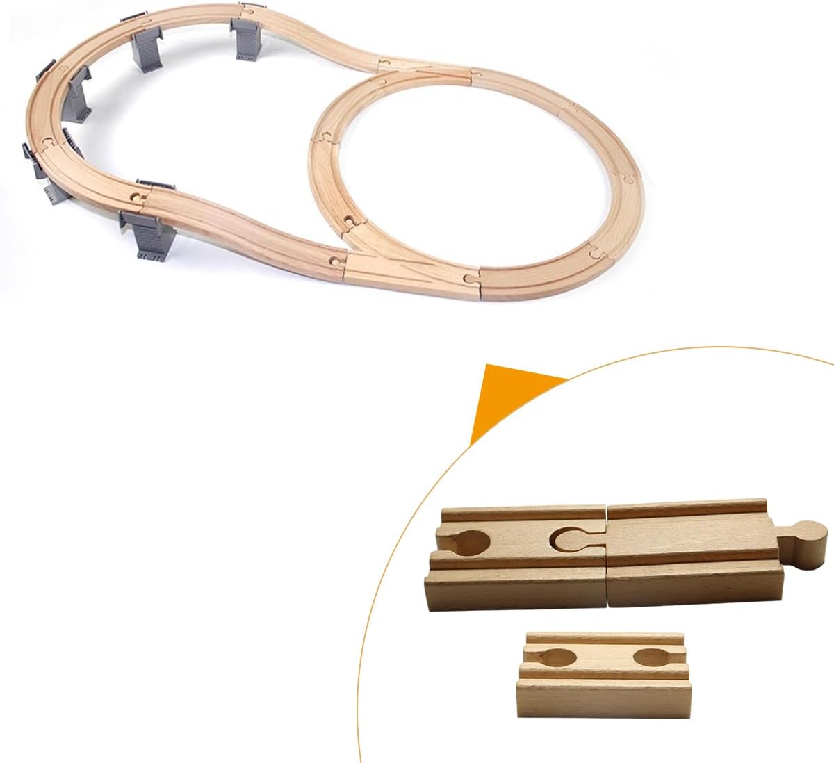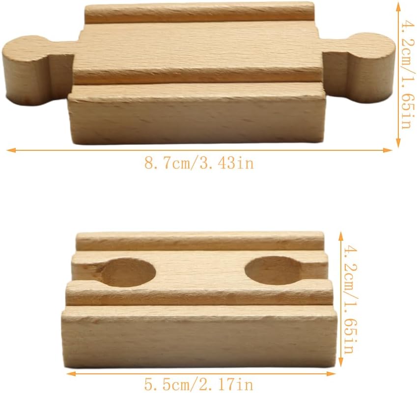 Questo set è composto da 8 pezzi di pista, tra cui 4 binari dritti concavi doppi da 10,7X4X1,2 cm, ciascuno del peso di 0,02 kg, e 4 binari convessi doppi da 5,5X4X1,2 cm, ciascuno del peso di 0,018 kg, perfetti per creare vari tipi di pista. I doppi design concavo e convesso consentono una facile connessione con altri sistemi di binari compatibili, consentendo di realizzare scene ferroviarie estese e complesse con flessibilità. Realizzati in robusto legno, questi binari sono resistenti e possono essere utilizzati per costruire scenari su pavimenti, tavoli o qualsiasi superficie piana, garantendo ore di gioco creativo. Che tu stia costruendo un semplice percorso rettilineo o una rete ferroviaria più elaborata, questi binari offrono la versatilità necessaria per dare vita alle tue idee ferroviarie. Grazie alle dimensioni compatte e al design leggero, queste piste sono facili da riporre e trasportare, così potrai portarle con te ovunque tu vada per continuare a divertirti costruendo piste.