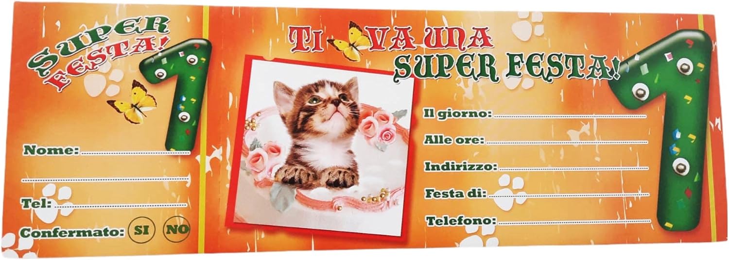 Contenuto: 8 biglietti d'invito + 8 buste Pratico: gli inviti sono moderni e decorati con molti dettagli. Sul retro troverai i campi prestampati da compilare. Biglietti: i biglietti d'invito sono molto robusti, hanno un formato A6 (10,50 cm x 14,80 cm), stampa fotografica di alta qualità da 300 g/m² e sono rivestiti con vernice UV per la finitura. Buste autoadesive: la busta misura 11,40 cm x 16,20 cm, stampa 80 g/m² ed è adesiva (con strappo). Occasione: i biglietti d'invito sono molto adatti per una festa di compleanno o di anniversario. Puoi utilizzare questi biglietti anche come inviti per un battesimo, un pigiama party, una festa a tema, un cinema o una festa in piscina. Hai bisogno di un altro numero? : da noi troverete anche biglietti e buste in set da 6, 10 o 12. Altri motivi: nel nostro negozio troverete anche molti altri motivi di invito, come lama, sirena, calcio, cinema, piscina, bowling. Made in Germany: i biglietti e le buste sono stati prodotti in una tipografia tedesca.
