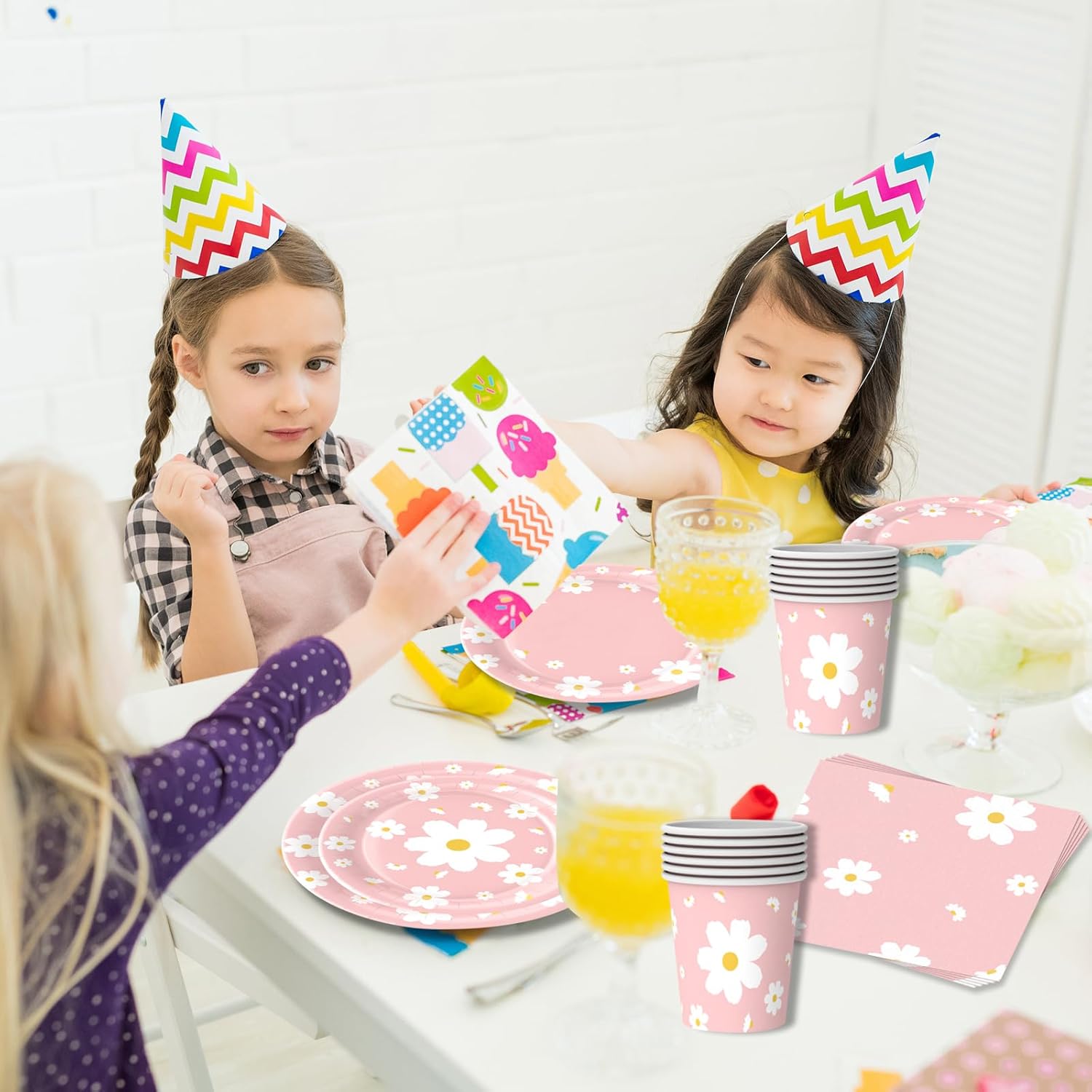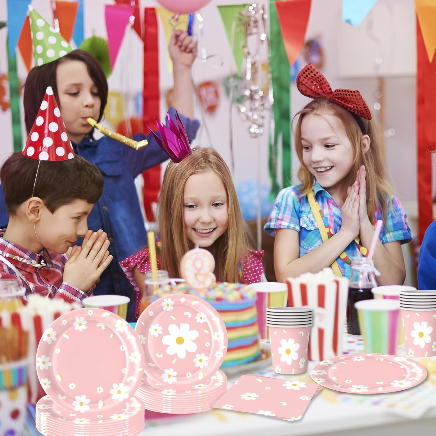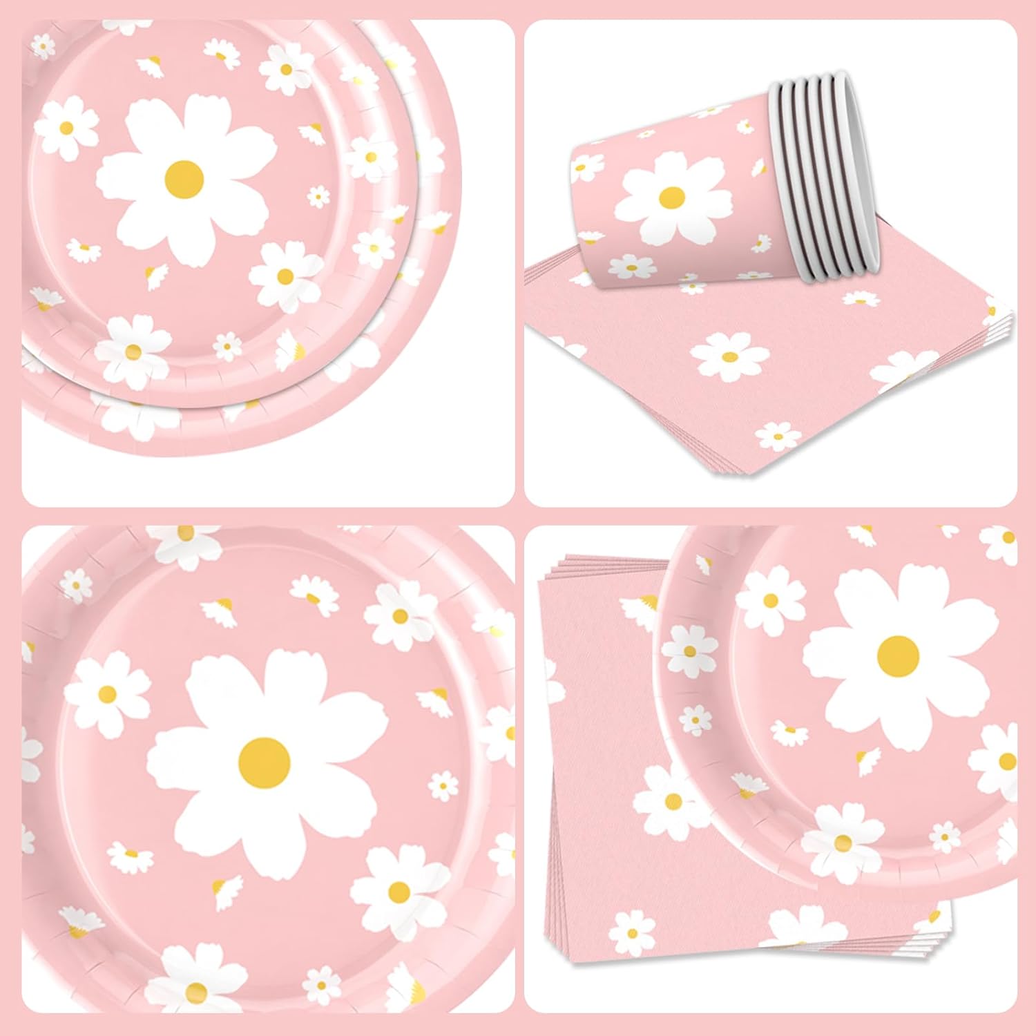 Set di stoviglie per feste con margherite: 80 pezzi di stoviglie per feste con margherite, 20 piatti piani con margherite da 23 cm, 20 piatti piani con margherite da 18 cm, 20 tovaglioli e 20 bicchieri di carta, adatti per 20 ospiti. Disegno del modello margherite: piatto di carta bohemian margherita con colore di sfondo rosa e motivo floreale margherita luminosa e colorata, creando una ricca atmosfera di festa di margherita bohemien, aggiungendo un ricco sapore romantico al vostro partito. Materiale di qualità: le nostre stoviglie da festa sono realizzate in carta di alta qualità, atossica, inodore, durevole. Perfetto per amici e feste per bambini. Realizzato in carta ecologica, sicura per la tua famiglia. Nota: si prega di non mettere piatti e bicchieri di carta nel forno a microonde. Risparmia tempo: dopo aver utilizzato il nostro set di piatti di carta usa e getta, puoi semplicemente gettarlo nella spazzatura per risparmiare tempo per la pulizia. Così avrete più tempo per festeggiare e godervi la festa con la famiglia e gli amici. Passiamo più tempo con la nostra famiglia o i nostri amici. Adatto per ogni occasione: questi set di stoviglie a tema sono perfetti per qualsiasi evento, che si tratti di casa, ristorante o festa all'aperto, miglioreranno la tua esperienza culinaria e possono abbinarsi perfettamente ad altre decorazioni di compleanno.