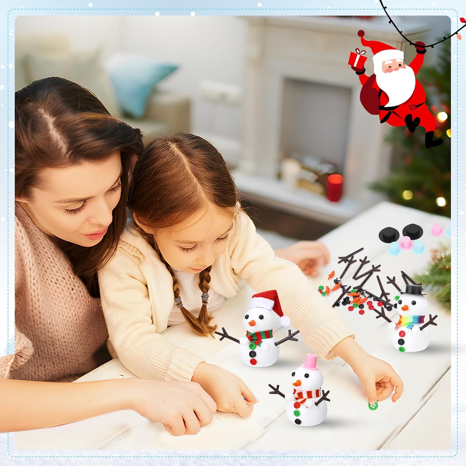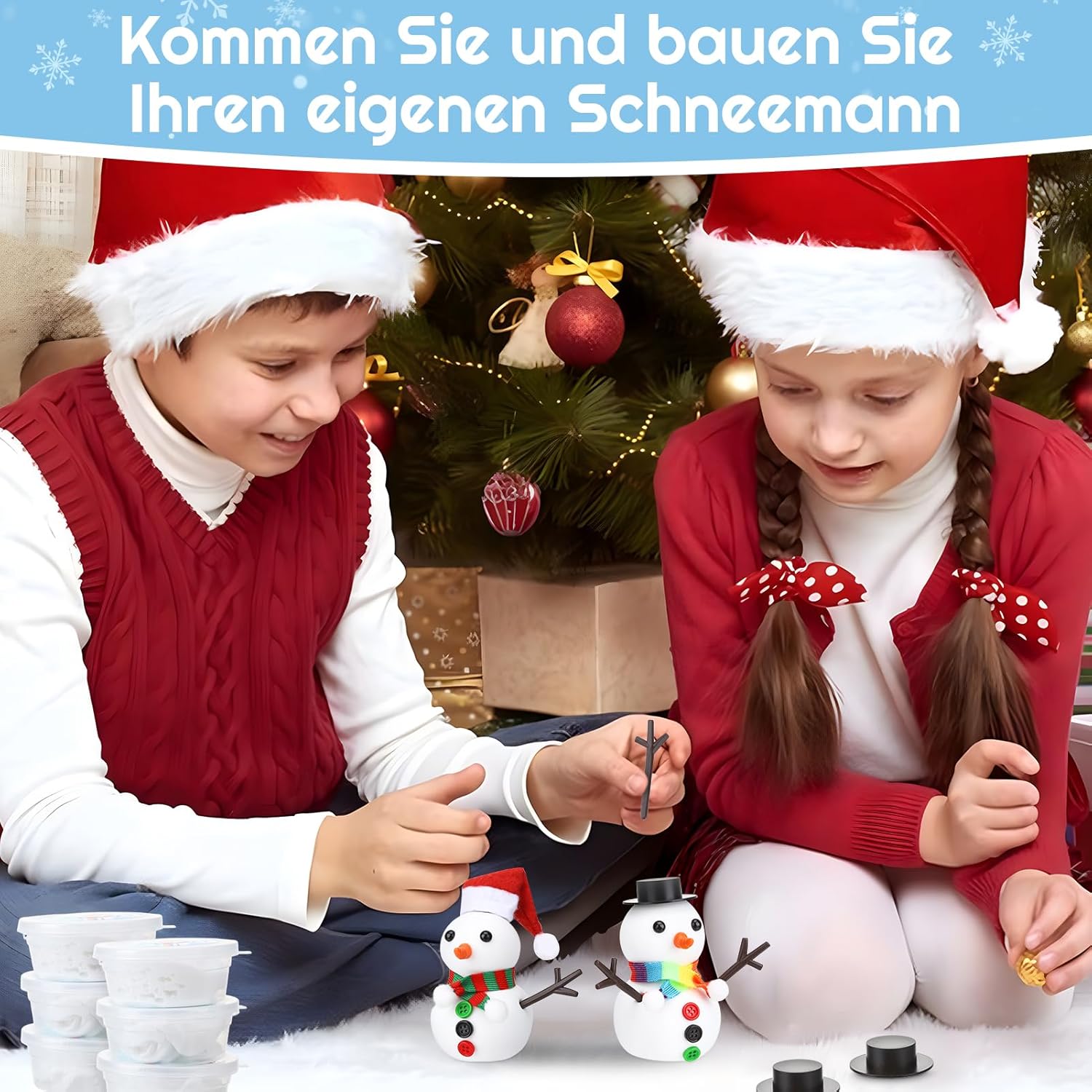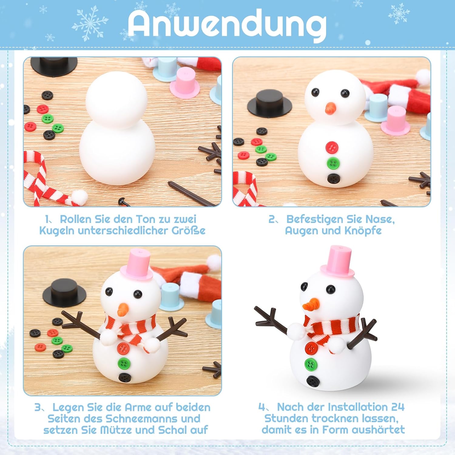Kit artigianale pupazzo di neve: il nostro set di pupazzo di neve per bambini include tutti i materiali per nove pupazzi di neve: nove pezzi di impasto bianco, nove cappelli colorati, tre sciarpe, 18 occhi, 18 rami, nasi di carota e 27 bottoni. Crea i tuoi pupazzi di neve secondo i tuoi desideri. Adatto per bambini e adulti Materiale morbido: la nostra plastilina per pupazzo di neve è morbida, ultraleggera, non lascia residui, non si attacca ed è sicura per adulti e bambini Artigianato semplice: l'artigianato di pupazzo di neve per bambini e adulti è facile da progettare. Basta modellare il pupazzo di neve in argilla bianca e poi decorarlo con cappelli, sciarpe, bottoni e altri accessori inclusi. Così si crea un simpatico pupazzo di neve [Versatile] Questo set di decorazioni pupazzo di neve è perfetto per creare decorazioni, artigianato, mini bambole, pupazzi di neve, ecc. Portate un'atmosfera suggestiva alla vostra festa e allo stesso tempo promuovete le abilità pratiche, l'immaginazione e la pazienza dei vostri bambini Regalo ideale: i nostri set fatti a mano sono ideali per riempire sacchetti per feste e sono adatti anche come regalo per diverse feste, compleanni e come piccolo pensiero per gli stivali di Babbo Natale. I genitori possono promuovere l'interazione genitore-figlio insieme ai loro figli.