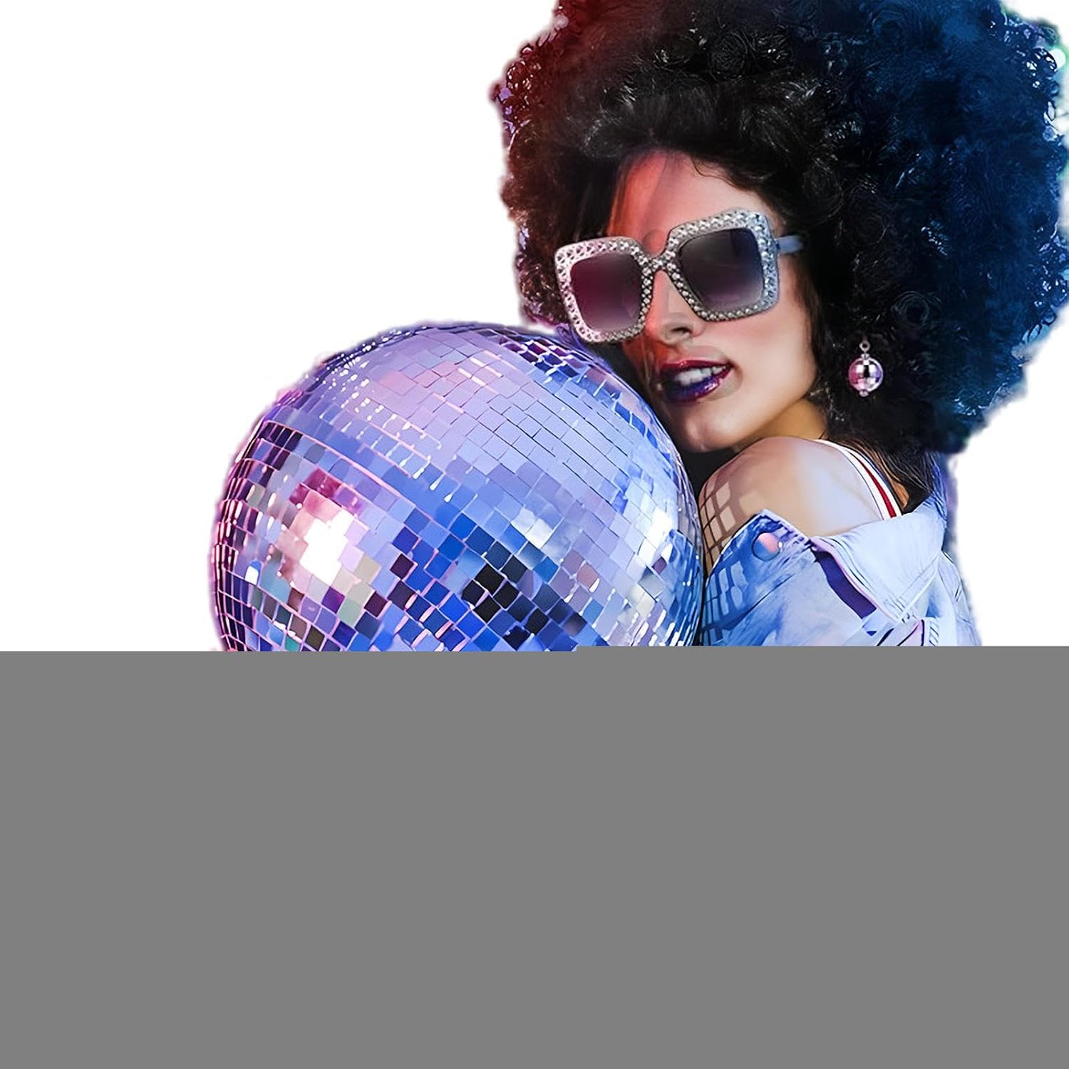 Preparati a tutta la notte con i nostri accessori da discoteca anni '70! La nostra collana da discoteca (1 pezzo) è l'aggiunta perfetta a qualsiasi outfit da discoteca. Crea i tuoi orecchini con la loro forte lucentezza e luce brillante. Questo squisito regalo stupirà sicuramente qualsiasi amico amante della discoteca. Specifiche tecniche: Nome: 1970 Donna Disco Accessori Set Materiale: fibra sintetica + polipropilene. Dimensioni del prodotto: come da immagine. Peso: circa 230 g. Contenuto della confezione: 1 x capelli corti ricci anni '70. 1 paio di orecchini a sfera da discotec 1 collana con palla da discoteca. 1 braccialetto con palla da discoteca. Occhiali da sole con montatura x1 Nota: 1. A causa delle diverse impostazioni degli schermi e degli effetti della luce, il colore reale del prodotto potrebbe essere leggermente diverso da quello mostrato nella foto. Grazie! 2. A causa della misurazione manuale, è possibile un margine di errore di 1-3 cm.