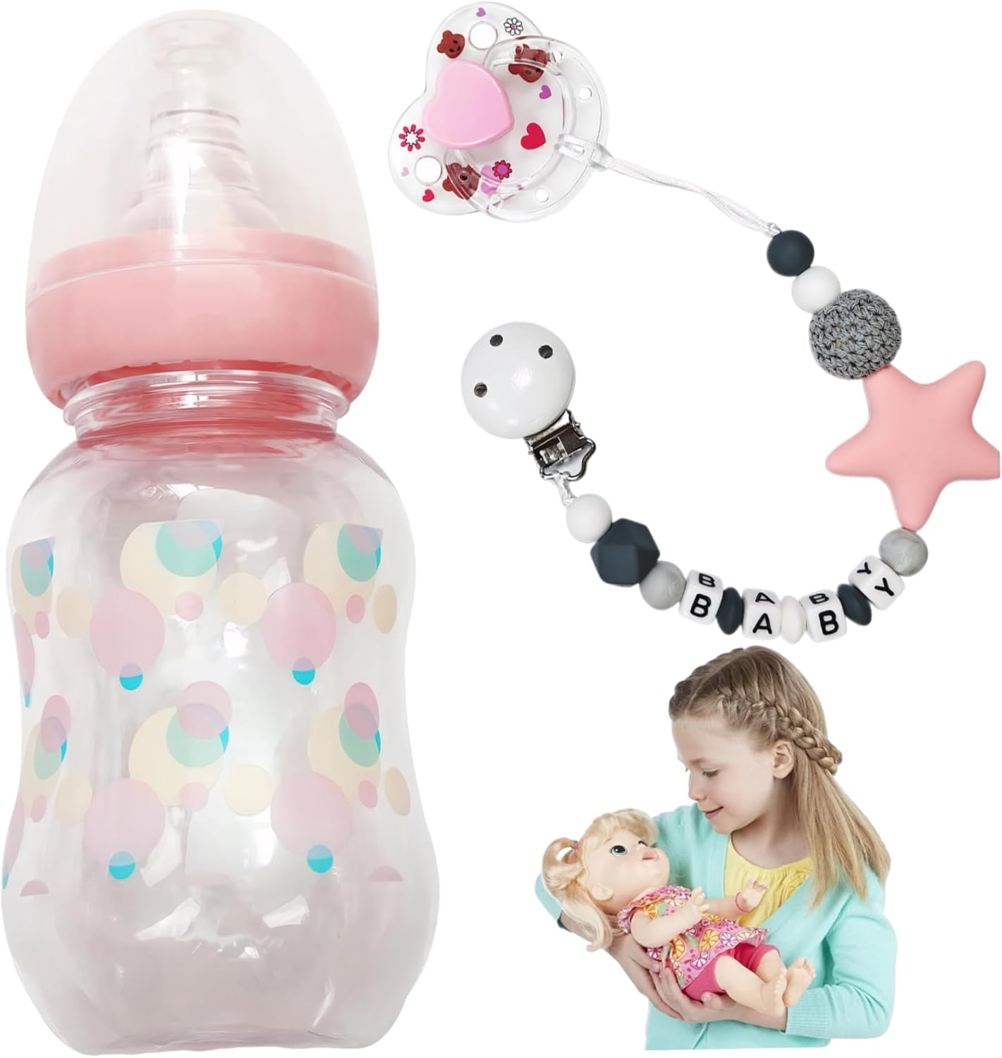 Set di alimentazione completa: il nostro set di accessori per bambole per bambini include tutto ciò di cui il bambino ha bisogno per coinvolgere il gioco delle bambole, con bottiglie di bambole per bambini, un ciuccio magnetico e una catena del ciuccio..Questo set completo consente scenari di alimentazione realistici, arricchendo l'esperienza di gioco di tuo figlio. Incoraggia il gioco fantasioso: innesca la creatività e l'immaginazione di tuo figlio con questo delizioso set di accessori..Fingere di prendersi cura di una bambola per bambini aiuta i bambini a sviluppare abilità di narrazione e incoraggia il gioco di ruolo, permettendo loro di esplorare le interazioni sociali in modo divertente e nutriente. Migliora le capacità motorie: progettate per promuovere lo sviluppo motorio fine, questi accessori aiutano i bambini a praticare il coordinamento e la destrezza..Mentre manipolano le bottiglie e i ciucci, i bambini perfezionano i loro movimenti delle mani mentre si impegnano in gioco che imita le situazioni della vita reale. Design funzionale e realistico: i nostri ciucci per bambole per bambini sono dotati di un design pratico che migliora il realismo del gioco..La caratteristica magnetica si attacca saldamente alla bambola, rendendo il tempo di alimentazione più coinvolgente..Inoltre, sono facili da pulire e mantenere, garantendo una durata a lungo termine e l'usabilità. Perfetto per i giovani caregiver: questo set di accessori per bambole per bambini è eccellente per compleanni, vacanze o qualsiasi occasione speciale!.Ideale per i bambini piccoli che amano nutrire le loro bambole, incoraggia la comprensione e la responsabilità fornendo al contempo innumerevoli ore di divertimento.