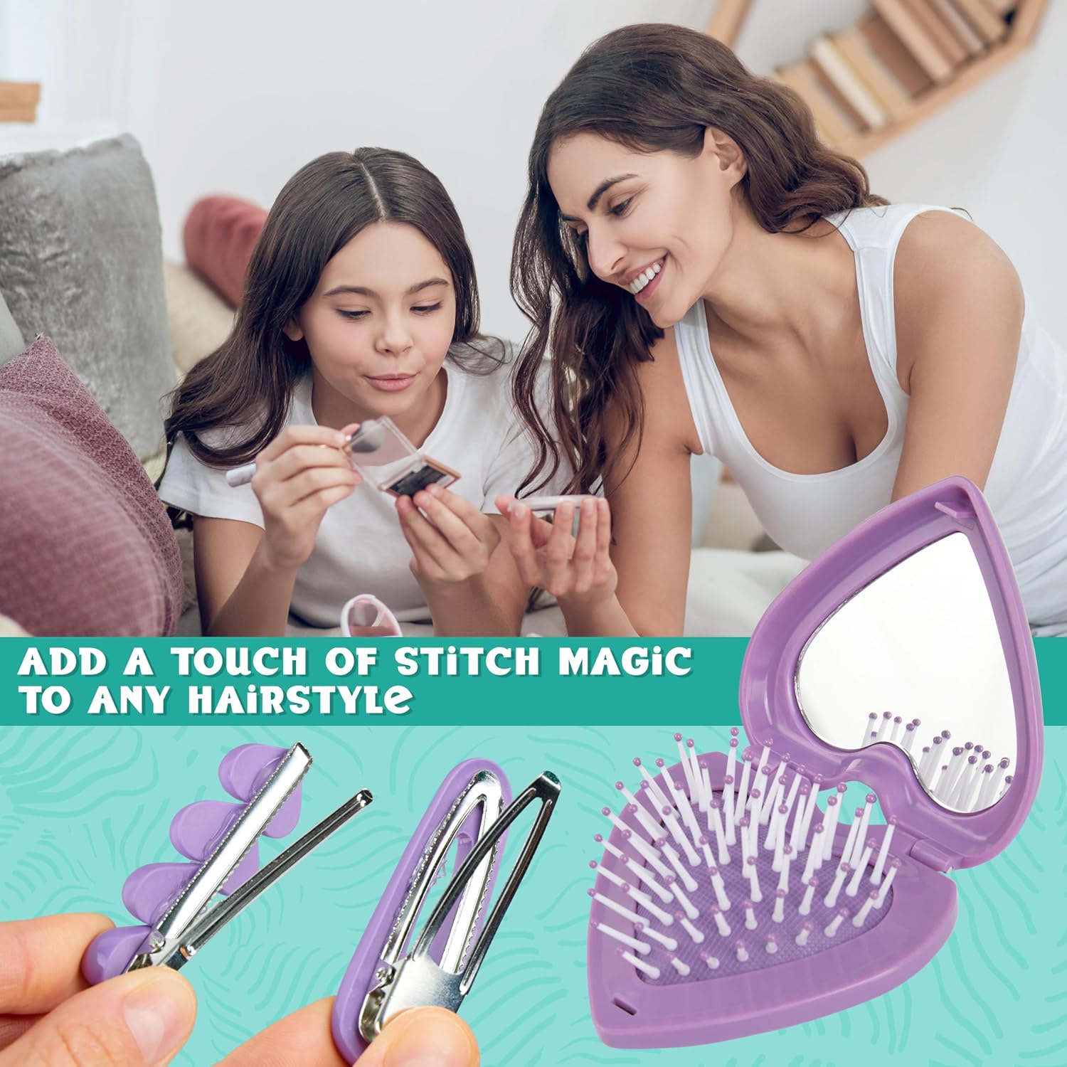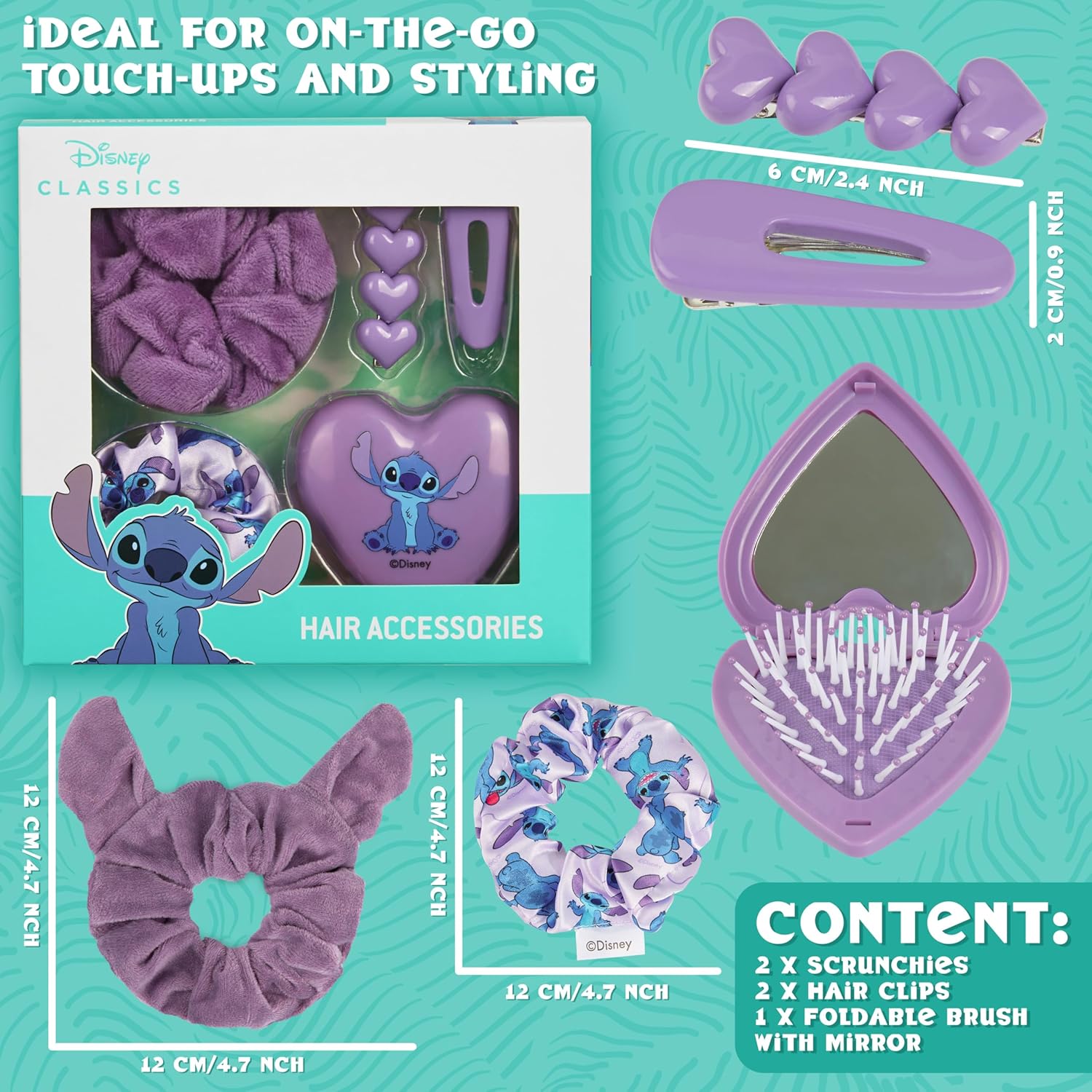 Accessori per capelli: questo set include 2 elastici per capelli e 2 graziosi fermagli per capelli nel popolare design Stitch. Guarda le immagini per maggiori dettagli Pratica spazzola pieghevole: è inclusa anche una piccola mini spazzola per capelli pieghevole con specchio. Compatto e pratico, ideale per uno styling veloce e in movimento. Stile versatile: perfetto da indossare tutti i giorni o per occasioni speciali. Questi oggetti Stitch aggiungono un tocco magico a qualsiasi outfit e diventeranno presto i tuoi preferiti Merchandise ufficiale Disney Stitch - Merchandise Stitch con licenza ufficiale con un fantastico design Stitch. Il set comprende 2 elastici per capelli, 2 fermagli per capelli e una spazzola per capelli da viaggio con punto a specchio. Regali per ragazze e adolescenti: questi accessori per capelli uniscono divertimento e funzionalità. Perfetto per compleanni, Natale o semplicemente perché