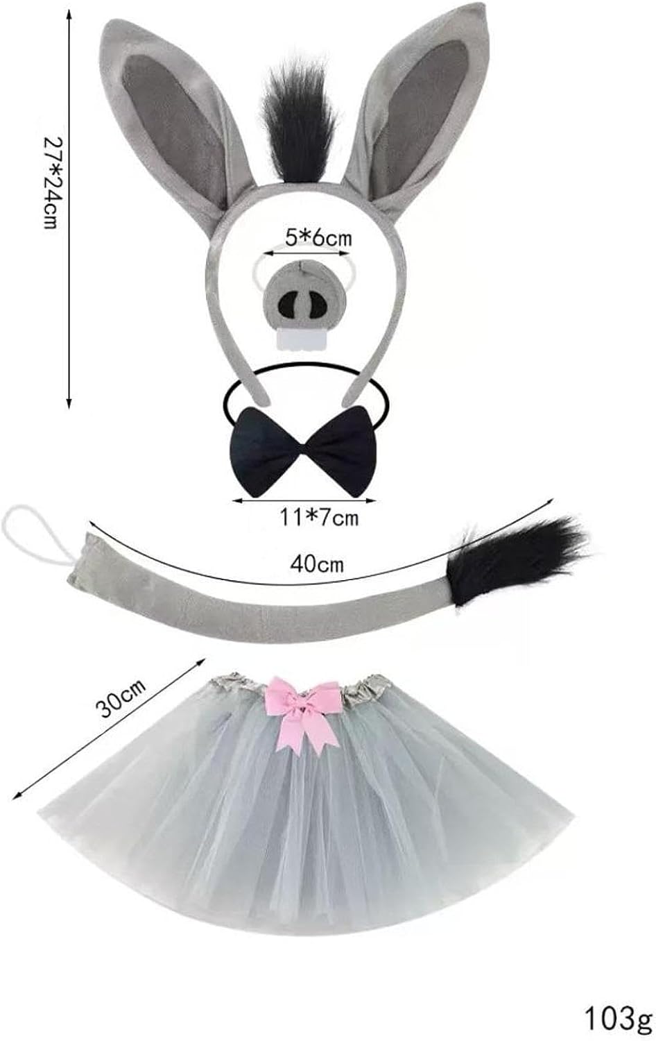 【Materiale di alta qualità】Il set di accessori per costumi da asino è realizzato in tessuto di qualità, robusto, leggero e confortevole al tatto 【Costume da asino】Ci sono cerchietti con orecchie d'asino, papillon sul naso, coda, set completo, con pregevole fattura, accessorio carino, divertente e 【Ampie occasioni】Il set di costumi da animale è ampiamente adatto per cosplay, carnevali, spettacoli teatrali, oggetti di scena per foto, spettacoli, feste a tema, ecc. 【Dimensioni standard】La lunghezza della coda è di circa 40 cm/15,75 pollici, il naso 5 cm x 6 cm/1,97 pollici x 2,36 pollici, il papillon 11 cm x 7 cm/4,33 pollici x 2,76 pollici, la fascia per le orecchie 24 cm x 27 cm/9,45 pollici x 10,63 pollici 【Regalo】Questi oggetti di scena per animali di Halloween sono anche un'ottima scelta regalo per famiglie e amici per compleanni, feste, festività, ecc.