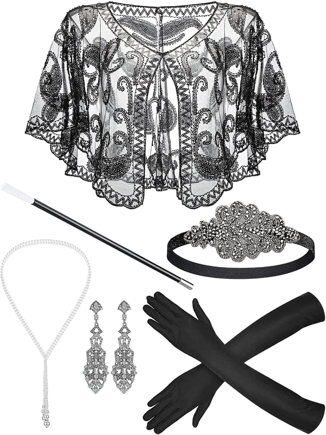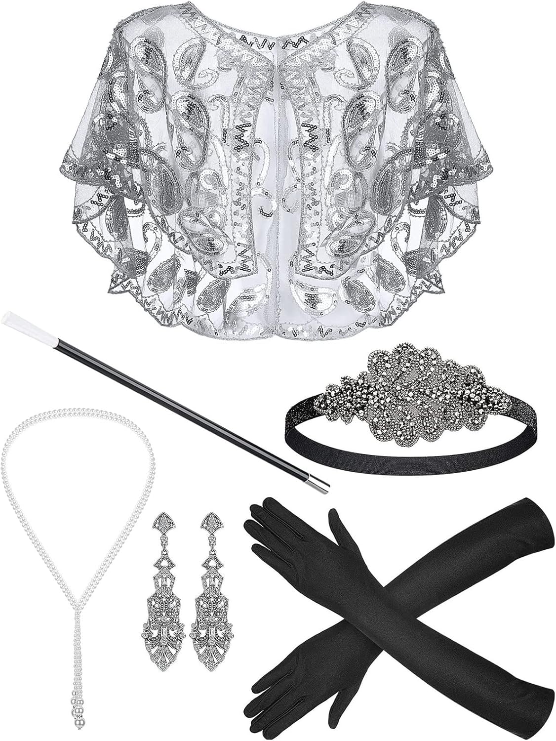 Flapper Vintage anni '20 Flapper - Set di accessori per costume da donna, con piume, fascia per capelli, orecchini, per cocktail party anni '20 Caratteristiche: Set di accessori per capelli vintage anni '20: gli accessori per costume da donna Flapper sono dotati di sciarpa, guanti, fascia, collana, auricolari e portasigarette, design vintage e intero set mostrano meglio la personalità e mostrano la tua estetica unica, adatti per diversi abiti Cos Play, abito da cocktail da festa. Flapper elegante fascia per capelli da donna: fascia flapper anni '20 con eleganti strass, piume vivaci accanto alla fascia elastica, accessorio perfetto per cocktail party, discoteca e carnivori, adatto per diverse occasioni. Orecchini pendenti – Orecchini vintage progettati con eleganti ciondoli lunghi, adatti a tutti i tipi di strass lucidi o perle artificiali abbinate, aggiungono emozioni estetiche. Il set di costume Flapper anni '20 utilizza piume, metallo e materiale in tessuto, resistenza all'usura, traspirante e delicato sulla pelle con una perfetta esperienza di utilizzo. Ampia applicazione: il nostro set di accessori per costume Flapper anni '20 sono accessori alla moda e vintage per le vostre diverse occasioni, adatti per feste, balli di fine anno, serate, danza, eventi, feste Great Art Deco, feste Flapper, matrimoni, feste di trucco e anniversari. Specifiche: Dimensioni del prodotto: fascia con cappuccio 56-58 cm. Piuma, metallo, tessuto Opzione di stile: 7 Stile opzionale Come mostrato Immagini, scegli la tua preferenza La confezione include: 1 set di accessori per costume da donna anni '20. Nota: Si prega di considerare un margine di errore di 1-2 cm a causa della misurazione manuale. A causa della differenza tra i diversi monitor, l'immagine potrebbe