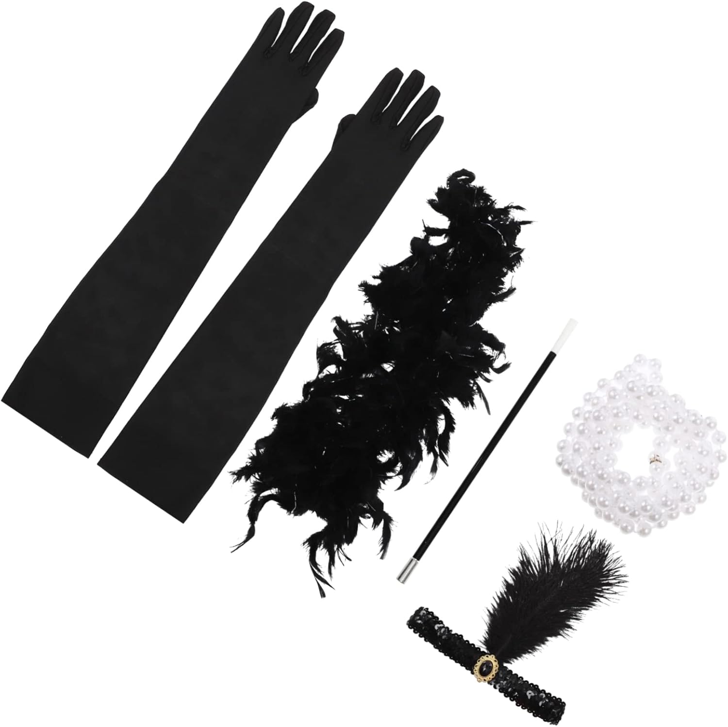 Descrizione prodotto Trasportati indietro ai ruggenti anni '20 con questo elegante set di accessori flapper, perfetto per eventi in maschera a tema Gatsby. Trasuda glamour vintage con una classica collana di perle con brillanti perle finte infilate insieme. Completa il tuo look con un elegante cerchietto con paillettes ornato con un sorprendente dettaglio di piume, catturando l'essenza della moda di quell'epoca. Completa l'insieme con un elegante portasigarette progettato per aiutarti a ottenere un look autentico ispirato al flapper. Questo set offre un tocco di eleganza senza tempo, permettendoti di abbracciare lo spirito dell'era jazz con stile. Si prega di notare che le misure e i materiali possono variare leggermente. Avviso di sicurezza Tenere lontano da fiamme nude