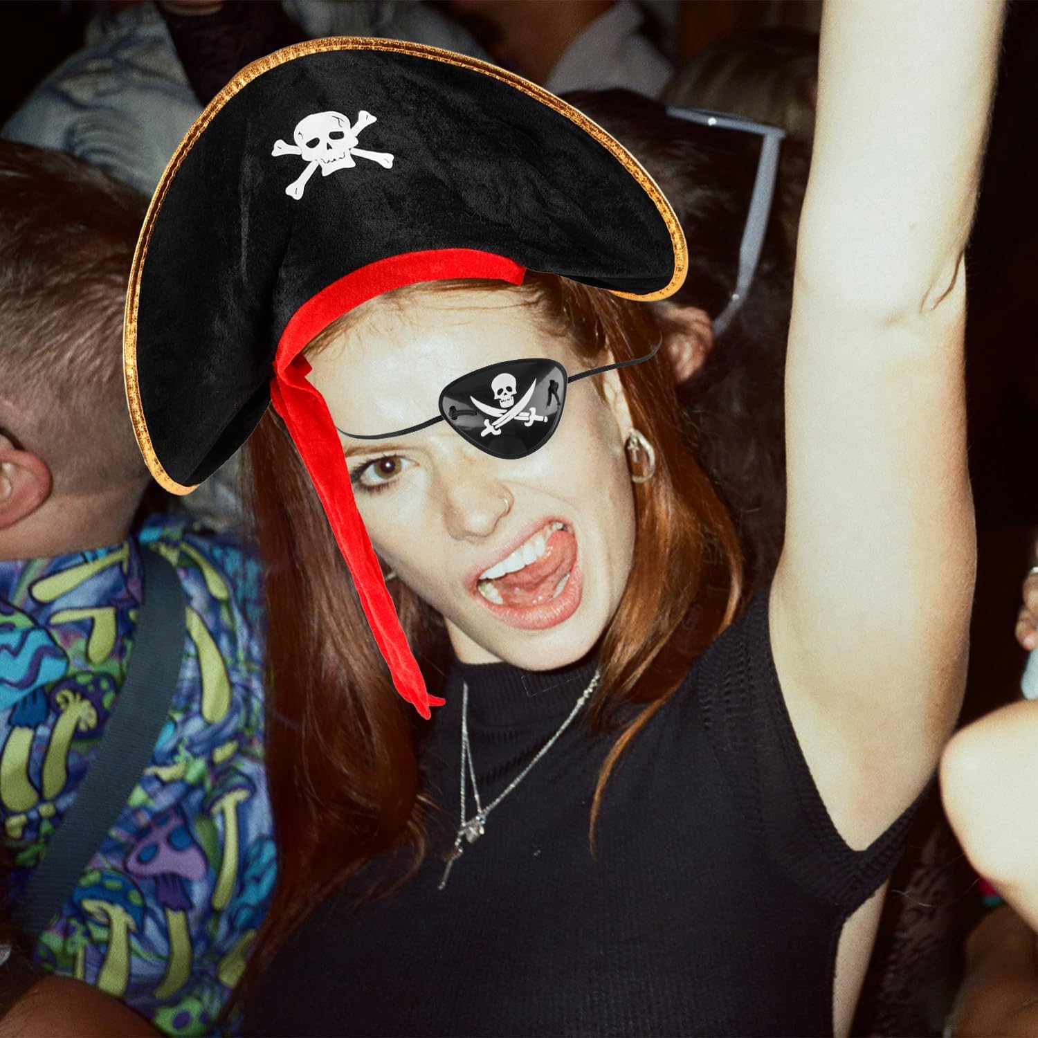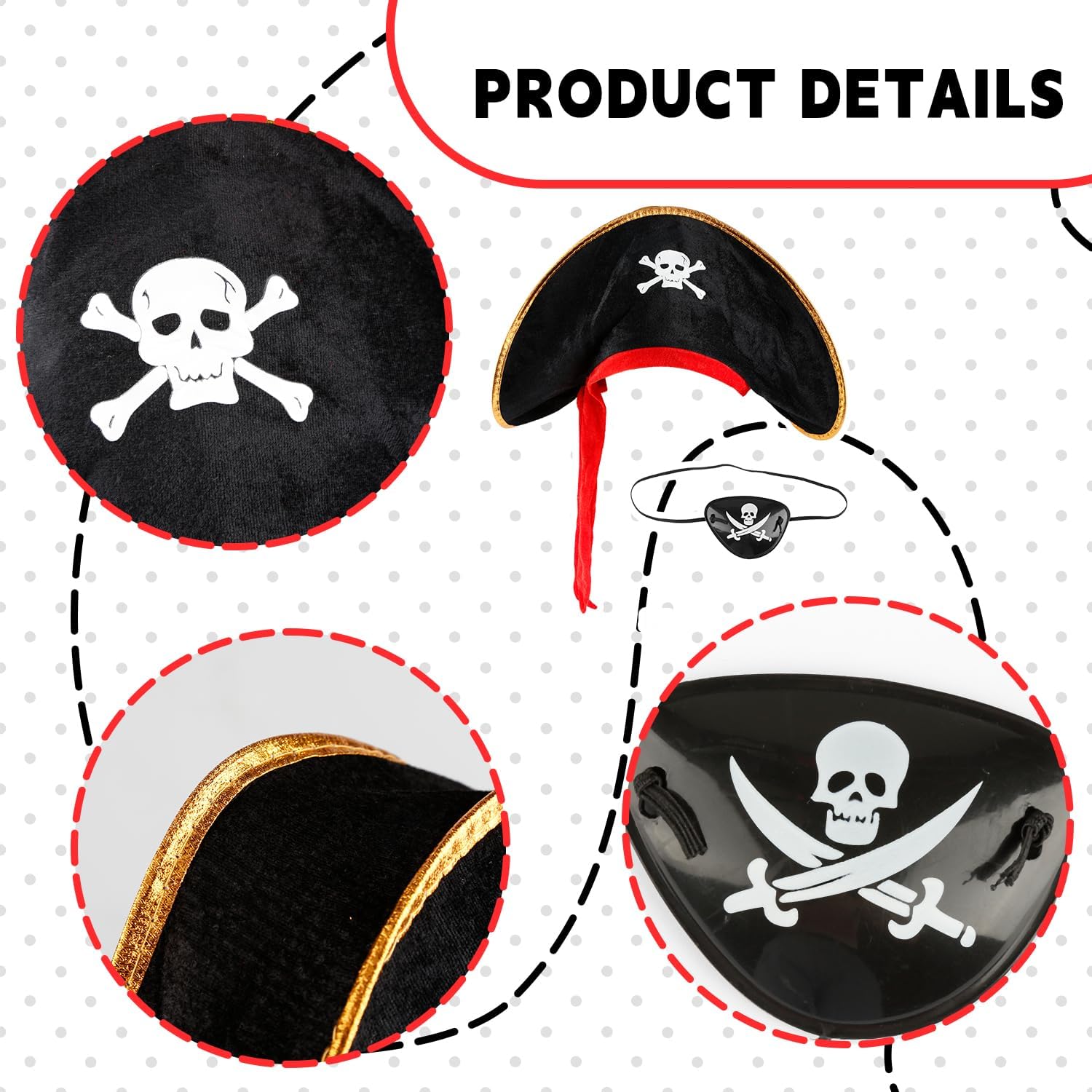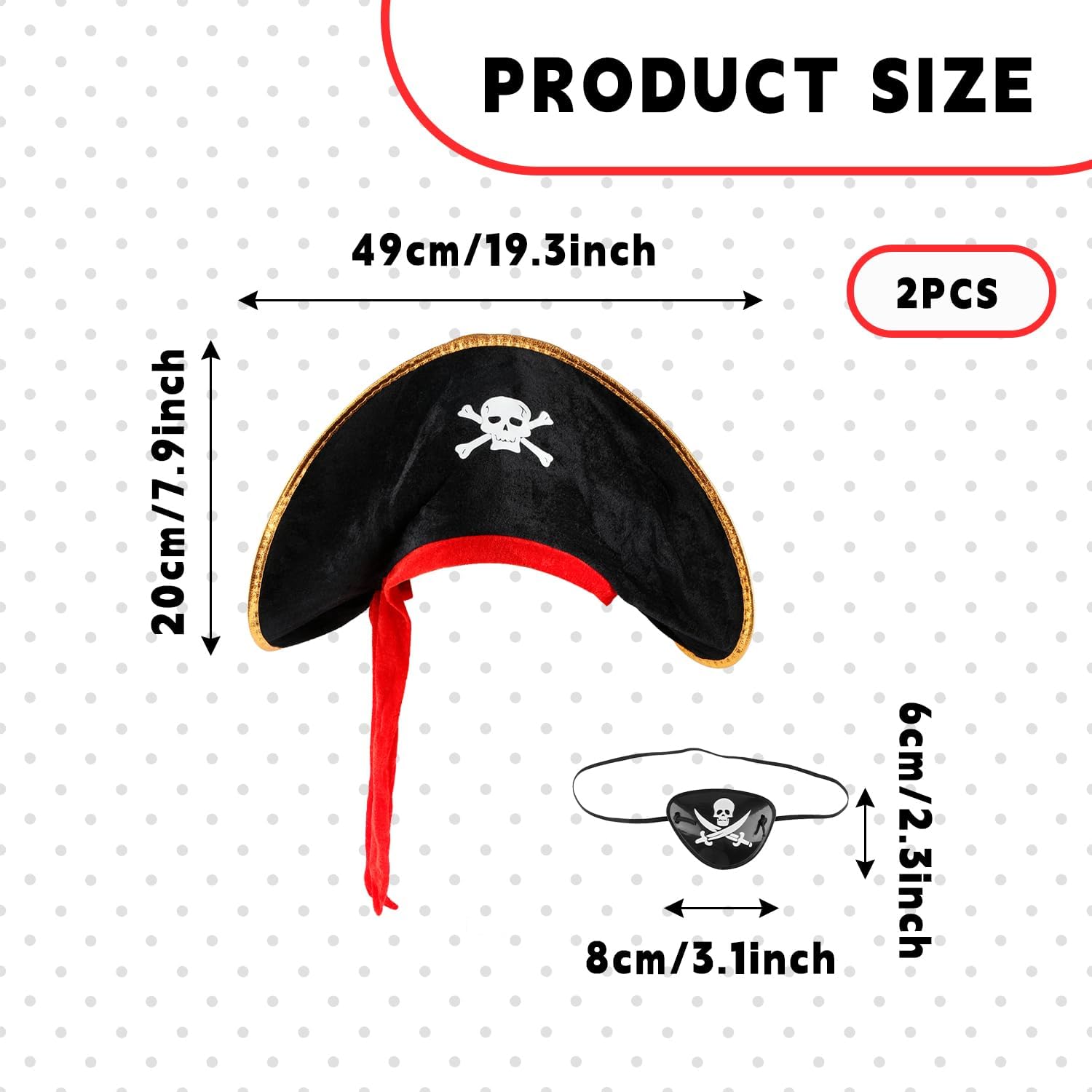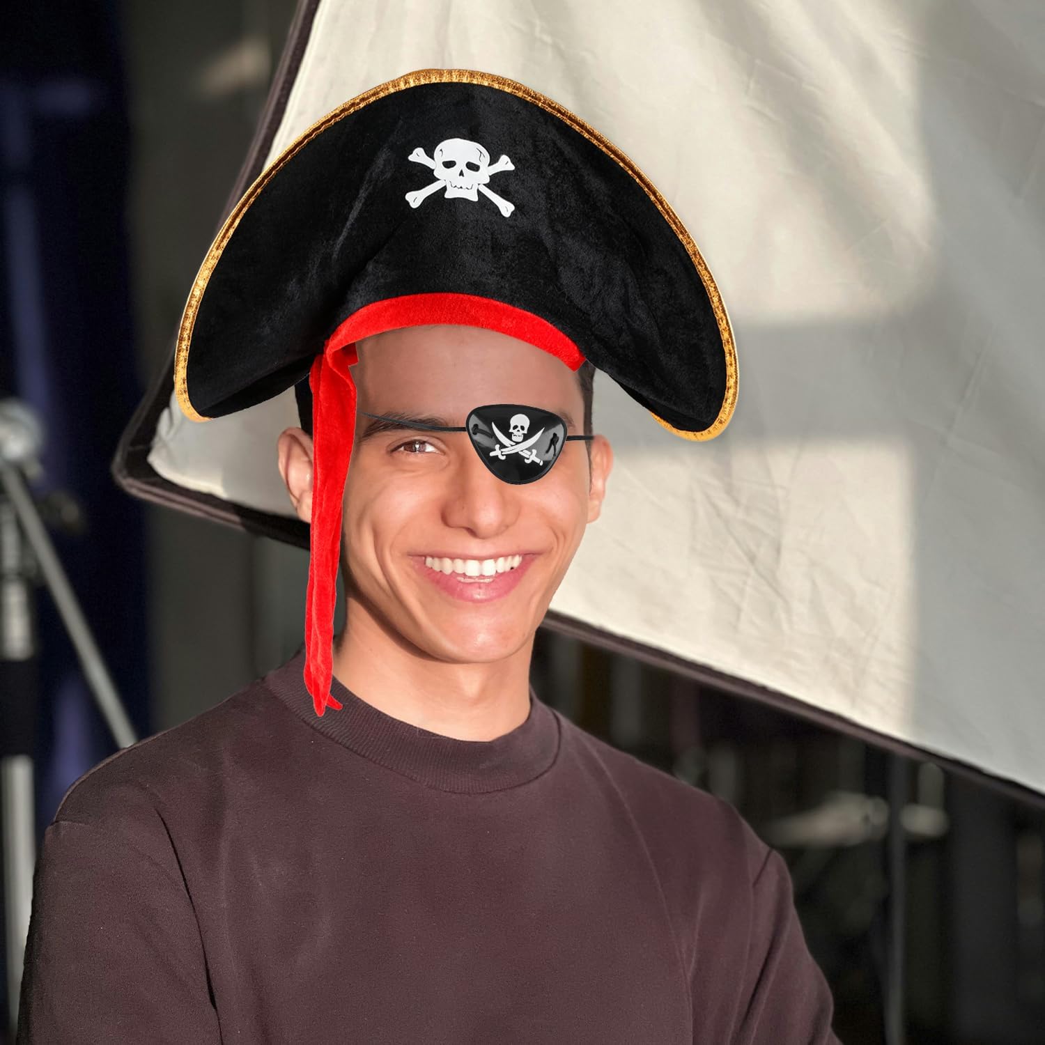 Bojueshaw Set di accessori per costume da pirata, cappello da pirata classico e benda sull'occhio regolabile per bambini e adulti, Halloween, feste in maschera e a tema