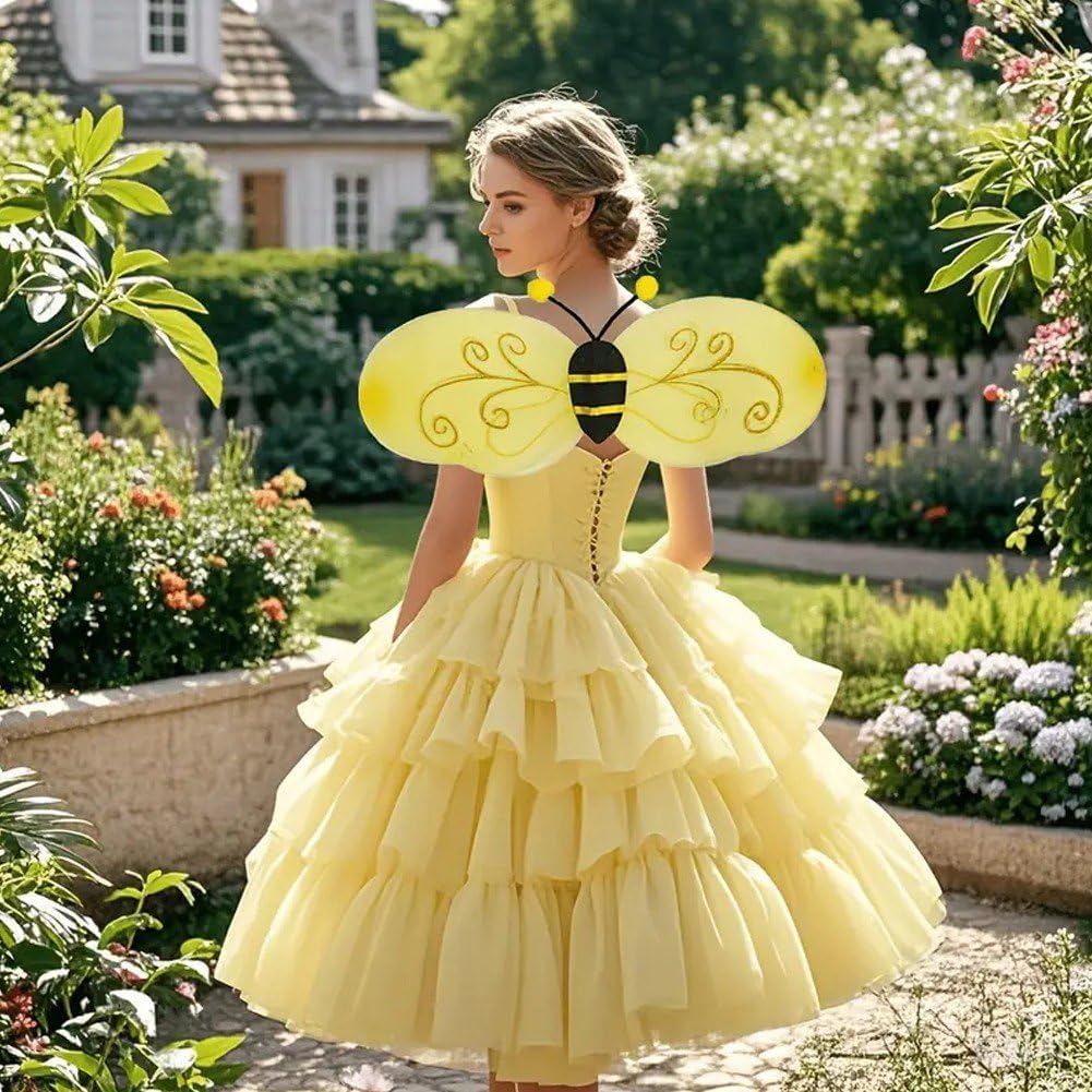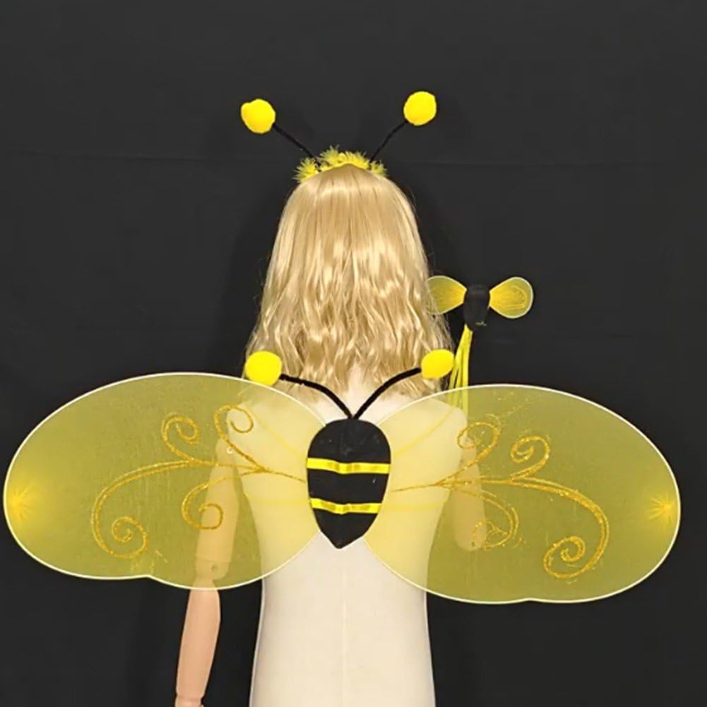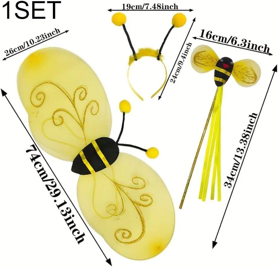 Scelte multiple: con diverse opzioni di outfit disponibili, come ali, ali con fascia e un set completo con bacchetta magica, puoi scegliere quello più adatto alle tue esigenze. Leggero e confortevole: realizzato in tessuto morbido e traspirante, questo costume garantisce un comfort duraturo. Il suo design leggero permette bambini di muoversi liberamente, ballare e giocare durante festa. Facile indossare e regolare: questo costume è facile indossare e togliere, è dotato di spalline elastiche e di una fascia flessibile per testa, che lo rendono comodo e adatto alla maggior parte dei bambini. Grazioso costume : questo adorabile costume trasforma all'istante i bambini in allegre piccole . Le ali gialle brillanti e divertente fascia con antenne attireranno sicuramente l'attenzione a qualsiasi festa o evento. Adatto a molteplici occasioni: perfetto per Halloween, recite scolastiche, feste a tema, festival o servizi fotografici, questo costume aggiunge fascino e gioia a qualsiasi occasione, stimolando contempo l'immaginazione dei bambini.