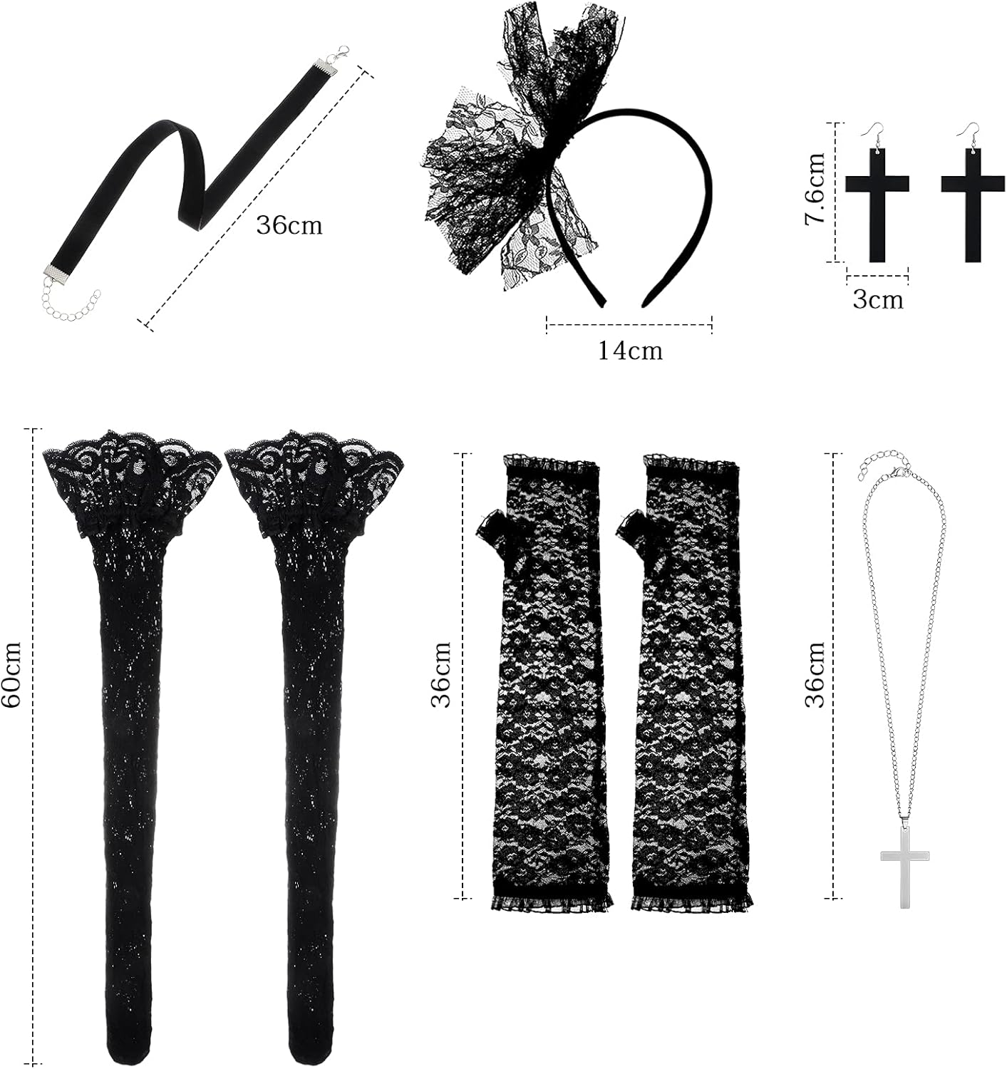 Caratteristiche: Materiali di qualità: la fascia in pizzo è ricoperta in tessuto di pizzo, i guanti e le calze sono realizzati in nylon con buona elasticità, gli orecchini sono realizzati in plastica di qualità, la collana pendente è in acciaio inossidabile, che non arrugginisce, e i colletti di flanella sono morbidi, non irritano la pelle. Set facile da abbinare: forniture per feste anni '80 tra cui 1 fascia per capelli in pizzo, 1 paio di guanti in pizzo, 1 paio di calze autoreggenti in pizzo, 1 paio di orecchini, 1 collana con croce, 1 collana con colletto in flanella. Specifiche: Colore: nero Quantità: 6 pezzi Materiale: tessuto di pizzo, nylon, plastica di qualità, acciaio inossidabile, flanella La confezione include: 1 x fascia in pizzo 1 paio di guanti in pizzo 1 paio di calze autoreggenti in pizzo 1 paio di orecchini 1 x collana con pendente 1 x girocollo in flanella Note: Misurazione manuale, si prega di consentire lievi errori di dimensione. I colori possono presentare una leggera differenza a causa dei diversi display.