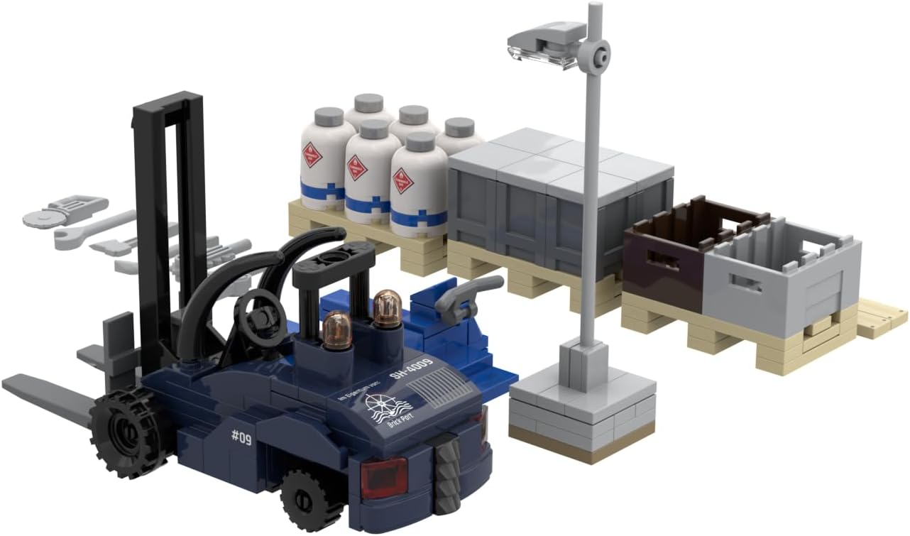 SET COMPLETO: numerosi accessori per porte con 233 morsettiere, istruzioni stampate e scatola completamente stampata. Compatibile con tutti i produttori comuni. CARRELLO ELEVATORE: Carrello elevatore completamente mobile per l'autentica logistica portuale e il trasporto di merci. MERCI: una varietà di accessori come pallet, bombole di gas, portautensili e scatole di legno per scene portuali realistiche. QUALITÀ: tutti i dettagli sono stampati con un'alta qualità senza l'uso di adesivi. SPECIFICHE: Adatto dai 12 anni in su, livello di difficoltà facile, ideale per integrare magazzini e strutture industriali.