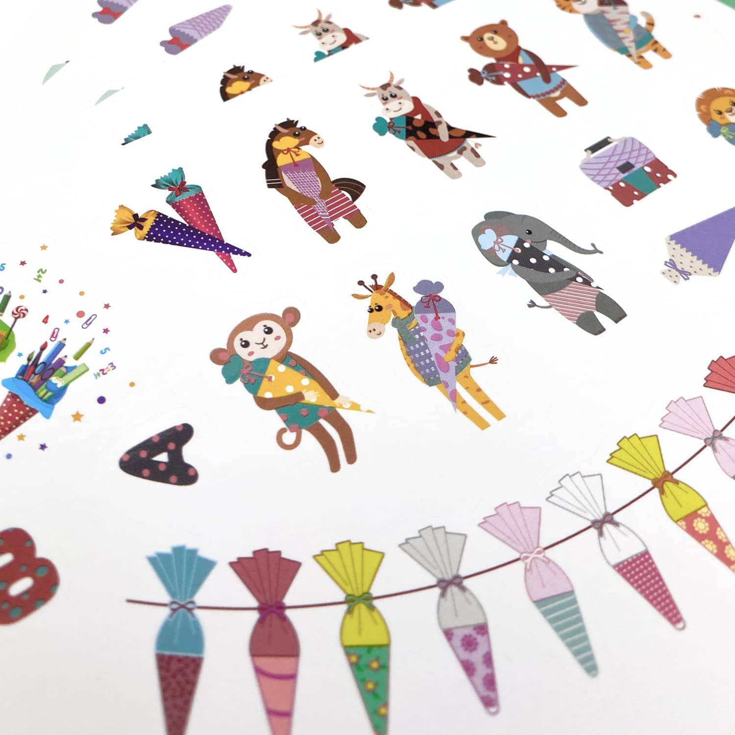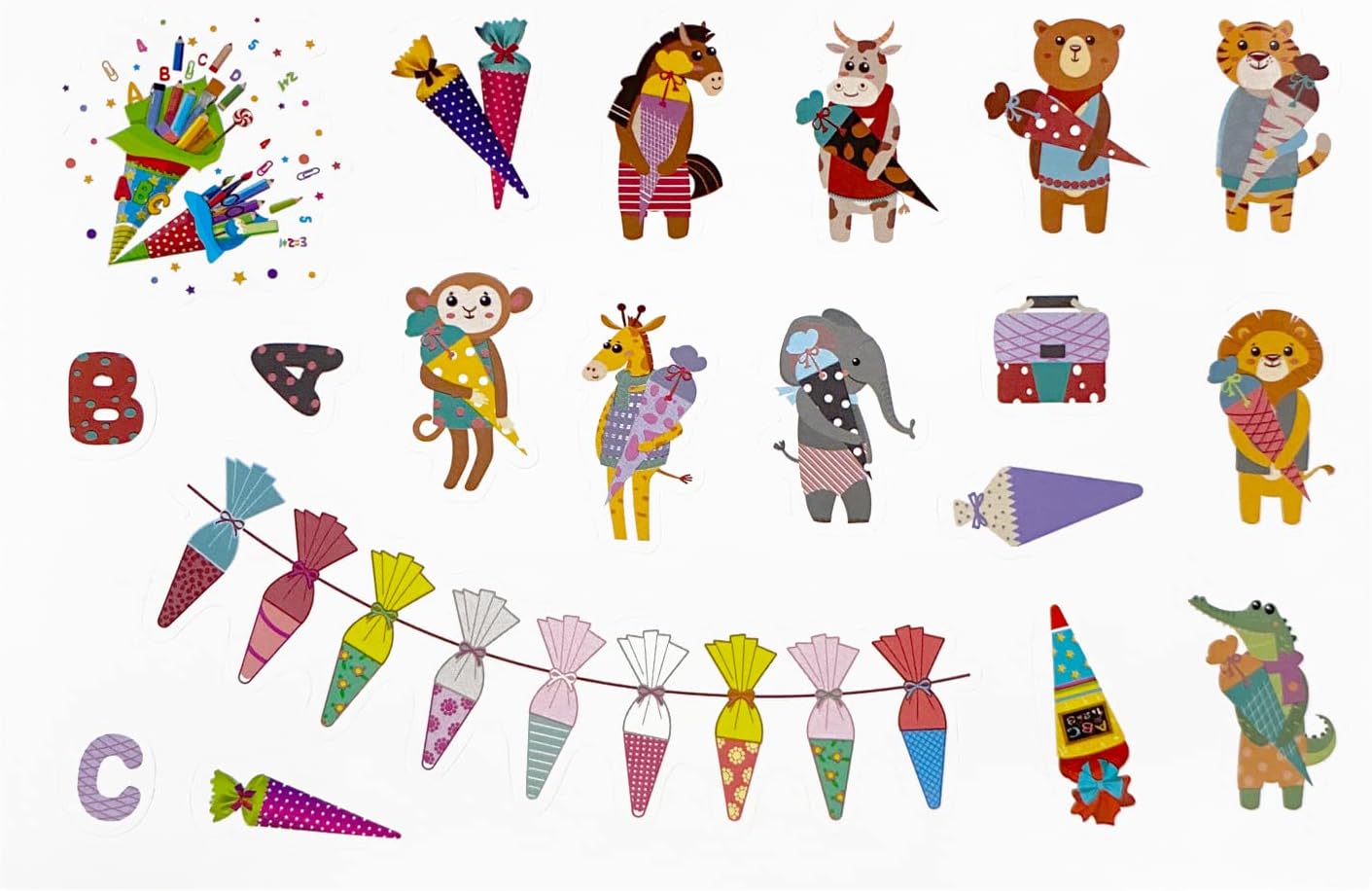 | Weitere Spezifikationen | [MERKMALE_MÖGLICH: Tiere mit Zuckertüten, pädagogische Motive] |
