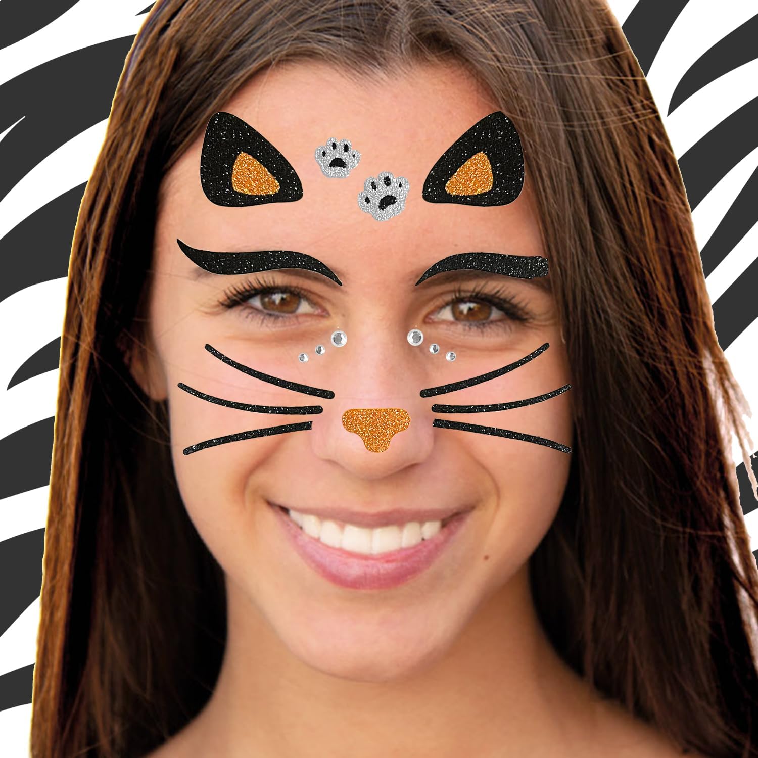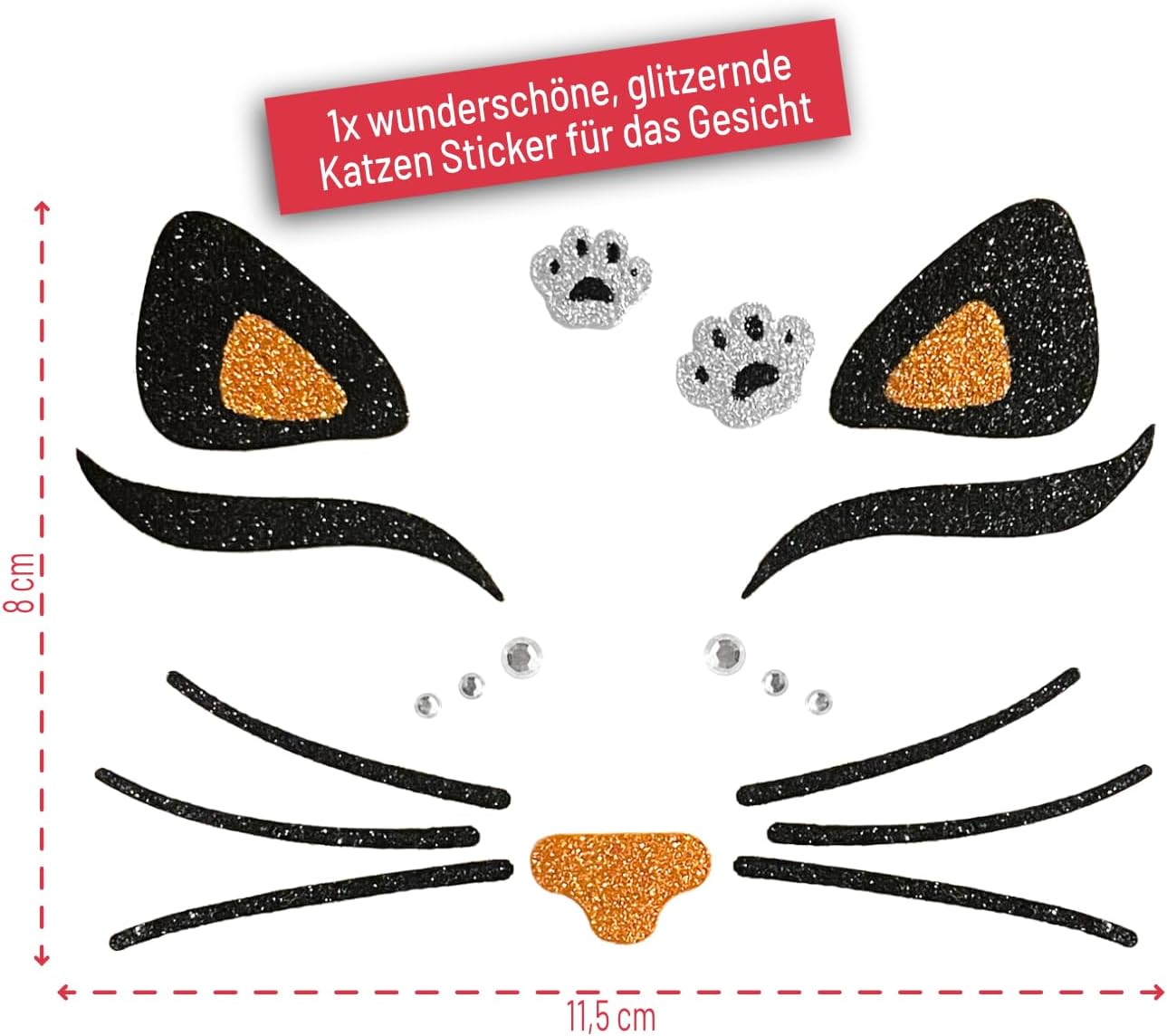 Quantità: include un set di adesivi scintillanti con il volto di un gatto, perfetto per travestimenti con il volto di animali. Crea una faccia da gatto impressionante. Materiale e colore: le pietre glitterate nere, arancioni, argentate e argentate si uniscono per creare un modello di gatto glamour, perfetto per dare vita ai volti degli animali. Materiale: plastica Ideale per ogni viso: i pratici adesivi hanno una dimensione di 11,5 cm x 8 cm e sono perfetti per bambini e adulti. Impiego versatile: perfetto per costumi in maschera, carnevale, feste di compleanno per bambini o feste a tema - un must per gli amanti degli animali e per tutti coloro che amano travestirsi.