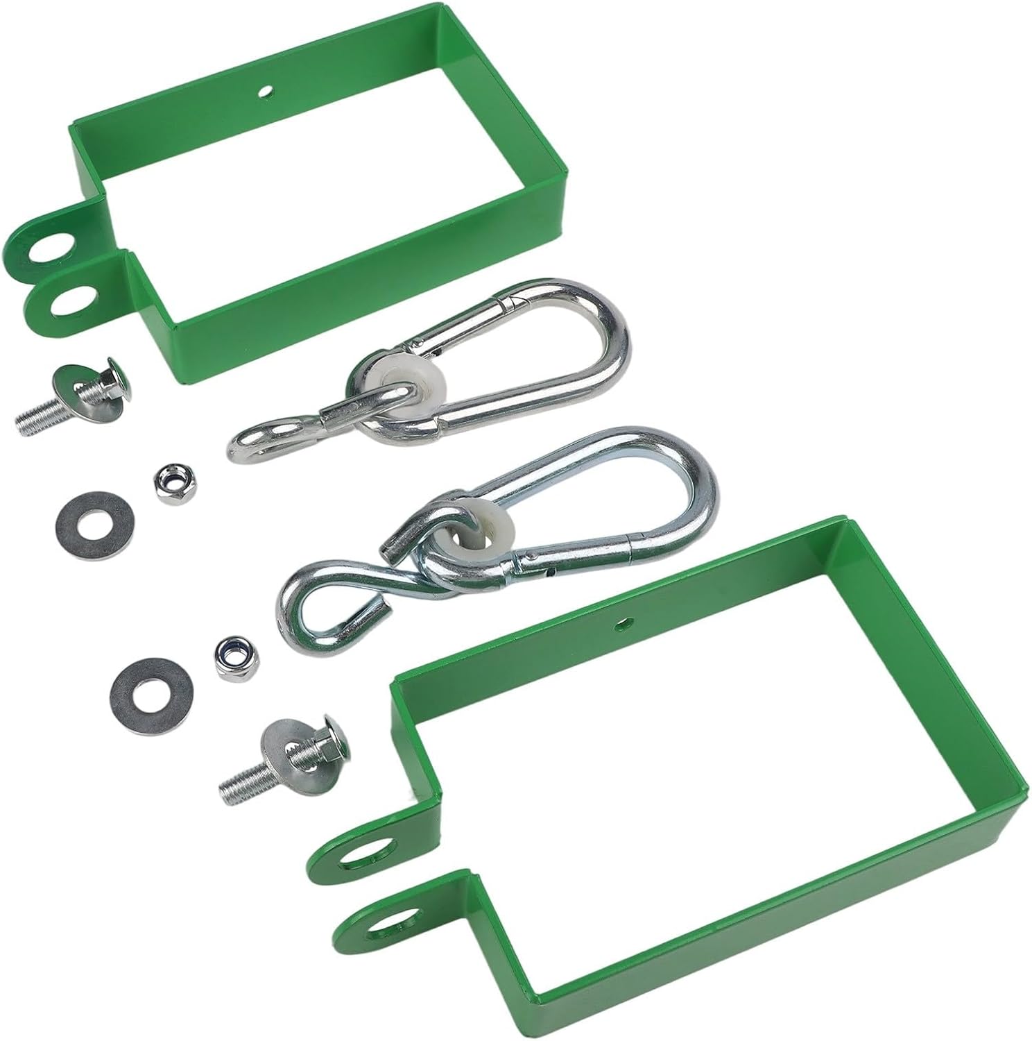 Design robusto: realizzati in metallo resistente, questi accessori per altalena sono costruiti per resistere alle intemperie e all'uso quotidiano, durano attraverso innumerevoli ore di divertimento. Colore accattivante: la sorprendente finitura verde non solo eleva l'aspetto del tuo set di altalene, ma completa anche gli ambienti esterni, incoraggiando i bambini a giocare all'aperto più spesso. Dimensioni: con dimensioni di circa 198,1 x 9,7 cm e uno spessore di 3 cm, questi accessori sono compatibili con la maggior parte dei set di altalene, perfetti per vari layout del cortile. [SET ALL-INCLUSIVE] Scegli tra set da 2 o 4 pezzi che includono articoli essenziali come No. 10 ganci, che vi dotano di tutto il necessario per la manutenzione o l'aggiornamento. [Usi multifunzionali] Questi accessori sono adatti per riparare set di altalene, migliorare set da gioco o persino creare altalene per alberi, rendendoli una parte essenziale di qualsiasi area giochi all'aperto.