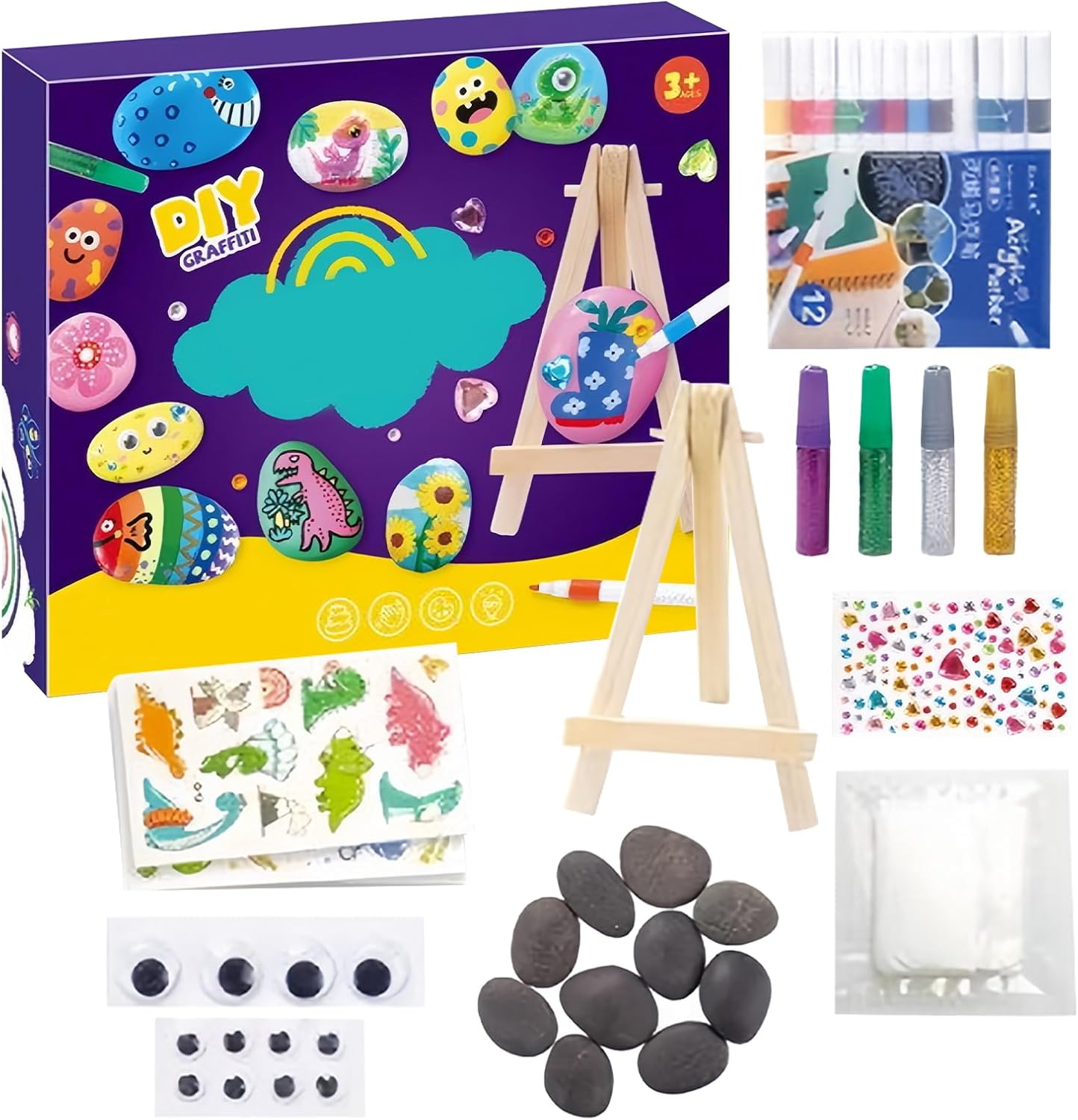 Pigmento fluorescente integrato: dai vita ai disegni fantasiosi attraverso rocce luminose infuse con pigmenti fluorescenti, creando accattivanti motivi di cielo notturno e promuovendo la creatività notturna con un'incantevole esperienza artistica Difesa del colore affidabile: crea una barriera impermeabile che protegge dallo sbiadimento del colore in acqua o pioggia, mantenendo la vivacità delle pitture rupestri fatte a mano attraverso una protezione duratura Pacchetto completo di arte rupestre: presenta pennelli e rocce, consentendo scarabocchi senza soluzione di continuità, gradienti e stratificazione con vernici fosforescenti, fornendo tutto il necessario per creare bellissime pitture rupestri direttamente dalla confezione Espressione artistica su rocce 3D: questo kit di pittura su roccia promuove l'attenzione e nutre l'apprezzamento estetico, aiutando i bambini a migliorare la coordinazione dei colori e la consapevolezza spaziale, che migliora la creatività e supporta la loro crescita artistica attraverso la pittura su rocce tridimensionali Migliora la creatività artistica: la vernice liscia e facile da applicare, combinata con manici arrotondati, offre un'esperienza artistica ideale per i bambini dai sei anni in su, consentendo loro di esplorare la creatività in modo indipendente condividendo momenti artistici significativi durante il gioco o le attività di gruppo