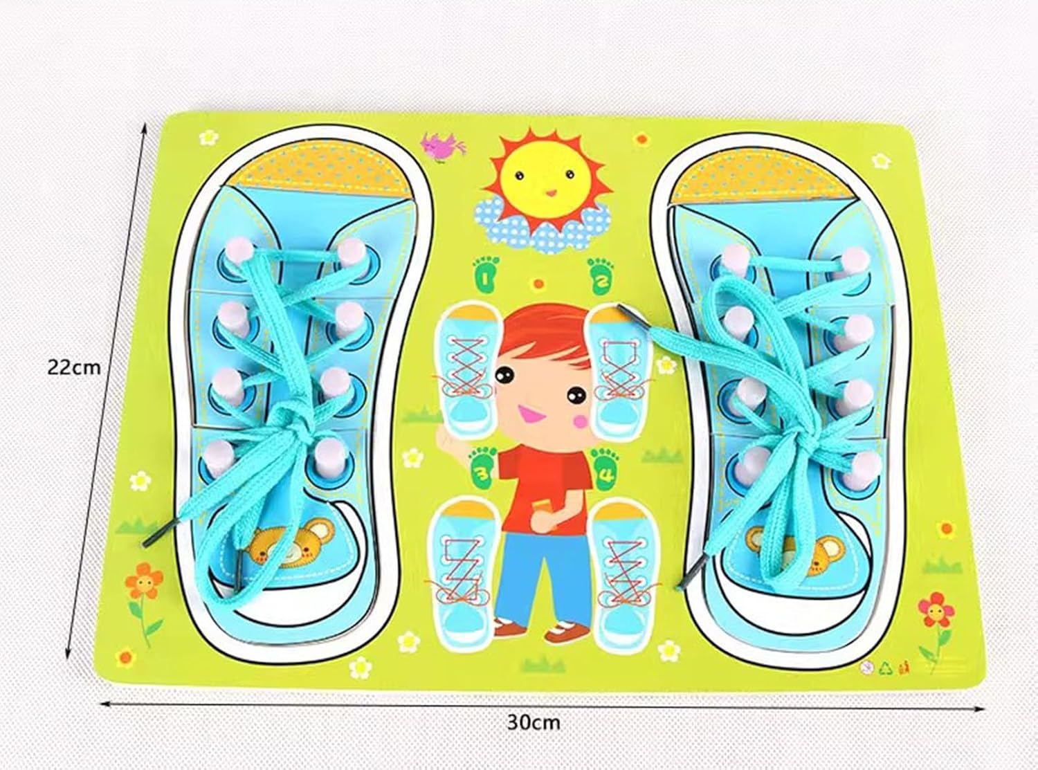 Un'idea creativa che aiuta i più piccoli a imparare ad allacciarsi le scarpe! Divertente da giocare! Impara ad allacciare i lacci delle scarpe. Un'eccellente attività di apprendimento per neonati e bambini piccoli. Giocattolo educativo precoce per i tuoi bambini e bambine. . Incoraggia lo sviluppo della coordinazione occhio-mano e della capacità di attenzione dei tuoi bambini. Fornire una migliore possibilità di praticare l'abilità motoria, la coordinazione manuale, ecc. D'ora in poi fai in modo che la mente funzioni.