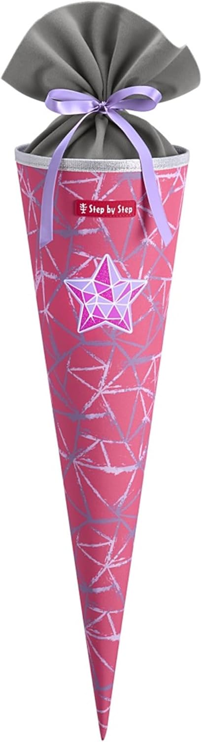Set artigianale cono scolastico Contiene tutti i materiali necessari Cono scolastico vuoto ca. 68 cm Lunghezza totale una volta realizzato ca. 100 cm Contenuto: cono scolastico vuoto in cartoncino nero, adesivo XXL 3D astronauta, carta crespa blu + celeste + grigia, cono scolastico pizzo grigio, nastro a griglia, istruzioni