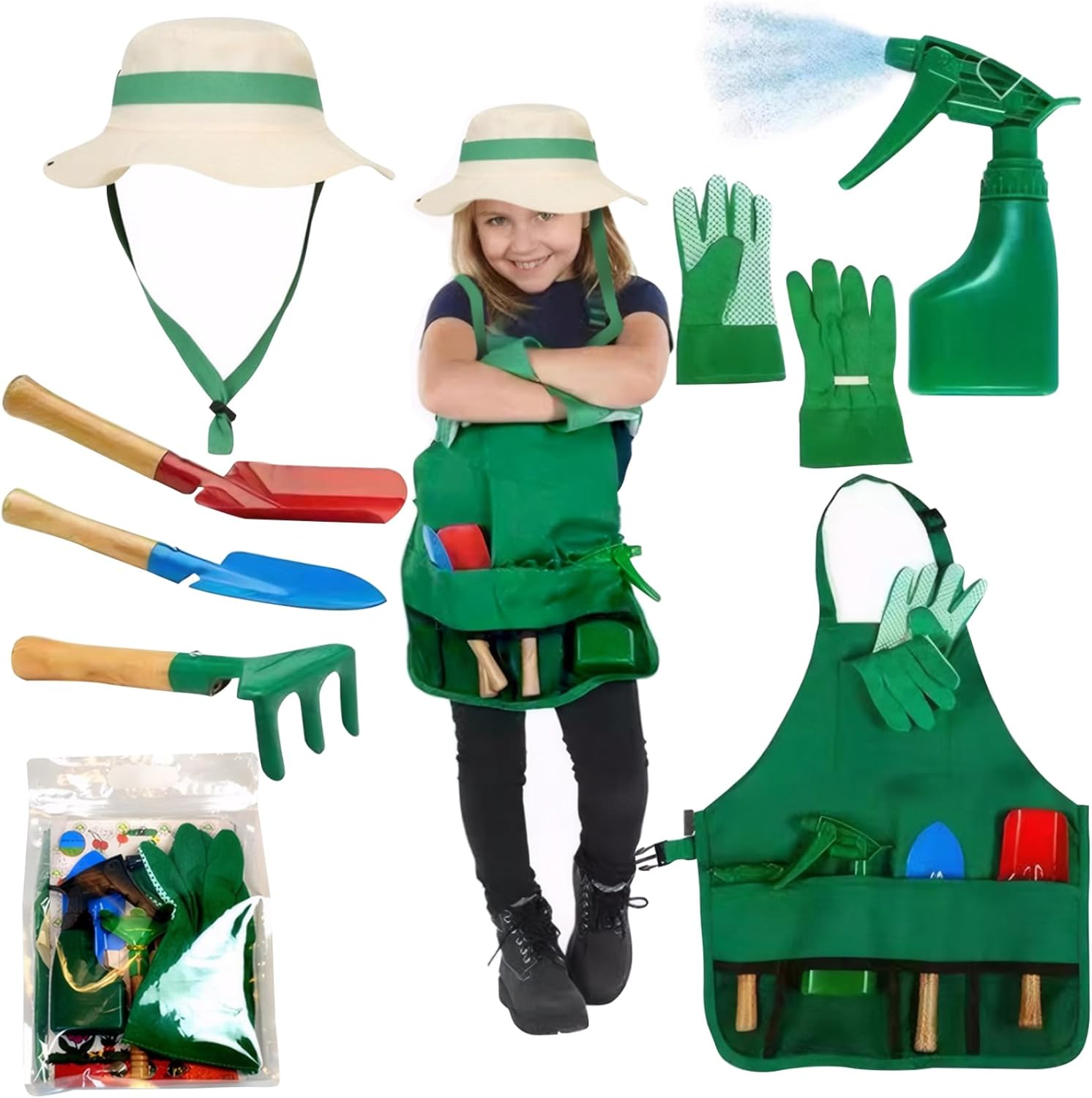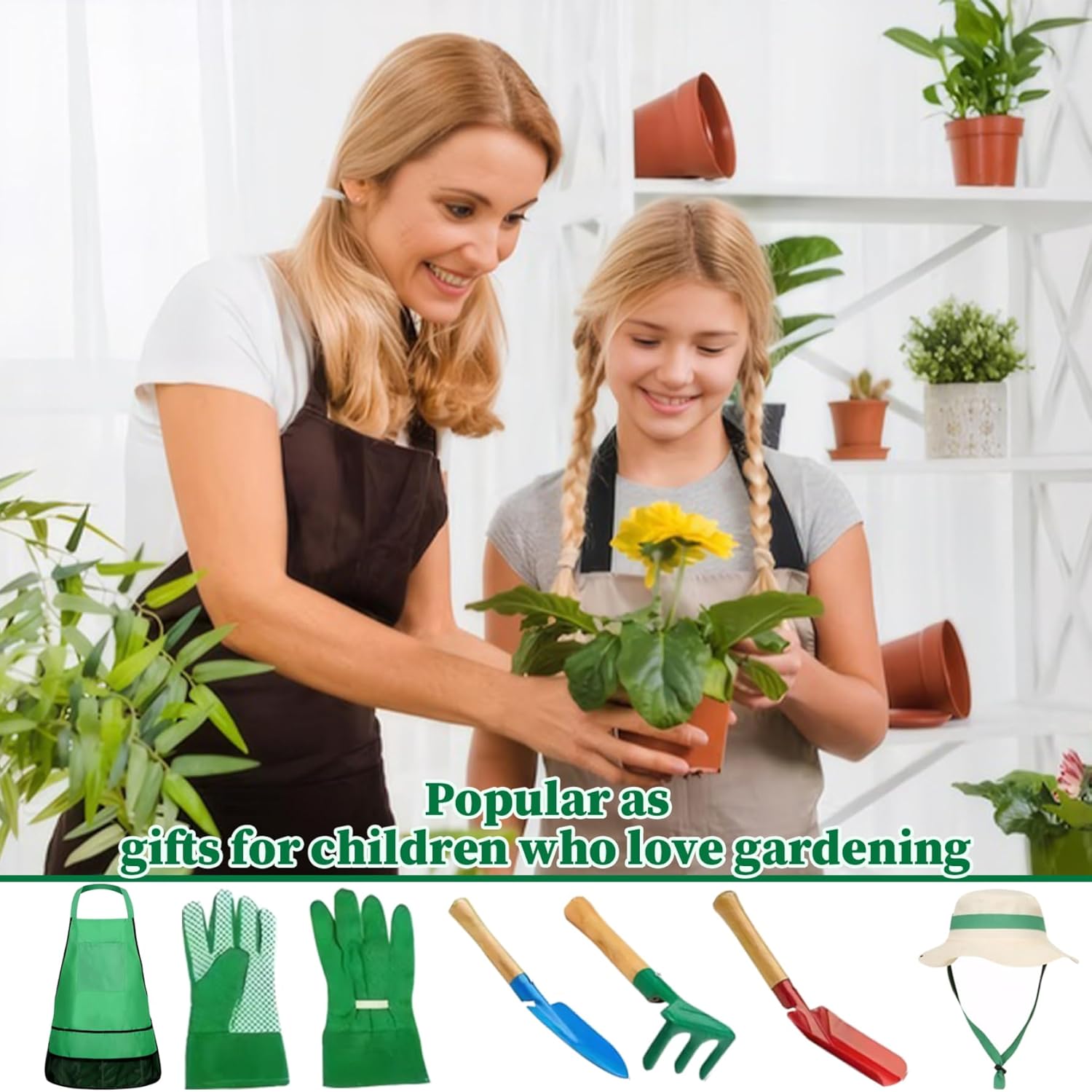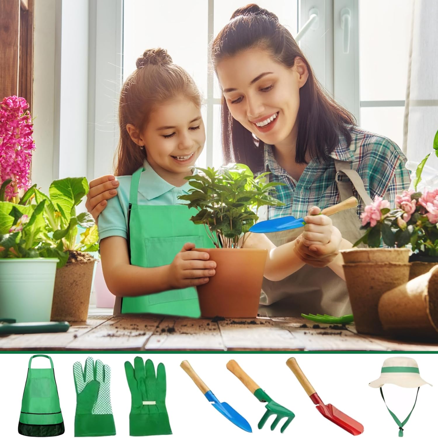 Ottimo regalo per i bambini: il set da giardinaggio per bambini è un ottimo regalo per i bambini, poiché arricchisce il loro tempo libero, promuove l'interazione genitore-figlio e incoraggia un legame più stretto con la natura. Impegnarsi in attività di giardinaggio aumenta anche l’attività fisica, contribuendo a uno stile di vita più sano per i bambini. Set completo da 7 pezzi: il set da giardinaggio per bambini comprende una bottiglia spray, guanti, cappello, grembiule, rastrello e 2 pale, fornendo tutti gli strumenti necessari per far iniziare rapidamente i bambini. Con questo set completo, i bambini possono partecipare attivamente alle attività di giardinaggio e apprendere le competenze essenziali del giardinaggio. Materiali durevoli: l'utilizzo di tessuti come poliestere e tessuto Oxford, parte degli attrezzi da giardinaggio per bambini, come il grembiule, è durevole, resistente all'usura e facile da pulire. Può resistere alla polvere e al disordine associati al giardinaggio, garantendo che i vestiti dei bambini rimangano protetti mentre si divertono nelle loro attività di giardinaggio. Design pratico: il grembiule presenta un design con tracolla facile da indossare e adatto a bambini con un'altezza di circa 115-145 cm/45,28-57,09 pollici. Include anche molteplici tasche per riporre comodamente vari strumenti, consentendo ai bambini di accedere e riporre facilmente i propri oggetti essenziali per il giardinaggio. Coltivazione ed educazione: il nostro set da giardinaggio per bambini è progettato per aiutare i bambini a conoscere il giardinaggio e la natura, promuovendo il loro interesse e amore per il giardinaggio. Fornisce un'esperienza pratica che consente ai bambini di esplorare e comprendere le meraviglie del mondo naturale.