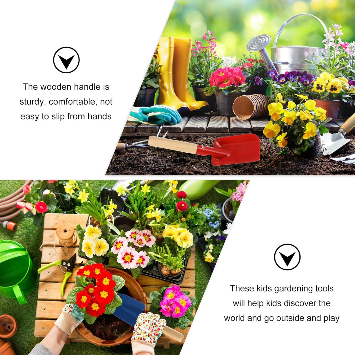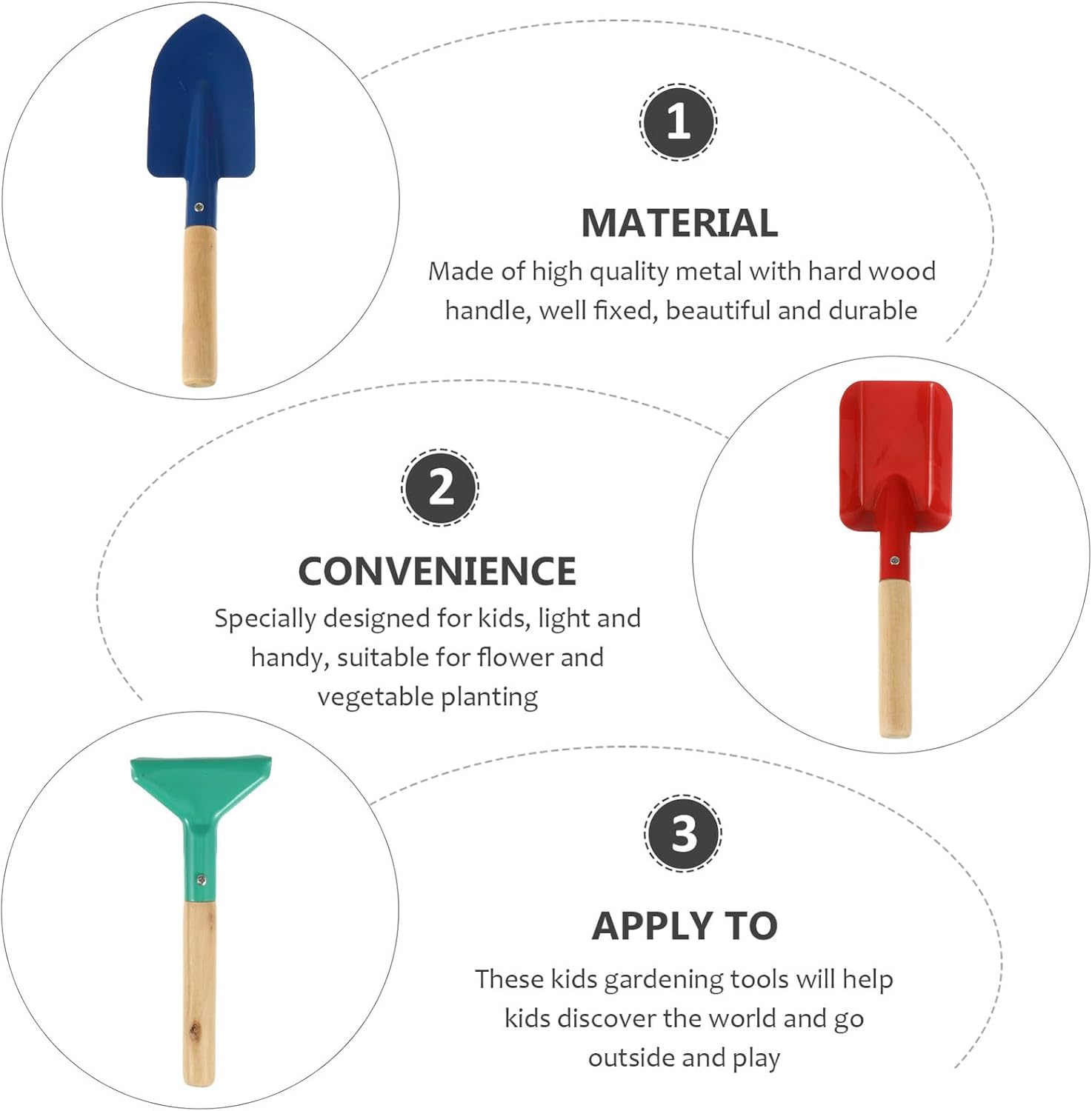 Strumento per piantare - Realizzato in metallo con manico in legno duro, ben attaccato, bello e uno strumento da giardino per Strumento per piantare per - Pratico e bello, questo strumento da giardino in 3 pezzi è lo strumento perfetto per chi ama il giardinaggio Cazzuola da giardino - Garantiscono un momento felice in famiglia lasciandoli lavorare con i genitori, Cazzuola da giardino Attrezzi da giardino per l'abbellimento del paesaggio dei bambini - Il manico e la parte di scavo sono saldamente collegati tra loro in modo che possano usarlo in sicurezza. Attrezzi da giardino Attrezzi per piantare - Questi strumenti funzionali sono progettati per l'esterno o per lavorare in giardino. attrezzi da giardino per